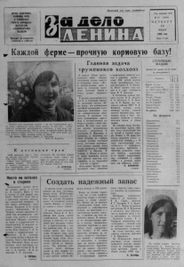 ОРГАН СЕВЕРНОГО ' РА Й КОМ А КПСС И РАЙОННОГО СОВЕТА НАРОДНЫХ Д Е П У Т А Т О В НОВОСИБИРСКОЙ ОБЛАСТИ Выходит по вторникам, четвеогам и субботам Пролетарии всех стран, с о е д и н я й т е с ь ! 2K t ? i l V Г о д и здания 45-й № 7 2 ( 5 0 4 4 ) Ч Е Т В Е Р г 1 9 И Ю Н Я 1 9 8 0 года Ц е н а 2 коп. К а ж д о й ферме — прочную кормовую базу! 1ШШШ ; Главная задача тружеников колхоза Н е ле г о к т р у д подменной д о яр ки : у нее нет закрепленной груп пы коро в , приходится д о и т ь в с е г д а р а з н ы х . А для того , чтобы добит ься наивысшей про д у к тивн о сти ж и в о т н ы х , к ним н а д о привы к н у т ь , изучить повадки . Тем не менее, подменной до яр к е Би а зин - ской фермы к о л х о з а « П у т ь к ком м уни зм у» Л ю б е Никулиной у д а е т с я пол у ч а т ь сам ы е вы с о к и е надои по ферме. На сн им ке : п е р е д о ва я д о яр к а Л . Никулина Ф о т о Б . К о роле ва . К к о с о в и ц е т р а в 4 1 4 3 0 0 це нтнеров се н а и се н а - ст о г о м е т ы . На з а г о т о в к е кормов в х о з я й с т в е б у д е т з а н я т о д в а з в е н а по д е в я т ь ч е л о в е к в к а ж дом. В конце июня на л у г а в ы й д у т п ервые а г р е г а т ы . В . Д О В Б И Ш , агрон ом . ж а с л е д у е т з а г о т о в и т ь к о л х о з у « V I I с ъ е з д С о в е т о в » . С ейча с и д у т Последние пригото вл ен ия те хник и. П о с т а в л е н ы на линейку г о т о в н о с т и о д и н н а д ц а т ь се н о к о с и л о к , се м ь т р а к т о р о в марки « Б е л а р у с ь » , н а в еш а н ы В колхвзе «Н овая ж и з н ь » состоялось общее собрание блхознико в, которое вынесло на обсуждение вопрос: « И т о ги весенне-полевых работ и чадами по успешном у проведению заготовки -кормов и уборки урожая нынешне го года» . В докладе председателя колхоза В. А. Степ анова с к а з а н о , что т р у ж е н и к и колхоза « Н о вая ж и з н ь » иод руководством п артийной о р г а н и за ци и последовательно выполняют в з я - . тые социалистические обязательства. В нынешнем году более организованно п р и с т у пили к весенне-полевым р а ботам и успешно с ними с пра вились. Во всем этом немалая з аслуга механизаторов Северного леспромхоза В. Григорьева, В. М и р ош и н а , А. Артемьева, А. Н и к и т и н а , к о торые несмотря на сложные погодные условия нынешней весны, постоянно перевыполняли сменные задания. Очень хорошо тр удились и к у р с а н ты С С П Т У - 2 1 А. Кра снов , Н. Лазарев, А. Петров и дру ги е . От имени правле ния колхоза этим ребятам вынесена благодарность за и х трудолюбие и упорство в работе. Переходящее Красное знамя п а ртийного бюро, правления и профсоюзного комитета к о л хоза и ден ежн ая премия в сумме 3 0 0 рублей вручена отряду механизаторов', кот орый возглавлял В. В. Васильев. Много хороших слов с к а зано и в адрес сеяльщиков звена И. П . Краснова. В обсуждении доклада приняли уча стие И. В. Архипов, В. В. Васильев, В. И. Я к о в лев, В. В. Иванов , зав. орготделом райкома КПСС I I . Н. Колмаков , которые особое внимание уделили созданию прочной кормовой базы, ор ганизации труда и быта т р у ж е н и к о в хозяйства в период з а готовки кормов и убюркн урожая . На собрании были об суждены дальнейшие задачи, стоящие перед т р у ж е н и к а м и села на ле т н и й и осенний периоды. Решено в 2 0 июня - п о л ностью завершить ремонт сеноуборочной т е х н и к и , а к 2 5 июля отремонтировать силосоуборочную и хлебоуборочную т е х н и к у , п ри с т у п и ть к обработке пропашны х кормовых к у л ь т у р , параллельно вести ремонт животноводчес к и х помещений. А главное сейчас — в достатке заготови