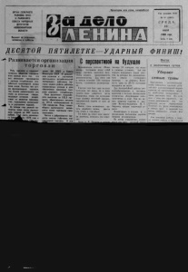 ОРГАН СЕВЕРНОГО РАЙНОМА НПСС И РАЙОННОГО СОВЕТА НАРОДНЫХ Д Е П У Т А Т О В НОВОСИБИРСКОЙ ОБЛАСТИ Выходит по вто рникам, четвергам и субботам Пролет арии всех стран, соединяйтесь! Год издания 45-й № 81 (5 0 5 3 ) С Р Е Д А 16 И Ю Л Я 1 9 8 0 года Цена 2 коп. Д Е С Я Т О Й П Я Т И Л Е Т К Е — У Д А Р Н Ы Й Ф И Н И Ш ! Развивается организация т о р г о в л и Роль торговли в социалистиче ском обществе определяется прежде всего тем, что она связывает производство с личным потреблением, способствует планомерной между ними связи. Поэтому чем л у ч ше фуннционирует торговля, тем полнее удовлетворяет она спрос на различные товары, оказывает активное воздействие на развитие производства, Расширения ассортимента и ул у ч ш е н и я изделий. За четыре года десятой п я тиле тки сверх плана реализовано товаров на 4 6 3 тысячи рублей. Тешт роста розничного Ь в а о ^ ^ о т а 1 9 7 9 года к ление Ц К КПСС и Совета Министров СССР «О дальнейшем развитии и улу чш е н ии Деятельности потребительской кооп е р а ц и и » , работники торговли нашего района добились определенных успехов в деле обеспечения населения товарами широкого потребления. План розничного товарооборота выполнен на 1 0 2 , 5 проц ен та , общественного п и та н и я на 1 0 1 , 2 , кооперирования на 1 2 0 процентов. План товарооборота выполняется еж е м е сячно всеми торговыми предприя тиям и . Честно и добросовестно т р у дятся многие Работники коо- G перспективой на будущее Механизаторы колхоза «Новая жизнь» поставили перед собой цель: укрепить кормовую базу, чтобы поднять продуктивность животноводства. Для этого они и начали освоение 3 34 гектаров болота, осушенного мелиораторами. Участок этот был сдан колхозу несколько лет назад, но к нему нелегко было добраться из-за бездорожья, земли эти последние годы заливал весенний паводок, практической отдачи от него не получали. Нынче стало возможным начать обработку почвы, ввести эти земли в севооборот24 июня на новое поле выехали агрегаты, началось его ос.вое- НИР засеяли 78 гектаров: сев велся в сложных условиях, так как нередко попадались сырые участки, на которых без дополнитель- него «тягла» — гусеничного трактора — не обойтись. Поэто- му-то один из ДТ-75' постоянно находился на вахте. Для бесперебойной работы почвообрабатывающих и посевных агрегатов в колхозе организовано техническое обслуживание непосредственно в поле. Там же велась заправка горючим и маслами Мастеру-наладчику М. Т. Андрееву придан сварочный агрегат. Позаботились в колхозе и о двухразовом бесплатном горячем питании механизаторов. На ______ Вести с колхозных лугов Убирают сеяные травы Б ергуль ским мех ан из а то р ам - чтобы обеспечить крупный р о г а тый -скот молочнотоварной фермы корм ами на п р ед сто ящ ую з и м о в ку, необходимо з а с к и р д о в а т ь 7 тысяч цен тнеров сена. По су ти д ел а с этим они с п р а в я т с я , но з а д а ч а о с л о ж н я е т с я тем, что июньская з а с у х а ' о т р и ц а т е л ь н о с к а з а л а с ь на р о с т е естеств ен ных и ееяньщ т р а в : в прошлый го д г е к т а р . сщюкрсных угодий был щедрее. Д л я успешной р а б о ты в пери-
