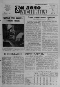 ОРГАН СЕВЕРНОГО РАЙКОМА НПСС И РАЙОННОГО СОВЕТА НАРОДНЫХ Д Е П УТ А ТО В НОВОСИБИРСКОЙ ОБЛАСТИ Выходит по вторникам, четвергам и субботам П р о л е т а р и и в с е х с т р а н , с о е д и н я й т е с ь ! i f t V / I U Г а з е т а основана 20 июля 1935 года № 86 ( 5 0 5 8 ) С У Б Б О Т А 26 июля 1 9 8 0 года Цена 2 коп. УДАРНЫЙ ТРУД КАЖДОГО - О С Н О В А УСПЕХА! Валентин Михайлович Титов — то карь наивысшей кв алификации. Трудится он в Северной «Транссельхозтехнике», выполняет самые разные токарные работы. В эти дни он помогает водителям готовить машины к уборке урож а я 1980 года. На снимке: В. М. Титов з а работой Фото Б. Королева. Условиясоциалистического соревнования комсомольцев и молодежи района на период заготовки кормов и уборки урожая 1980 года ЦЕЛИ И ЗАДАЧИ СОРЕВНОВАНИЯ Социалистическое соревнование комсомольских организаций, комсомольцев и молодежи района на период з аго товки кормов и уборки урожая проводится с целью дальнейшего р а з ви тия трудового энтузиазма и ударничества, мобилизации молодых тружеников села на досрочное выполнение планов и задании 1980 года. Задачи комитетов комсомола — направить всю организаторскую и массово-политическую ра боту на обеспечение активного участия всех юношей и девушек на заго товке кормоп, в борьбе з а высокий урожай, з а достижение наивысшей производительности труда , отличное качество работы, предотвращение потерь сельскохозяйственной продукции при уборке и перевозке на заготовительные пункты и места хранения, безусловное выполнение планов и принятых социалистических обязательств. Обеспечить опе ративное подведение итогов, широкую гласность социалистического соревнования комсомольцев и молодежи, пропаганду и внедрение передового опыта, широкое использование форм морального и материального поощрения, награждение коллективов. юношей и де вушек Почетными гр ам о тами Центрального Комитета, обкома и райкома ВЛКСМ , переходящими Красными знаменами ЦК В Л К СМ «Герои пятилетки, ветераны тр уда — лучшему комсомольско-молодежному коллективу» и другими комсомольскими наградами. УЧАСТНИКИ СО Р ЕВН ОВ А НИ Я , СРОКИ П О Д В ЕД ЕН И Я ИТОГОВ В соревновании участвуют все комсомольские организации колхозов , комсомольско-молодежные коллективы, комбайнеры, трактористы, шоферы, молодые рабочие. Итоги районного соревнования среди комсомольских организаций подводятся ежедекадно с 10 июля 1980 года и до окончания уборочной кампании. Победителем районного социалистического соревнования на уборке ур ож а я среди комсомольских организаций колхозов будет считаться первичная комсомольская организация, до бившаяся наилучших показателей: в организации социалистического сор е вно вания среди комсомольцев и молодежи по с в ое временному и высококачественному проведению уборочных раб от; в получении высокой урожайности; в оперативности подведения итогов соревнования; в работе ш т аб а и постов «Комсомольского прожектора» по качественному проведению з а готовки кормов и уборки ур ож а я ; в политической и культурно-массовой работе, в повышении трудовой активности и дисциплины среди молодежи, участвующей в уборке урожая . Комсомольская организация—победитель социалистического соревнования на уборке ур ож а я — нагр аждае тся переходящим вымпелом и Почетной грамотой райкома ВЛКСМ. Победителю районного социалистического соре