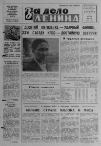 ОРГАН СЕВЕРНОГО РА Й К О М А КПСС И РАЙОННОГО СОВЕТА НАРОДНЫХ Д Е П У Т А Т О В НОВОСИБИРСКОЙ ОБЛАСТИ Выходит по вторника м, четвергам и субботам Пролета рии всех ст р а н , со единяйтесь! i l t r / l l l Г а з е т а о сн о в ан а 20 июля 1935 года № 90 (5 0 6 2 ) Ч Е Т В Е Р Г 7 А В ГУ С ТА 1 9 8 0 года Ц е н а 2 коп. ЗВЕЗДА ТР УДО ВО Й СЛАВЫ З А Ж Ж Е Н А В ЧЕСТЬ К О М Б АЙНЕРО В КОЛХОЗА « П У Т Ь К К О М М У Н И З М У » В- Г. С И ДОРОВА и Е. Л. ДРОЗДОВА, О Б Е С П Е Ч И В Ш И Х З А К Л А Д - Н У 1 5 0 0 ТОНН С Е Н АЖ Н О Й МАССЫ. ЧЕСТЬ И СЛАВА П Е Р ЕД О Х Л И ЗАГОТОВКИ КОРМОВ! РА БО ТЫ В Е Д У Т В КОМПЛЕКСЕ В колхозе «Путь к к о м м у низму» се льск охозяйственные р а б о ты и д у т полным ходом. М е х а н и з а т о ры п р о д о л ж а ю т з а г о т а в л и в а т ь ко рм а . Сейчас в с к и р д а х ст оит 9359 ц ен тне ров се на — более 40 п роцен тов к плану . П оп олня ется з а п ас с е н а ж а . Его у ж е з а л о ж е но более 3000 центнеров. Это —знач ите льный в к л а д т р а к т о ристов В. Г. Сидоров а и Е. Л . Д р о з д о в а в укреплении ко рм о вой б азы ж и в о т н о в о д с т в а . Г отовится и основа у р о ж а я 1981 го д а . Н а поля выехали тр а к т о ры с се я л к а м и : идет осенний сев. Озимай р о ж ь в к о л х о з е з а й м е т 840 г ек тар о в . П о к а в Веселовской и Би а- зинской б р и г а д а х посеяно ПО, Р а б о т а ю т на поля х и п а хотные агре гаты : идет в змет з я б и . Трак торис ты к о л х о з а д о л ж н ы под посев яровых з ап а с т и 1950 г е к та р о в земли. Б о л е е сотни из них уж е в с п а хано. В. К У Л Ь П И Н А , б у х г а л т е р . НА Л У Г А Х — ЗВЕНЬЯ Как и в других х о зяй ств а х р ай о н а , в к о л х о з е имени М. Горьк ого идет о т в етств е н н а я и н а п р я ж е н н а я пора з а гото вки кормов д л я о б щ е с т венного ж и в о т н о в о д с т в а . З д е с ь скошено более семисот г е к т а ров сеяных и естественных т р а в ; з а с к и р д о в а н о 3800 ц ен т неров сена . На з а г о т о в к е кормов з а н я т о д в а зв ен а . Одно в Ф е д о р о в ской б р иг а де , где р а б о т аю т Н. И. Н и к о л а е в . С. А р з а м а - сов, Н. П о д ск о к о в , В. П. Х ру ще в, С. В. Волохович, В. Д . Д ы д и к о в , Н. Ушаков. у ж е р а б о т у в звене Сур - гутовской б рига ды выполняют коммунисты М. Д . Л и п а т о в , А. В. В аси л ь ев , ' В. М. С т е панов. Вмес те с ними т р у д я т ся и - молодые ме х ан из а то ры . Один из них—Николай Л е г а - чев. Он зак о нч и л С еверное ССПТУ-21 и сейчас на косьбе п о к а зы в а е т пример с т а р а н и я и т руд олю б и я . Г. ПЕТРОВА . ДЕСЯТОЙ ПЯТИЛЕТКЕ — УДАРНЫЙ Ф И Н И Ш , СЪЕЗДУ КПСС — ДОСТОЙНУЮ ВСТРЕЧУ! П е р е д о в а я д о я р к а к о л х о з а «Восход» Л и д и я А ф ана сь евна Анти пова (на снимке) ж и в е т и р а б о т а е т в Ч е б а к а х . Э то т р у д о лю б и в а я и д о бр о с о в е стн ая ж енщ ин а . З а июль тек ущ его года над ой от к а ж д о й коровы зак репленной з а ней группы со с т а в и л 290 ки л о грамм ов молока . Л и д и я Афана сь евна выполняет н большую общес тв енную р а боту . Она — д е п у т а т районного Совета Фото Б. Королева. П о с е в о з и м ы х М е х а н и з а т о р а м к о л х о з а имени К. М ар к са известно, что пбсеян- н а я в лучшие агроте хнические сроки о зим ая р о ж ь д а е т х о р о шие всходы. В конце июля в обеих б р и г а д а х х о зяй с т в а в ы е х а ли посевные а г р е г а ты . З а четыре дня в Б ер гу л е и И чкале эта з е р н о в а я к у л ь т у р а з а н я л а 406 г ек тар о в . Сеют р о ж ь опытные т р а к т о р и сты И. Е. С а в а с т е е в , М. С. Ти хонов, В. В. Г ай д у к о в , • Л . К. Т рофимов , А. Т. М ихайлов , Н . Ф .Урсаев, П. Г. Арманчев, Готовит почву д л я посева В. Н. . Аниброев. К а к 