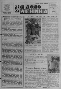 ОРГАН СЕВЕРНОГО Р А Й К О М А КПСС И РАЙОННОГО СОВЕТА НАРОДНЫХ Д Е П У Т А Т О В НОВОСИБИРСКОЙ ОБЛАСТИ Выходит по вторникам, четвеогам и субботам Пролетарии в с ех стран , соеди няйтесь! Л и у ш Газета основана 20 июля 1935 года № 91 (5063) С У В Б О Т А 9 А В ГУ С ТА 1 9 8 0 года Цена 2 коп. Массово-политическая р а б о т а на уборке X X V съезд КПСС наметил ш ир о кую программу развития сельского хо зяйства. Особое внимание обращено на рост зернового производства. Мощным фактором успешного выполне ния намеченной съездом программы являются решения июльского ( 1 9 7 8 г . ) Пленума Ц К К П СС , постановление о дополнительных мерах по обеспечению уборки урожая и з а готовок п род укции в 1 9 8 0 году. Эти меры встретили единодушное одобрение всех тр у д я щ и х с я , восприняты к а к новый ш а г по п у т и укр е плен и я э кономики страны, повышения благосостояния народа. На полях страны идет упорная борьба за уро ж ай последнего года десятой п я т и л е т к и . Хлеборобы стремятся добиться высоких урожаев всех к у л ь т у р . « К а ж д о м у полю — знак к а ч е с тв а » — под та ким девизом начали работать с прошлого года т р у ж е н и к и колхоза им. К. М ар кса . В колхоза х « П у т ь к к о м м у н и з м у » , «П ам я ть Л е н и н а » развернулось еоревнова- ' ние за получение качественного зерна. Ж а т в а качалась^ первые ге ктары р ж и легли в валки в колхозе « П у т ь к к о м м у н и з м у » . Через т р и - п я т ь дней она н а - j чнется повсеместно. V большинства агрономов составлены ; рабочие планы, подобраны люди для те хн и ческо го обслужи вания аг регатов , готовы и готовятся зерносушильные п у н к - j ты и складыНе менее важно позаботиться сейчас и о моральном климате в бригадах , отрядах , звеньях, которые будут ре- i шать судьбу ур о ж а я . В п артийных ком ит ета х и бюро важно не только иметь к о н кр е тны е планы массово-политической работы на период ж а т вы , но и неукоснительно выполнять и х / Опыт прошлых лет убедительно п о каз ал , к а к о е огромное значение на уборке имела целеустремленная политич еская а г и т а ц и я . В воспитательной работе нет мелочей. Следует хорошо оборудовать, где они будут, передвижные в а го н ч и к и . Через агитато ров и политинформаторов, наглядными средствами партийные ор ганиза ции призваны довести до ме хан и за торов меры материального и морального поощрения на уборне. Для создания рабочего настроя в самом начале страды большой эффект дают торжественные проводы м е ха низаторов на ж а т в у . К этому т о рж е с т в у можно приурочить по священие начи н аю щ и х механизаторов в хлеборобы. Высокий н акал социалистического соревнования поддержи в а е т с я при условии ш ирокой гл асности . Идеологиче ские работники многое могут сделать, чтобы человек знал, ка к о е место он занимает сегодня в трудовом сос тязании , на ного следует равня ться , к а к и е передовые методы перенять, к а к уст р ан и ть недоста тки. В прошлые годы неплохо зарекомендовал себя в этом деле а г и т к о л л е к т и в при пар тийной ор ганизации колхоза им. М. Горького. В а ж н о , когда у ст н ая информация дополняется боевыми лист ками , «м олн и ям и » , бюллетенями по итогам дня, п я т и дневки , декады и т- д., календарями трудовой славы, с а т и рическими выпусками. Тогда воздается должное и передовикам, и лодырям. В соревновании на хлебной ниве ежедневно выявляются герои ж а т вы , показывающие наивысш ую производительность тру