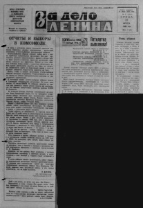 OPFAH СЕВЕРНОГО РАЙКОМА КПСС И РАЙОННОГО СОВЕТА НАРОДНЫХ ДЕПУТАТОВ НОВОСИБИРСКОЙ ОБЛАОТИ Выходит по вторникам, четвергам и субботам Пролетарии всех стран, соединяйтесь! Газе та основана 20 июля 1935 года № 97 (5 0 0 9 ) С Р Е Д А 2 7 А В Г У С Т А 1 9 8 0 года Цена 2 коп. О Т Ч Е Т Ы й В Ы Б О Р Ы В КОМСОМОЛЕ В связи с истечением сроков полномочий номитетсв комсомола первичных, цеховых комсомольских организаций начинаю тся отчетно-выборные комсомольские собрания. Отчетно-выборное собрание занимает особое место в ж и з * ни первичных комсомольских организаций- Оно дает возможность детально проанализировать формы и методы работы бюро- комитета комсомола первичной организации , определить наско лько они эффективны. Именно на этом собрании отчетливо видны успехи и недостат ки ор ганизации , дается оценка деятельности комитета или бюро, его секр ета ря, определяются задачи на предстоящий период и пут и их решения, избирается новый состав комитета или бюро. В а ж н о , чтобы в каждой организации отчетно-выборное собрание проходило по-деловому- Рз зультативность его п р я мо зависит от степени п ринципиальности разговора на нем, а ктивнос ти комсомольцев. В настоящий момент отчетно-выборное собрание прошло в Уд арницкой комсомольской ор ган и за ци и . На учете здесь состоит 1 0 членов ВЛКСМ На собрание, несмотря на горя чую пору сенокоса и уборки уро ж ая , пришли все комсомольцы. На собрании присутствовал секр етар ь райкома ВЛКСМ В. Л у к ь я н ч у к - Из отчетного доклада секретаря комсомольской организации Анны Безродновой видно, что т у т проводится определенная работа: регулярно идут комсомольские собрания, проходят суоботники, вечера отдыха. Хорошо трудятся на производстве телятница Валентина Степанова, механизатор Николай Исако в, шофер Геннадий КобецНаряду с хорошими делами есть свои трудности, которые мешают работе комсомольской о р г а н и за ци и . На собрании остро стоял вопрос о выполнении комсомольсних поручений, о спорте, о культурном досуге молодежи. Трудно работать на производстве, не отдохнув после рабочего дня- В нлубе почти не демонстрируются кинофильмы. Ведь нет та кой возможности взамен нино проводить каждый раз вечера отдыха. Вопрос о к и н о остается нерешенным на п р о т яж е н и и 3 - х месяцев 1 9 8 0 года, хотя в известность поставлены руководящ ие органы нолхоза, директор кино- сети В. Берчун- Составлена была беседа с ки номе хаником Халюковым , в результате за июль прошел один фильм и за ав гу ст один фильм. «А больше, — он сказ ал , — не ж д и - т е » . Т а к кто ж е все -таки наведет порядок с показами фильмов? Ному не безразлично, чтобы люди во время отдыха могли посмотреть ки но? Есть трудности и дру ги е . Забывают жи телей с. У д а р н и к И СцпрНп РаЛЬН° Й усадьбы х озяйства колхоза им- X X I I съезда НПСС. Не проводятся здесь л е к ц и и , редко бывают ра- ^ т н и к и к ультуры . П а р ти йн а я организа ция хо зяйства п р а к т и ч е с к о й помощи не оказывае т, хотя с просьбой о помощи в проведении лекции комсомольцы обращались к се кр етарю п арторганизации А- И. Воробьеву. Думается, что эти вопросы будут разрешены с помощью вышеназванных п артийных и советсних органов, и жи зн ь молодежи и всех ж и те ле й д. У д а р н и к ст анет интереснее и живее . В целом собрание прошло ор ганизо ванно, работу с е к р е та ря комсомольской ор ганиза ции признали удовлетворительной- 