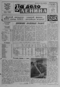 О РГАН С ЕВ ЕРН О ГО РАЙ КОМ А КПСС И РАЙОННОГО С О В Е Т А Н А Р О Д Н Ы Х Д Е П У Т А Т О В НОВОСИБИРСКОЙ О Б Л А С Т И Выходит по вторникам* четвергам и субботам. Пролетарии всех стран, соединяйтесь! д ш и Г а з е т а о сн о в ан а 20 июля 1935 года № ЮЗ (5 0 7 5 ) П Я Т Н И Ц А 1 2 СЕНТЯБРЯ 19 80 года Цена 2 коп. I l l l l l l l l l l l l l l l l l l l l l l l l l l l l l l l l l l l l l l l l l l l l l l l l l l l l l l l l l l l l l l l i i i i i i i i i i i i i i i i i i i i i i i i n , ) , и , , ) , „ м , | 11111■1111111111111111111111111! Г|1111111111111111111■111111111111111111111111■111111111111 | Десятой пятилетке — ударный финиш, | 1 XXVI с ъ е з д у КПСС— достойную встречу! | . i i i i i i i i i i i i i i i i i i i i i i i i i i i i i i i i i i и i i i i i i i i i i i i i K i i i i i i i i и , i n i I I I I I I I I I I HI I i n , i n , 1 1 1 1 и 1, , 1 1 1 , i n щ и i n I, l i n n 111111111111 ] 111111111111111111111111111111111111111111) 1111111111111111 j 111r= СУТОЧНЫЕ НАДОИ молока на корову на 9 лентября (в килограммах) Колхозы о 00 05 0 5 го>- П а м я т ь Л ен и на 7Л XXI I с ъ е з д аКПСС 7,0 Зосход 4,6 Н о в а я ж и з н ь 4,7 З а в е ты Ильича 4,9 им, М. Горьк ого 5,0 ?1уть к коммунизму 7,5 Б о р ьба з а мир 7,2 VII с ъ е з д Советов 5,7 им. К. М ар к са 6,3 По району т 6,2 7,8 7.6 5.5 5.0 5.5 6.7 6.4 6.7 5.8 7.0 6.5 По ф ерм ам В еселовская К о р до н о в ск а я У дарницкая М ал и но в ск ая В е р х -К р а с н о я р с к а я О с т яц к а я С ев ерная У ргульская И чкали н ска я Б и а зи н с к а я Н о в о -Н и к о л ь с к а я Б -К у л и к о в с к а я Г р а ж д а н ц е в с к а я Витинская Ч е б а к о в с к а я Михеевская Б е р гу л ь с к а я Ф ед о р о в ска я Алешинская Н о в о -Т р о и ц к ая Ч у в аш и нс к ая 7,9 7,8 7.7 7.7 7.4 7.2 7.2 7.1 7.0 6.8 6,6 6.5 6.2 5.5 5.5 5,4 5.1 5,0 4,8 4.7 4.7 С оревнуя сь за достойную встречу XXVI с ъ е з д а КПСС, х о зяй ств а нашего района р ап о р туют о досрочном выполнении пятилетних планов производства и р еа лизации животноводческой продукции. В счет о диннадцатой пятилетки н ачал о т г р у ж а т ь молоко колхоз «Восход». Это уж е третье хозяйство, успешно сп р а вившееся с з ад ан и ем . В целом по району суточные надои сос т а в л яю т 6,2 к и л о гр ам ма, что на 300 грамм ов ниже прошлогоднего уровня . К ак видно из оперативных д анных , б о льшинство хозяйств н а д аи в а ю т сейчас от к а ж д о й коровы зн ачи тельно меньше среднерайонного п о к а з а т е л я . Это колхозы «Н о в ая жизн ь», «З а в е ты Итьича», имени М. Г о р ьк о го , «V II съ езд Советов», «Восход». П роизошло это потому, что с н ачалом хлебо уборки ста л и меньше о б р ащ а т ь внимания на жи во тно во д ство . Лучш ие в район е по к аз а тел и по п р о изво д ству молока в к о л хозе « П а м я т ь Л ен и на » . З д е с ь на д аи в а ю т по 7,1 ки л о гр амм а . Л у чшие до яр ки Т. Т. С и в а к о в а и И В. К ормач получили от к а ж дой коровы своей группы с н а чала года по 23 центне ра молок а . Ч у т ь меньше н а д а и в а ю т Е. Е. Т у р о в с к а я и Р. Ф. Ш а то х и на . ДН ЕВНИК П О Л Е В Ы Х Р А Б О Т Погодные, условия нынешней стр а ды не б алую т механизаторов, з а н я т ы х на уборке зе рновых и Силосных куль тур . Холодное и д о ж д л и в о е лето з а т я н у л о ход со зр е вани я хлебов. К н а ч а т у ж а твы большинство полей, з ан яты х яровыми, не подошло. Хлеб не вызрел. Поэтому в большинстве хозяйств района о б р а з о в а л с я бо льшой перерыв м еж ду уборкой озимых и яровых. В колхозе «П а м я т ь Ленина» он составил деся ть дней, когда д е р ж а л а с ь очень т еп л ая погода. В этом хозяйств е приступили к уборке яровых лишь шестого сентябр я На сегодняшний день т а м обмо лочено 1755 г ек таров всех имею щихся зе рновых, что со с т а в л я е т 26 процентов от всех обмолочен ных хлебов по району. Н а м о л о чено на к а ж д ы й имеющийся комбайн по тыс