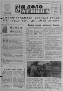 ОРГАН СЕВЕРНОГО РАЙКОМА КПСС И РАЙОННОГО СОВЕТА НАРОДНЫХ ДЕПУТАТОВ НОВОСИБИРСКОЙ ОБЛАСТИ Выходит по вторникам, четвергам и субботам. П р олета рии всех ст р а н , со е ди н яй тесь ! Г а з е т а осн о в а н а 20 июля 1935 г ода № 107 (5079) П Я Т Н И Ц А 19 СЕНТЯБРЯ 1 9 8 0 года Цена 2 коп. X Д Е С Я Т О Й П Я Т И Л Е Т К Е — У Д А Р Н ЫЙ ФИНИШ, X X V I СЪЕЗДУ КПСС- ДОСТОЙНУЮ В С Т Р Е Ч У ! ' i f f За успехи, достигнутые в индивидуальном социалястичес ком соревновании животноводов, на районную доску Поче та заносятся: Е, А. Карецкая. доярка колхоза «Борьба за мир», надоив шая от каждой коровы по 2 3 4 3 килограмма молока; Т. Т. Сивакова, доярка колхоза «Память Ленина», надоив шая от каждой коровы по 2 2 9 8 килограммов молока; И. В- Карман, доярка этого же колхоза. надоившая от каждой коровы по 2 2 9 6 килограммов молока; В. Я. Попова, доярка колхоза «Борьба за мир», надоив шая от каждой коровы по 2 2 8 9 килограммов молока; A. В. Драган. д о я р а колхоза имени XXII съезда КПСС, надоившая по 2 2 6 4 килограмма молока от каждой коровы; B. С. Тарасов и И. Г. Егоров, скотники дойных гуртов колхоза «Борьба за мир», обеспечившие получение надоев молока от гурта закрепленных за ними коров по 2 0 6 7 ки лограммов молока, что на 3 6 3 килограмма больше резуль тата восьми месяцев прошлого года; В. Д. Елфимов, Г. Пирогов. И. А. Анилин, И. А- Федоров, А. Савицний, Д. В. Безгин, скотники дойного гурта колхоза имени XXII съезда КПСС, обеспечившие получение надоев молока от гурта закрепленных за ними коров по 1 9 8 0 ки лограммов, что на 94 килограмма больше результатов вось ми месяцев 1 9 7 9 года. А. П. Лобков. В. И. Язиков, В. И- Туровец, Н. Е. Можейко, И. Н. Карписонов. Н. И. Махнытнин, скотники дойного гур та колхоза «VII съезд Советов», обеспечившие надой моло ка от гурта закрепленных за ними коров по 1 9 5 5 килограм мов. что на 1 39 килограммов больше, чем было надоено в прошлом году. И. Т . Крестьянов. скотник молодняка колхоза «Путь к коммунизму», добившийся по 8 2 5 граммов среднесуточного привеса на голову; 0. И. Комиссарова, телятница колхоза «VII съезд Советов», добившаяся по 7 19 граммов среднесуточного привеса на голову- . ■—Г ’~ ' \ т В СЧЕТ 1981 ГОДА На 1 930 г о д к о л х о з у „VII с ъ е з д С о в е т о в “ д о в о ди л с я план п р о д а ж и м о л о к а г о с у д а р с т в у в 8 7 0 0 ц ен т н е р о в . Во сем ь м е с я ц е в н а п р я ж е н н о й р а д ы п ри несли у с п е х ж и в о т н о в о д ам э т о г о х о з я й ства: было выполнено 9 2 , 7 п р оц ента плана. О с та в а ло сь сд а т ь 639 ц е н т н ер о в . 17 с ен т я б р я к о л х о з рапортовал: начинаем с д а ч у молока в с ч ет 1981 г о д а . В с о р е в н о в а н и и ферм п ер в ен с т в о д е р ж и т Т о - милов^кая, г д е н ад ой молока на к о р о в у состави л 1915 ки лограмм ов . И м е н но з д е г ь р а б о т а е т Е. С. Б у з ю р г и н а , н е д а в н о п р е мированная д е н е ж н о й п р ем и ей по п о с т а н о в л е нию б ю р о обк ом а КПСС, о б л и с п о л к о м а , о б л с о в - проф а и б ю р о о б к ом а ВЛКСМ. З а п р о ш е д ш и е месяцы г о д а Елена С а в ел ь ев н а п о лу чи ла от к а ж д о й за к р е п л е н н о й за н ею коровы по 22 с л и ш ним центнера м о ло к а . П о д о б н о й ж е пр ем ией о т - м, чен т р у д д о я р к и О с - танинской фермы Нины Васильевны К о р ж о в о й . А. АРКАДЬЕВ. Т р е т ь я сессия районного Совета 17 сентября в актовом з а л е Дома Советов состоялась III сессия Северного районного Совета народных депутатов (семнадцатого созыва ). Сессию открыл пр едседатель райисполкома Г. И. Ивашкевич. Дл я руководства се