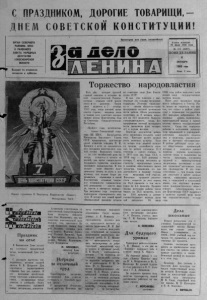 С ПРАЗДНИКОМ, ДОРОГИЕ Т О В А Р И Щ И , - Д Н Е М С О В Е Т С К О Й К О Н С Т И Т У Ц И И ! .. % О Р Г А Н С Е В Е Р Н О Г О Р А Й К О М А НПСС И Р А Й О Н Н О Г О С О В Е Т А Н А Р О Д Н Ы Х Д Е П У Т А Т О В Н О В О С И Б И Р С К О Й О Б Л А С Т И Вы ходит по в т о р н и к а м , ч е т в е р г а м и субботам. Газета основана 20 июля 1935 года__ № 115 (5 0 8 7 ) ПОНЕДЕЛЬНИК 6 О К Т Я Б Р Я 1 9 8 0 года Цена 2 коп. Ш Ш Ш П л а к а т х удожника В Викторова . Издательство « П л а к а т » . Фотохроника Т А С С . Т орж е с т в о народовластия Е с т ь дни, которые красной строкой вписаны в историю на шей социалистической Родины, которые открыли собой целую э п о х у « ее разви тии . Таким днем я в л я е т с я и 7 • октября 1 9 7 7 года, когда высший орган в л а с ти с тр а н ы , выражая волю и ч аян ия всех с о ветских народов принял новую Ко н сти т уцию Сою за С о ветских Социалистических Р е с п у б л и к . «Пройдут годы , де с я ти ле ти я , с к а з а л Генеральный секре тарь ЦК КП С С , Председатель Президиума Верховного Совета С С С Р , председатель ко н с т и т у ц и онной комиссии товарищ Л. И. Брежнев в речи на за ключи тель ном заседании внеочередной седь мой сессии Верховного Совета, — но этот ок тябрьский день на всегда ос тан ется в памяти на родной, к а к яркое свидетельство подлинного торжества лен и н ск и х принципов народовластия. И чем дальше наше общество будет д в и г а т ь с я вперед по п у т и к ком мунизму. тем полнее б у д у т рас к р ы в а т ьс я отражения в новой К о н с т и т у ц и и огромные творчес кие возможности социалистичес кой демократии — в л а с т и наро да, власти в интер ес ах народа». Три минувших года полностью подтвердили справедливо сть э т и х слов- И потому к а к самый я ркий общенародный праздник встреча ют советские люди День Консти т у ц ч и СССР. И к а к уже повелось у нас , отмечают его новыми трудовыми подарками. Усп ешно справляют ся со своими обяза телы тв ами предприятия местной промышлен пости района. Объем реализации продукции за 8 месяцев выпол ней на 113 процентов. Возросла производительность тр у да . Все предприятия местной промышлен пости выполнили план четырех лет и восьми месяцев. Неплохих резу льтатов добива ютея т р уж ен и ки сельского хозяй ств а . Ежегодно рас те т урожай ность зерновых к у л ь т у р . Е с л и за четыре года девятой п я ти л е т ки средняя урожайность зерно вых по району составила 1 1 . 3 центнера с одного г е к т а р а , то в 1 9 7 7 году она была 1 2 , 3 , в 1 9 7 9 году — 1 4 . 8 центнера с гектара- С начала п я т и л е т к и до с т и г н у т ы определенные у сп е хи в развитии общественного живот новодства, повышении его про д у ктив ности и продаже государ с т в у продукции этой отрасли. Поголовье крупного рогатого скота возросло за этот период на 1 5 , 4 процента, в том числе коров на 3 , 5 процента. Продажа молока колхозами района увели чилась на 3 8 , 5 процента, скота на 1 5 . 8 процента к уровню соответствующего периода прош лой п я т и л е т к и . 1 0 июля 1 9 8 0 года район вы полнил п я ти летний план го с у да р с тв ен н ы х з а к у п о к молока. Более д в у х миллионов трудя щ и х с я избирается в Советы . Раз ве можно не гордиться тем фак том, что только в районе у ч а с т вуют в управлении государством 3 5 7 народных избранников. Это огромная а р м и я , полномочных представителей народа в единой системе органов государств енной в л а с т и . Среди н и х передовые рабочие и ко л хо зн и ки , руководи тели организаций и учреждений, работники народног
