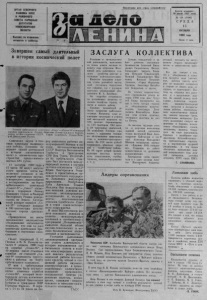 Г П Я Д = Г У ~ . Г | | » ' | ОРГАН СЕВЕРНОГО РАЙКОМА КПСС И РАЙОННОГО СОВЕТА НАРОДНЫХ ДЕПУТАТОВ НОВОСИБИРСКОЙ ОБЛАСТИ Выходит по вторникам, четвергам и субботам. Пролетарии всех стран, соединяйтесь! Г а з е т а основана 2 0 июля 1935 год а № 118 ( 5 0 9 0 ) С Р Е Д А 15 ОКТЯБРЯ 1 9 8 0 года Цена 2 коп. Завершен самый длительный в истории космический полет Экипаж ор бит ал ьн о го к о м г л е к с а „ С о ю з " — „Сал о т - 6 “ командир ко рабля подполковник Леонид Иванович П опов ( с л е в а ) и б зр тин - жен ер л е тчик -к о см он авт С С С Р , Герой С о в е т с к о г о С о ю з а В а л е ' рои Викторович Рюмин. Со вет ская наука и тех- рту комплекса работал ме- ника одержали выдающу- ждународный экипаж в со- юся победу. Успешно за- ставе летчика-космонавта вершен самый длительный СССР Виктора Васильевича в истории космонавтики Горбатко и гражданина полет в космическом про- СРВ Вам Туана. 19 сентяб- стр ан стве продолжитель- ря на орбитальную стан- ностыо 185 суток . цию был доставлен меж д у - 11 октября 1980 года в наР°Днь1й экипаж в составе 12 часов 50 минут москов- л е тч ика-космонавта СССР ского времени после вы- Юрия Викторовича Рома- полнения сложной и об- ненк0 и представителя со- ширной программы научно- йиалистического государст,- технцческих исследований Ra Западного полушария к экспериментов на борту гражданина Республики орбитального комплекса Арнальдо Томайо „ С а лю т -6 “ —„ С о ю з “ космо- М ендеса- Все междун арод - навты товарищи Леонид ные экипажи успешно ви - 1Иванович Попов и Валерий пОЛНИЛИ запланированные Викторович Рюмин во звра- исследования и экспери- тились на Землю. Спуска- менты- подготовленные емый аппарат корабля „Со- Учеными Советского Сою- ю з - 3 7 “ совершил посадку 33 и стран социалистичес- в 180 километрах юго-во- ко1 ° с о д р уж е с т в а , сточнее города Д ж е з к а з - В ходе 185-суточного погана. - лета основного экипажа и Проведенное иа месте полетов международных приземления медицинское эк и п аж ей в соответствии с обследование космонавтов программой „Ин теркосмос“ пок азало , что они хо ошо ВЬ1полнен большой обтаем перенесли длительное пре- н аУчно-технических и ме- бывание в состоянии неве- Дик°-биологических иссле- сомости. дований и экспериментов. Успешное выполнение Полет товарищей Л. И. запланированной програм- Попова и В. В. Рюмина на- мы самого длительного в чался 9 апреля ,1980 года истории космонавтики ор- на корабле „ С о ю з - 3 5 " , а витального полета и поле- 10 апреля после стыковки тов международных экипа- корабля со станцией „С а - жей явилось результатом лют 6 “ космонавты присту- надежной работы техниче- пили к работам на борту ских средств , четкой и сла- орбитального комплекса . женной работы научных, 27 мая с орбитальным конструкторских и произ- комплексом была осущест- водственных коллективов, влена стыковка корабля экипажей космонавтов, „ С о ю з - 3 6 “ , который пило- специалистов Центра уп- тировали летчик-космонавт равления полетом, космо- СССР Валерий Николаевич дрома, командно - измери- Кубасов и гражданин ВНР тельного и поисково-спаса- Берталан Ф ар к аш . В пери- тельного комплекса , од с 24 по 31 июля на бо- Т А С С З А С Л У Г А К О Л Л Е К Т И В А ч . Успехами в производствен ной деятельности, выполнени ем плана девяти месяцев те к ущ е го года встретили Всего юзный день рабо тников сель ского хозяйства рабочие и служащие райсельхозтехники. Наканун е праздника в