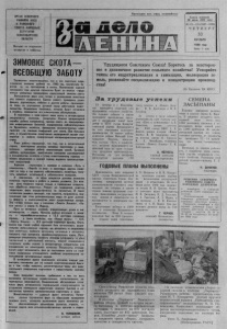 ОРГАН СЕВЕРНОГО РАЙКОМА КПСС И РАЙОННОГО СОВЕТА НАРОДНЫХ ДЕПУТАТОВ НОВОСИБИРСКОЙ ОБЛАСТИ Выходит по вторникам, четвергам и субботам. Газета основана 2 0 июля 1935 года № 125— 126 ( 5097—509 8) Ч Е Т В Е Р Г 30 ОКТЯБРИ 1 9 8 0 года Цена 2 коп. ЗИМОВКЕ С К О Т А — ВСЕОБЩУЮ ЗАБОТУ Т р у ж е н и к и животноводства, к а к и все советские люди, определив высокие рубежи на 1 9 8 0 год, настоцчиео борются за их претворение в ж и зн ь . Выполнение заданий последнего года десятой п я т ил е тки будет во многом определяться успешным проведением предстоящей зимовки скота . Большинство ферм у ж е готово к размещению ж и в о тны х для зимнего содержания. Сделан ремонт, проведены дезинфекция, деранизация, побелка и другие работы, принимаются меры по у лучшению условий труда работников ж и в о т новодства. Определено поголовье, которое будет оставлено в зимов ку , проводится его кли ни ческое обследование. В подготовку к зиме вносят свою лепту и ветеринарные специалисты колхозов, госветсети. Усилия ветеринарной сл ужбы района направлены, прежде всего, на предупреждение инфекционных болезней, оздоровление неблагополучных по бруцеллезу хозяйств , проведение за клю чительных мероприятий по санации помещений для скота. Все большую роль в осуществлении санитарных мероприятий играет имеющийся в районе хозрасчетный ветеринарно-санитарный отряд. Опыт работы показывает, что там, где в летне-осенний период всесторонне решены вопросы подготовки к зиме, успешно проходит работа животноводов зимой. Высокий уровень организации, пристальное внимание руководителей и специалистов хозяйств к этому ответственному периоду — основа сохранения в зимний период вы с о ки х производственных показателей. Хорошая подготовка к зимовке в колхозах «П у т ь к комм у ни зм у » , «Борьба за мир» и некоторых д р у ги х позволяет из года в год сни ж а т ь заболеваемость ж и в о тны х , полу чать здоровый, ус тойчивый к заболеваниям молодняк. К сожалению, не везде придается должное внимание вопросам подготовки н работе в зимних условиях. Это в а ж ное дело сводится подчас только к проведению специальны х обработок ж и в о тны х . Ремонт же помещений, очистка территории ферм осуществляется не полностью. В т а к и х хо зяйств ах зимовка проходит, к а к правило, напряженно, п р и нимаемые при этом дополнительные меры не дают должного эффекта, и животноводство несет существенные потери. Эти потери велики еще в колхозах «Заветы Ильича», «Новая ж и зн ь » и имени К . Маркса. Одно из основных условий, определяющих успех в ж и вотноводстве, — корма. Колхозы района вступают в зимовк у с кормообеспеченностью в 1 3 ,3 центнера кормовых единиц, а та кие хозяйства, к а к «Новая ж и з н ь » — 6 , 9 ; «Заветы Ильича» — 8 , 5 центнера кормовых единиц. Очень важно при та кой слабой кормовой базе организовать рациональное использование кормов, не допустить к скармливанию ж и в о т н ы х , особенно маточному поголовью и молодняку текущего года рождения, недоброкачественного корма. Ветеринарные специалисты хозяй ств обязаны у становить за этим постоянный и действенный контроль , следует своевременно напраЕить пробы кормов в ветеринарную лабораторию для определения их санитарного качеств а. Результаты исследований дадут возможность еще до постановки скота ка стойловое содержание спланировать наиболее рациональное использование заготовлен