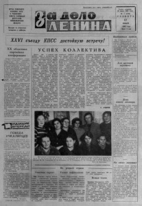 ОРГАН СЕВЕРНОГО РАЙКОМ А КПСС И РАЙОННОГО СОВЕТА НАРОДНЫХ Д ЕП У ТА ТО В НОВОСИБИРСКОЙ ОБЛАСТИ В ы х о д и т по в т о р н и к а м , четв е р га м и субботам. П р о л е т а р и и в с е х с т р а н , с о е д и н я й т е с ь ! Г а з е т а о с н о в а н а 2 0 и ю л я 1 9 3 5 г о д а N9 5 (5133| С У Б Б О Т А 1 0 ЯН ВАР Я 1 9 8 1 года Цена 2 коп. X X V I с ъ е з д у КПСС дост ойную встречу! X X о б л а с т н а я п а р т и й н а я к о н ф е р е н ц и я Вчера в Н о в о с иб ир с ке о т к р ы лась X X областная партийная конфере! ц и " . Ее делегаты — представители 147-тысячного о т ряда к о м м у н и с то в области — в деловой обстанов ке , с позиции в 1с о к с й п ар ти йн ой требовательности п роанал и зи р ую т рабо ту своего областного к ом ите та за отчетный период. Делегатам конференции, в с оо т ве т с тв ии с решением о к т я б р ь с к о г о (1940 г . ) Пленума Ц X К П С С , предстоит та кж е об суди ть пр о е к т Ц К К П С С к X X V I съезду партии. Б о л ь ш о й совет к о м м у н и с т о в области проходит на р уб е ж е п я ти л е то к . Соревнуясь _ п о д деви зом „Д е с ятой п ятилетке ;— удар ный финиш. X X V I съезду К П С С — до сто йн ую вс тр е ч у ! " пред п риятия промышленности об л а сти досрочно завершили в ы п о л нение пятил е тн е го плана. Объем промышленного производства возрос на 30,7 процента, п р о и з водительность труда •— на 28,2 процента. В последние два года п я т и л е т к и за счет роста п роиз водительности получен почти весь п риро ст вы п у с к а п р о д у к ции. Усп еш н ая работа X X областной п ар ти йн ой конференции, ее решения еще выше п о д н и м у т м о б и л и з у ю щ у ю р ль партийный орган изаци й . | ^ J ] В П Е Р Е Д И П О Б Е Д А И Ч К А Л И Н Ц Е В Па 1 января 1941 года в к< л- хозе имени К. Маркса н а с ч и ты вается 2 U 4 головы к р у п н о г о ро га то го с кота , из них tiSo коров. Падей на ф у р а ж н у ю норову в ш т а м п о м году со т в и л 1826 к ил ограмм ов мол о а. Л у ч ш и х пока атолей в этой отрасли ссльскохозт й с т е п н о г о п роиз вод ст ва добились ж и в о т н о воды И ч к а л и н с к е й фермы, к о торые и заняли первое место в с о ц и а л и с т и ч е а ом соревновании. Передовая доярка Дарья Васильевна П од ьява надоила от каж д ой коровы по 2653 к и л о грамма молока. Х о р о ш и х рез у л ь т а т о в доб и л и с ь доярки А . С. Мамакова , А . И. Арманчева, Е. И. Прохорова. С к о т и н к и фермы д о б р о с о в е с т но о тно сятся к своим о б я з а н н о стям и об еспечиваю т тем самым вы соки е надои. Надой по г у р т у Ивана Ильича П од ъ явы с о с т а вил 2272 кил ограмма мол ока от коровы , 2220 — по г у р т у Н и к о лая Ивановича Балкина. Х о р ош о отзываются д о я р ки и о работе с котий а Харитона Игнатьевича Халявы. Благодаря слаженной работе всего кол ле к ти в а надой по Ич- ка л и н с к о й молочнотоварной ферме со ставил 2183 килограмма молока на к о р о в у . • А . К у з ь м и н , глава in з о о те х н и к колхоза. У С П Е Х М н о г о л е т в р а й о н е и д е т д о б р а я с л а в а о к о л л е к т и в е р а б о т н и к о в ж и в о т н о в о д с т в а У д а р - н и ц к о й м о л о ч н о т о в а р н о й ф е р м ы к о л х о з а и м . X X I I с ъ е з д а К П С С . З д е с ь с о д е р ж и т с я о к о л о 6 0 0 г о л о в к р у п н о г о р о г а т о г о с к о т а , и з н и х 183 к о р о в ы . О б с л у ж и в а е т э т о п о г о л о в ь е н е б о л ь ш о й , д р у ж н ы й к о л л е к т и в , в о з г л а в л я е т к о т о р ы й м о л о д о й с п е ц и а л и с т - т о о т е х н и к , к о м м у н и с т П е т р И в а н о в и ч Ж е л д а к о в . Н а ф е р м е э а б о т а ю г д в а с к о т н и к а д о й н о г о у р т а , в о с е м ь д о я р о к , ' ш е с т е р о с к о т н и к о в м 