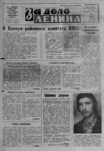 Газета осн ована 2 0 и ю л я 1935 г о д а ОРГАН СЕВЕРНОГО РАЙНОМА КПСС И РАЙОННОГО СОВЕТА НАРОДНЫХ ДЕПУТАТОВ НОВОСИБИРСКОЙ ОБЛАСТИ Вы хо д и т по вторникам , четвергам и субботам. Пролетарии всех с тран, соединяйтесь! II Пленум районного комитета КПСС В прениях по докладу на пленуме выступили: А. П- Зайцев — главный агроном управления сельского хозяйства 13 января в актовом зале Дома Советов состоялся (I пленум районного комитета партииПленум обсудил два вопроса: 1. Информация о выполнении решений VII пленума рай- онного комитета КПСС «О работе партийных организаций по выполнению постановления ЦК КПСС, Президиума Верховного Совета СССР и ВЦСПС «О дальнейшем укреплении трудовой дисциплины и сокращении текучести кадров в народном хозяйстве». 2. О проекте ЦК КПСС к XXVI съезду КПСС «Основные направления экономического и социального развития СССР на 1981— 1985 годы н на период до 1990 года» и задачах районной партийной организации, вытекающих из речи Генерального секретаря ЦК КПСС тов- Л. И. Брежнева на октябрьском (1980 г-) Пленуме ЦК КПСС». С информацией по первому вопросу выступил директор Северного леспромхоза В. Н. Лушов. Доклад по второму вопросу сделал второй секретарь ^йрнного комитета партии Е- А. Багров. Северного райисполкома, Н. А- Ипатьев — председатель колхоза «Путь к коммунизму», Ф. Л. Кудряшов — секретарь партийной организации колхоза «Заветы Ильича», Т. Н. Коростелева — мастер казеинового цеха головного маслозавода, В. И- Лукьянчун — первый секретарь районного комитета комсомола, М. Е. Окунев — председатель Останинского сельского Совета народных депутатов, А- В. Федулов —■ начальник ПМК «Мелиоводстрой», Н. И. Цип- ланов — шофер Северного транспортного предприятия «Транссельхозтехника». С заключительным словом выступил второй секретарь райкома КПСС Е. А. БагровПо обсуждаемым вопросам приняты постановления. Материалы о И пленуме районного комитета партии будут напечатаны в ближайшем номере газеты. С Л О В О С Д Е Р Ж А Л И Вести из к о л х о з а «Память Л е н и н а » Р е м о н т — Ремонт техники вести сегодня, чтобы не было ее простоя завтра. Именно так понимают сеощ задачу механизаторы, прилагая максимум усилии для скорейшей постановки сельхозмашин на линейку готовностиНа 15 января в Верх-Красно- ярской бригаде отремонтировано десять зерновых сеялок, два лущильника, сто тяжелых борон- То, что все это прошло под знаком качества, большая заслуга А- Мауля и Г. Прилепова. Не ломая общего ритма, быстс е г о д н я рыми темпами двигается ремонт комбайнов под руководством М. Васильева и А. Сметанина. Одновременно силами трактористов ведется ремонт колесных и гусеничных тракторов. Большой вклад в обеспечение непрерывного процесса в работе вносит слесарь, депутат сельского Совета, член профкома В. И. Врагов- Знающий специалист, он постоянно находится на самых трудных участках ремонтаА. ШИШКИН. К о л л е к т и в н а ш е г о а в т о т р а н с п о р т н о г о п р е д п р и я т и я , в с т у п а я в з а в е р ш а ю щ и й г о д д е с я т о й п я т и л е т к и , б р а л о б я з а т е л ь с т в о в ы п о л н и т ь г о д о в о е з а д а н и е п о о с н о в н ы м п о к а з а т е л я м к 25 д е к а б р я . П о д о ш л а н а м е ч е н н а я д ат а , п о д в е л и и т о г и и о к а з а л о с ь , ч т о с л о в о с в о е т р а н с п о р т н и к и с д е р ж а л и . П л а н г о д о в о г о д о х о д а в ы п о л н е н на 105 п р о ц е н т о в . В д е н е ж н о м в ы р а ж е 