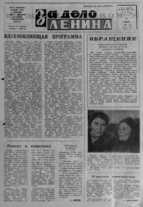 вЛййьУйУА. ОРГАН СЕВЕРНОГО РАЙКОМА КПСС И РАЙОННОГО СОВЕТА НАРОДНЫХ ДЕПУТАТОВ НОВОСИБИРСКОЙ ОБЛАСТИ Выходит по вторникам, четвергам и субботам. П р о л е т а р и и всех с т р а н , с о е д и н я й т е с ь ! Г а з е т а о с н о в а н а 20 и ю л я 1935 г о д а № 8 (5136) С У Б Б О Т А 17 ЯНВАРЯ 1981 года Ц е н а 2 к о н . В Д О Х Н О В Л ЯЮ Щ А Я П Р О Г Р А М М А С о в е т с к и й н а р о д в с т у п и л в н о в ы й г о д с в о е й с л а в н о й и с т о р и и — а п е р в ы й г о д о д и н н а д ц а т о й п я т и л е т к и . К о м м у н и с т ы , все т р у д я щ и е ся н а ш е г о р а й о н а в с т р е т и л и 1981 г о д с и с к л ю ч и т е л ь н ы м п о л и т и ч е с к и м и т р у д о в ы м п о д ъ е м о м , в ы з в а н н ы м п о д г о т о в к о й к X X V I с ъ е з д у К П С С . В о к т я б р е м и н у в ш е г о 1980 г о д а с о с т о я л и с ь П л е н у м Ц е н т р а л ь н о г о К о м и т е т а К П С С и I V с е с с и я В е р х о в н о г о С о в е т а СССР. На П л е н у м е т о в а р и щ Л И. Б р е ж н е в в с е с т о р о н н е п р о а н а л и з и р о в а л и т о г и р а з в и т и я н а р о д н о г о х о з я й с т в а СССР в д е с я т о й п я т и л е т к е , с ф о р м и р о в а л в а ж н е й ш и е з а д а ч и с о ц и а л ь н о - э к о н о м и ч е с к о й д е я т е л ь н о с т и п а р т и и . О к т я б р ь с к и й П л е н у м Ц К К П С С (1980 г . ) и о п у б л и к о в а н н ы й Ц е н т р а л ь н ы м К о м и т е т о м п а р ти и д л я в с е н а р о д н о г о о б с у ж д е н и я п р о е к т « О с н о в н ы е н а п р а в л е н и я э к о н о м и ч е с к о г о и с о ц и а л ь н о г о р а з в и т и я С С С Р н а 1981— 1985 г о д ы и на п е р и о д д о 1990 г о д а » с в и д е т е л ь с т в у ю т о н е у к л о н н о й и т в е р д о й п о с л е д о в а т е л ь н о с т и в п о л и т и к е К П С С , в ы р а б о т а н н о й на X X V с ъ е з д е . С е й ч а с и д е т ш и р о к о е о б с у ж д е н и е п р о е к т а Ц К К П С С в п а р т и й н ы х о р г а н и з а ц и я х , на с о б р а н и я х , в т р у д о в ы х к о л л е к т и в а х . В р а з ъ я с н е н и е е г о с о д е р ж а н и я в к л ю ч и л а с ь б о л ь ш а я а р м и я л е к т о р о в , п р о п а г а н д и с т о в , п о л и т и н ф о р м а т о р о з , а г и т а т о р о в С о з д а н ы в с е у с л о в и я д л я т о г о , ч т о б ы т р у д я щ и е с я р а й о н а м о г л и г л у б о к о у я с н и ть с м ы с л и з н а ч е н и е п л а н о в п а р т и и н а о д и н н а д ц а т у ю п я т и л е т к у и, к а к п о д л и н н ы е х о з я е в а с в о е й с т р а н ы , в ы с к а з а т ь с в о е м н е н и е , п р е д л о ж е н и я , з а м е ч а н и я п о р а з р а б о т а н н ы м м е р о п р и я т и я м , п о д а л ь н е й ш е м у с о в е р ш е н с т в о в а н и ю д е л а н а т о м и л и и н о м у ч а с т к е х о з я й с т в е н н о г о и к у л ь т у р н о г о с т р о и т е л ь с т в а . В с е н а р о д н о е о б с у ж д е н и е д а е т в о з м о ж н о с т ь в п о л н у ю с и л у и с п о л ь з о в а т ь б о г а т е й ш и й о п ы т и к о л л е к т и в н у ю м ы с л ь , с п о с о б с т в у е т м о б и л и з а ц и и о б щ е с т в е н н ы х с и л на п р е т в о р е н и е в ж и з н ь н а л х е ч е н н о й п р о г р а м м ы . В р а й о н е о б с у ж д е н и е п р о е к т а п р о ш л о у ж е на 33 п а р т и й н ы х , 56 п р о ф с о ю з н ы х и 24 к о м с о м о л ь с к и х с о б р а н и я х . Н а д н я х с о с т о я л с я п л е н у м р а й о н н о г о к о м и т е т а К П С С п о о б с у ж д е н и ю э т о г о в а ж н о г о п а р т и й н о г о д о к у м е н т а . П е р е д н а с е л е н и е м п р о ч и т а н о с е м ь д е с я т л е к ц и й , п р о в е д е н о б о л е е в о с ь м и д е с я т и б е с е д . На р а з л и ч н ы х с о б р а н и я х в ы с т у п и л о б о л е е 500 ч е л о в е к . Э т о — п р е д с е д а т е л ь О с т а н и н с к о г о с е л ь с к о г о С о в е т а М . Е. О к у н е в , д о я р к а к о л х о з а « З а в е т ы И л ь и ч а » В. Р. С у ч и л и н а , п р е д с е д а т е л ь к о л х о з а « П