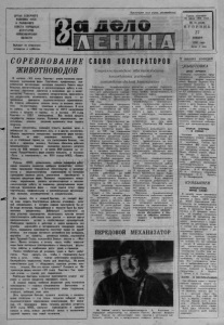 ОРГАН СЕВЕРНОГО РАЙКОМА КПСС И РАЙОННОГО СОВЕТА НАРОДНЫХ ДЕПУТАТОВ НОВОСИБИРСКОЙ ОБЛАСТИ Выводит по вторникам, четвергам и субботам. П р о л е т а р и и всех с т р а н , с о е д и н я й т е с ь ! Гааета основана 2 0 и ю л я 1935 г о д а _ N9 12 ($140) ВТ ОPH и к 27 ЯНВАРЯ 1981 года Ц е н а 2 коп. С О Р Е В Н О В А Н И Е Ж ИВОТНОВОДОВ В колхозе « V I I съезд Советов» умело налажено соревнование тр уж е н и ко в ферм- Партийная, профсоюзная, к о м сомольская организа ции, исполном сельского Совета ведут большую воспитательную и организа торскую работу в к о л лективе, постоянно заботятся о положении дел в ж и в о т новодстве. Гласность трудового соперничества, сравнимость его результатов, возможность повторения опыта — непреложные п р и н ц и п ы социалистического соревнования Их строгое соблюдение сделало поход за высокие показа тели по-настоящему массовым и действенным. И если по району за 1 9 8 0 год получено по 2 0 1 2 килограммов молока в среднем от коровы, то в колхозе « V I I съезд Советов» — 2 3 5 7 килограммов. Все молоко продано государству первым сортом. Развивая соревнование, ж и вотноводы решили досрочно выполнить план первого кварталаТакие коллективы , умеющие ставить высокие цели и добиваться их выполнения , есть и в д р у г и х хоз яйствах . Широко подхвачена инициатива т р у ж е н и к о в ферм колхоза «Борьба за мир», решивших пол учить моло ка за стойловый период на сто килограммов больше, чем было в прошлую зимов ку. С к о тн и к и обязались добиться среднесуточного привеса молодняка к р у п н о го рогатого скота по 5 0 0 граммов и не менее 8 0 0 граммов на откорме. Продуктивность ферм решили повысить в колхозах « П у т ь н коммун изм у» , им. X X I I съезда КПСС, «Память Ленина» . Райном КПСС, райисполком, райком профсоюза работников сельского хозяйства одобрили и н и ц и а т и в у ко л л е к тивов, п р ин явш и х повышенные обязательства и в к л ю ч и в шихся в социалистическое соревнование за успешное проведение зимовни с кота , увеличение производства и продажи продукции ферм. Всемерно поддерживать и н и ц и ативу передовиков, усилит ь организа торскую и массово- политическую работу по широкому развертыванию соревнования т р уж е н и к о в ферм — та кая задача стоит перед партийными, профсоюзными и комсомольсними ор ганизаци ями колхозов, руководителями и специалистами. Зто значит , что в ка ж д о й бригаде, на каждой ферме надо создать благотворную рабочую атмосферу, деловой микроклимат , в котором хорошо чувствовали бы себя люди акти вные , трудодюбивые и неуютно было бы н а р у шителям дисциплины. Добиваться активности на всех у ч а с т к а х производства, воспитывать чувство личной ответственности работников всех рангов — важная задача идеологического а к ти ва и хозяйственных руководителей- Необходимо привести в действие и умело применять все способы морального и материального поощрения людей. П усть передовики производства по лучают право на приобретение вне очереди лег кового автомобиля или мотоцикла, вручайте им грамоты, денежные премии, поднимайте флаг Трудовой Славы, в ы пу с кай те боевые л и с т к и и «Молн и и» . Важно отладить и оплату труда, чтобы ж и в о тн о воды были постоянно заинтересованы в на ил учш и х результатах работы, в наибольшем росте удоев и привесов. Н уж н о позаботиться об условиях труда и быта работников- Надо сделать та к , чтобы в помещениях было тепло и сухо