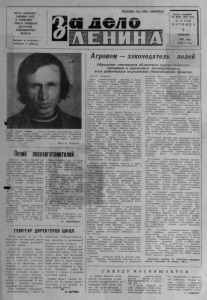 ОРГАН СЕВЕРНОГО РА Й КОМ А КПСС И РАЙОННОГО СОВЕТА НАРОДНЫХ Д Е П УТ А Т О В НОВОСИБИРСКОЙ ОБЛАСТИ Пролетарии всех стран, соединяйтесь! Выходит по вторникам, четвергам и субботам. 21 «Я /141 т г и Газета основана 20 июля 1935 года № 16 (5 1 4 4 ) П Я Т И И Ц А 6 ФЕВРАЛЯ ' 1 9 8 1 года Цена 2 коп. На нашем снимке ^ — один из лучших ж ивотноводов колхоза имени ХХМ съ е зд а КПСС, скотник дойного гурта Ударпицкой фермы Сергей Петрович Скосырский. Д оброс ове стн о , со знанием дела у х а ж и в а я з а животными , он помогае т д о яр к а м доби в ать ся высоких нафоев молока . Фото Б. Королев а Почин лесозаготовителей Успешно начали первый год о д и н н ад ца то й п ятилетки т р у ж е ники Северного леспромхоза . На первый месяц было з а п л а н и р о вано з а г о т о в и т ь 12 тысяч к у б и ческих метров древесины. План успешно выполнен — з аготовили 19,5 ты сячи кубометров. Не о тстаю т от своих т о в а р и щей н рабочие п нлорамного ц е ха — з а д а н и е месяца .выпол- ~ии\ ___ "ударному т р у д я т с я трапсТ^игпые бригады , вывозящие лес. Д е л ян ы н а х о д я т с я в ста километрах от поселка. Т р а к т о ристы д е л аю т в среднем по д в а рейса в неделю, водители ж е ав томаши ны успевают сделать рейс з а день. Хороший пример п о к а зы в а е т т о в ар ищ ам по р а б о те Ф. Н. Шнндяйкин, в о з г л а в л яю щ и й б р и г а д у трак торис тов. Он вывез 334,4 кубоме тра леса.. Не о т с т а ет от него и В. Ф. Апарин, вы полнивший план па 130 процентов. Н о рм а вывозки леса з а сезон со с т а в л я е т 800 кубических м е т ров. Ф. Н. Шнндяйкин и В. Ф. Апарин приняли встреч ный план — вывезти по 1000 кубометров. С д еся то го ян в а р я на д о с т а в ке леса р а б о т аю т д ве бригады водителей. Норма вывозки на а в т о м аш и н у i «Урал »—320 к у б о метров, на МАЗ—270. А- такие водители, к а к Н. Г1. Гурии, Г. Степан ов, П. Михай лов вывезли тольк о за 20 дней от 240 до 253 кубометров..*. Н. П. Б а л а б а н о в р а б о т а л в н а чале на тр а к т о р е , за тем пересел па ав т ом аш и н у и вывез в я н в а ре 348 кубометров древесины. Его личный план на з а г о т о в и тельный сезон с о с т а в л я е т 1300 кубометр ов. Тр у д ящ и ес я леспромхоза полны решимости достойно в с т р е тить XXVI съ е з д КПСС. О. ФЕДОРОВА. СЕМИНАР ДИРЕКТОРОВ ШКОЛ Пятого февраля на базе Чу- вашянской восьмилетием школы состоялся семинар руководителей школ района. Участники семинара присутствовали на открытых уроках и школьных . мероприятиях. Осмотрели кабинеты, где встретились с учителями, ответственными за их оформление, ознакомились с ходом' накопления дидактического материала, хранения наглядных пособий и и хгических средств обучения. Затем состоялось обсуждение Уроков и мероприятий. В заключение семинара участники заслушали ряд докладов. Тема семинара: «Организационно-педагогическая работа по руководству учебшувоспитатель- ным процессом и организацией'* виутришколъного контроля». С докладом по этому вопросу выступила директор Чувашинской восьмилетней школы 3. Н. Голубева,. Далее был рассмотрен ряд важных вопросов школьной жизни. Здесь и вопрос организации летнего труда и отдыха, и изучение, обобщение и внедрение передового опыта. Не осталась в стороне и проблема подготовки кадров. Семинар прошел успешно. Думается, что его выводы помогут участникам в их трудной, ;но очень важной^работе. 0 . КАРПОВА . А гр о н ом — законодатель полей Обращение участников областного а гр о н ом и ч е ск о го совещания к а г р о н о