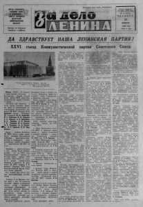 2 l l l l l l ! i l l l l l l l l l U l ! l l l l l l l l l l l ! I I H l M l l l l l ! l ! ! l l l l l l l l l ! l l l ! l ! l l l ! l l l l l l l l « З А Д Е Л О Л Е Н И Н А » Ш1ШШШШШШШ1ШШПШН № 25 (5153) i 26 февраля 1981 года з а д а ч е * койпш сз является надежнее о й б ш ш а в страны пттштыпшт штпытттШтжыш' Ш ф Ь Ш и « Ж Й ^ 9 « » Т 8 т Ш С * « 8 р Т 8 * (Фотохроника ТАСС) Сл у ша л и Мос к в у 23 февраля — обычный т р у довой день у животноводов. Н о на э т о т раз он был несколько необычен: открытие X X V I съ езда КПС С и День Советской Ар м ии , и Военно-Морского Фа о та внесли в него некоторое т о р жество , приподнятость - Повсюду, где т о л ь к о оказывалось два— три человека, где собирались д о я р ки. с к о тник и к ол хоз а « V I I съезд Советов», возникали разговоры о предстоящем форуме к ом м уни стов страны, о сыновьях, с л у ж а щ и х в рядах В о о р у ж е н н ы х С ил. И все мечты ж е нщ и н вновь возвращались к одной мысли: п у с т ь на земле б уд е т мир. п р о ч ный и долго вечный, п у с т ь н и когда не по вторится то- что п р и шлось пережить им. матерям, в годы Великой Отечественной войны, в годы и х детства и юности. А в два часа, когда в Москве, во Дворце съездов, начал свою работу съезд партии, все собра лис ь в красном у г о л к е и с л у шали его открытие и выступле ние Генерального секретаря) Центрального Комитета КПСС Л. И- Брежнева. Теперь в народе идет обсуждение отчетного доклада, и все выделяют преж дс всего раздел о внешней и внутренней по ли ти ке СССР, связывая с нею будущее. В. У З К И Х , секретарь партбюроЧесть нашей эп о х и и совесть и разум Она в о п ло ти л а в себе. Е й — славной вовеки — народ наш обязан Своею победой в борьбе. И п у с т ь не записано это в У с т а в е ,— Мы знаем, в чем сила ее, В л о ж и л в нее Ленин, ей Л енин оставил Велиное сердце свое.-. Мы с именем партии горы сдвигали. В ней черпая с и л у свою. А н оль п р и хо д и л о с ь встречаться с врагами. Мы насмерть с т оя ли в бою. И мы никому не сдадимся на милость. Любые преграды сметем! — Под знаменем пар тии — что б ни с л у ч и л о с ь — До це ли заветной дойдем!-. Михаил ИСАКОВСКИЙ Из стихотворения «Наша пар ти я» . ДРУЖНЫЕ И УМЕЛЫЕ В Ново-Тронцкой школе ком сом о л ь ска я о р г а низация 1Гасчнтывает сорок пять членов. О р г а низация бо льш а я . роль ее в жизн и школы весьма з ам етн а . Это м ож но судить хотя бы по тому, что многие р еб ята успешно учатся по всем предметам. — Учеба — наша г л а в н а я з а д а ч а ,—д о к л а д ы вал на недавно прошедшем районном слете пред став ителей школьных комсомольских о р г а низаций С аш а Вильшкерст. — Во всех к ом со мольских группах было . принято решение: подд е р ж а т ь инициативу комсомольцев Северной средней школы провести «26 ударных дней без единой двойки». Восемнадцать мальчиков и д е вочек учатся д а ж е без троек . Это Л ю д а Б у г а ева, Света Волонцевич, Ж е н я Лушов, Витя К о вал ев , С ереж а Агалаков. Тома В аш та ев а , Коля Ч уя ков и другие ребята . Все они имеют за первое полугодие т ольк о хорошие и отличные оценки. Комсомольцы Ново-Троицкой средней школы хорошо помнят свои пионерские годы. Помнят, что у них были хорошие в о ж а т ы е - с т а р ш е к л а с сники, з аводилы , инициаторы интересных - с б о ров, прогулок в лес. Вот и они направили в младшие кл ассы Надю Денисову , Юру С т еп ан о ва, Таню П а влову , Иру Буглееву . Перед открытием XXVI съ е зд а КПСС группа комсомольцев из 8— 10 клас сов в ы е зж а л а в села се льсовета, где знакомили с проектом «Основ’ - ние направле