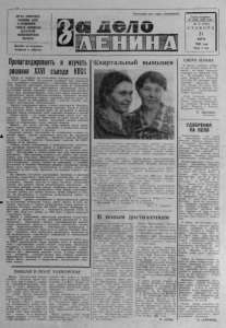 Газета основана 20 июля 1935 года ОРГАН СЕВЕРНОГО РА Й КОМ А КПСС И РАЙОННОГО СОВЕТА НАРОДНЫХ Д Е П УТ А Т О В НОВОСИБИРСКОЙ ОБЛАСТИ Выходит по вторникам, четвергам и субботам. № 35 (5163) С У Б Б О Т А Пролетарии всех стран, соединяйтесь! Пропагандировать и изучать решения XXVI съезда КПСС Рубеж, от которого мы отсчитываем одиннадцатую пятилетку, XXVI съезд КПСС. Его решения указывают нам конкретные пути дальнейшего экономического и социального развития советского общества, нацеливают трудящихся страны на динамичный и пропорциональный рост общественного производства. Съезд и его решения явились огромным событием исторического значения. Съезд ярко продемонстрировал перед всем миром верность Коммунистической партии марксизму-ленинизму, лринципам интернационализма, убедительно показал нерушимое единство рядов ленинской партии, ее неразрывную связь с рабочим классом, колхозным крестьянством, интеллигенцией. Высокая единодушная оценка съездом деятельности Центрального Комитета КПСС, ее Политбюро выражает мысли и чувства всех советских людей, которые видят во внутренной и внешней* политике партии воплощение своих коренных интересов и чаяний. Планы партии — это планы, определяющие задачи всех трудящихся нашей страны. Выполнение их .прямо зависит од- по. нимания советскими _ людьми намеченной съездом политики партии, от сознательного труда каждого человека. Партия все делает для того, чтобы широкие массы тр у д я щихся хорошо ознакомились с решениями и материалами съезда, организует их разъяснение и изучение. Благодаря прямым трансляциям по телевидению и радио советский народ получил возможность быть как бы участником съезда. Люди с огромным интересом слушали Отчетный доклад, с которым выступил Генеральный секретарь ЦК КПСС товарищ Л; И. Брежнев. Главная задача агитационной и пропагандистской деятельности партийных организаций района в современный период — донести идеи съезда до каждого коммуниста, до каждого человека. Это почетный и ответственный долг всех идеологических работников. Они призваны вложить в эту работу свои знания, умение, всю силу души. Повсеместно в районе развертывается агитационная и пропагандистская работа по разъяснению решений и материалов съезда. Главное ее содержание — глубокое разъяснение и изучение Отчетного доклада, документов съезда. Бажпо вести пропаганду систематически и. глубоко, донести их содержание до всех слоев населения, до сознания каждого трудящегося. На собраниях выступают руководящие партийные и советские работники, специалисты, представители интеллигенции. В этой работе участвуют пропагандисты, агитаторы, политинформаторы, докладчики, лекторы. Д л я них 17 марта состоялся специальный семинар при райкоме партии. Рзарабатывают мероприятия по пропаганде решений съезда Советы, профсоюзы, комсомол, общество «Знание». Широко используются такие формы агитационномассовой работы, как единые политдни, вечера вопросов и ответов. На предприятиях, в хозяйствах развертывается работа по обновлению наглядной агитации. Идейный уровень агитационной и пропагандистской работы по разъяснению материалов съезда прямо зависит от того, насколько тщательно и глубоко идеологические кадры изучили содержание Отчетного доклада ЦК КПСС, доклада «Основные направления ^экономического и социального р