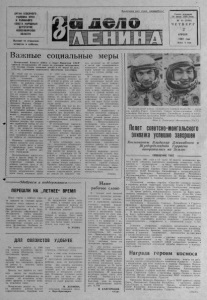 Г аз е та основ ана 20 июли 1935 года № 40 (5 1 6 8 ) Ч Е Т В Е Р Г А П Р ЕЛ Я 1 9 8 1 года Цена 2 коп ОРГАН СЕВЕРНОГО Р А Й КО М А КПСС И РАЙОННОГО СОВЕТА НАРОДНЫХ Д Е П УТ А Т О В НОВОСИБИРСКОЙ ОБЛАСТИ Выходит по вторникам- четвергам и субботам. Про летарии всех стран, соединяйтесь! ш щ ш щ ш щ Важные социальные меры Центра льный Комитет КПСС и Совет Министров СССР приняли постановления «О ме рах по усилению госу д ар с твен ной помощи семьям, имеющим детей» и «О мерах по д а л ь нейшему улучшению социал ьного обеспечения населения». В числе мер по усилению государственной помощи ' семьям, имеющим детей, пред у см а тр ив ае тся введение п о этап но по районам ст раны, начиная с 1981 года д л я р а ботающих ма терен частично on лач ив аем ого отпуска по у х о д у з а ребенком д о д о с т и ж е ния им в о з р а с т а одного года. О п л а т а э того отпуска будет производиться в р а зм ер е 50 рублей в месяц в районах Д а л ьн е г о Востока , Сибири и северных рай он ах страны и в р а з м е р е 35 рублей в месяц в остальных районах . Р а б о тающим женщинам о д н о в р е менно с введением у к а з а н н о го отпуска п р ед о став л я е тся п р ав о на получение д о п о л н и тельного отпуска без сохране ния зар а б о т н о й пла ты по ухо д у з а ребенком до д о с т и ж е ния нм в о зр а с т а полутора лет, а в д ал ьн ейш ем , и д вух лет , с сохранением непрерыв ного тр у д о во го с т а ж а и с т а ж а работы по специальности. Намечено д альнейшее в с е мерное р азви тие сети детских садон и яслей, школ и групп с продленным днем, пионер ских лагерей и д р у гих д е т с к и х учреждений. П остановлением -п р ед у см о т рены и другие меры по с о з данию женщинам более б л а гоприятных условий, п о зво ляющих сочетать т р у д в о б щественном производстве с воспитанием детей , по у л у ч шению матер и ал ьн о го обеепе чешгя семей, имеющих детей . В 1981 году повышается разм ер государс твенного пособия одиноким ма терям д о 20 рублей в месяц на реб ен ка , с выплатой его до д о с т и ж е ни я ребенком возраста 16 л е т (учащимся, не п о л у ч а ющим стипендии, — 18 л е т ) ; у с т а н а в л и в аю т с я д о п о л н и т е льные льготы при назначении пенсии по в озрасту при неполном с т а ж е работы женщи нам, воспитавшим п я т ь или более детей. Определен р яд мер по рас - - ширению д л я семей, имеющих детей, и м олодож енов преи муществ при получении госу д а р ств ен н о й жилой площади, а т а к ж е при .ин д и в и ду а ль н ом и кооперативном жилищном строительств е. В постан овлении о п р е д е л е ны т а к ж е з а д а ч и по се р ь е з ному улучшению работы предприятий торговли, общ еств енного пита ния, быто вого о б с л у ж и в а н и я в ц е л ях о б легчения домаш него т р у д а женщин. В целях улучшения си стемы - социал ьного обеспечения п редусмотрено повысить в 1981 году миним альный р а з мер пенсии по в о з р а с т у р а бочим и с л уж ащ им до 50 рублей в месяц, а т а к ж е уве личить миним альные р азм еры пенсии по инвалидности и по случаю потери кормильца . П ринято п редлож ен ие с ою з ного сов ета к о л х о з о в ' об у в е личении в од ин н ад ца то й п я ти л е т к е миним ального р а з м е р а пенсии по в о з р а с т у члеОдобряем и поддерживаемПЕРЕШЛИ НА „ Л Е Т Н Е Е " ВРЕМЯ Н аш а с т р а н а с первого а п р е л я перешла на «летнее» время . Н а к ан у н е это го собы тия в д о р ожн ом у частк е состоялось с о брание коллек тив а. В. А. З а р у бин р а з ъ я с н и л собравшимс я н е обходимость т а к о го реш ения. Это