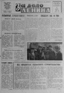 ♦ ОРГАН СЕВЕРНОГО Р А Й КОМ А КПСС И РАЙОННОГО СОВЕТА НАРОДНЫ Х Д ЕП У Т А ТО В НОВОСИБИРСКОЙ ОБЛАСТИ В ы х о д и т по в т о р н и к а м , четв е р га м и субботам. Пролетарии всех стран, соединяйтесь^ Газета основана 20 июля 1935 года № 43 (5171) Ч Е Т В Е Р Г 9 АПРЕЛЯ 1 9 8 1 года Цена 2 коп. ПОЗЫВНЫЕ СУББОТНИКА •Инициатива и опыт ПУСКАЧ НА К-701 ВНЕСУТ СВОЙ В К Л А Д Труженики- колхоза имени М. Горького готовятся к в с т р е че 111-й годовщины со дня рождения В. II. Ленина. На праздник труда выйдут 16!) человек . Сто тридцать из h i х б уд у т nei осредственно заняты на своих производственных уч ас т к ах . Только молока в э т о т день колхоз получит 15 центнеров. Руководи ть р а б о тами будет штаб во главе с П- Ф. Гимкиным. В составе его: Н В. О бухов , В. Д. Ив- кин, С. Е. Фомищов, С. В Яковлев, С. В. Коростелев, И. В. Агалаков, Н. И. Лещинский, Н. В. Архипова, Н М. П ермяков. На территории ма- шш ного двора, в школе и других общественных организациях люди з-аймутся н а в е дением порядка. ” Рядом со взрослыми 18 апреля вста iyi и школьники. Их участок — сбор макулатуры и металлолома. Ок о ло 600 рублей соста вит вклад ко л хо .а в гарод- ную копилку . З А Д А Ч И ОПРЕДЕЛЕНЫ Как и в прошлые годы, горячо откликнулись на призыв москвичей о проведении 18 апреля коммунистического субботника коллектив Северного автотранспортного предприятия. G половины марта здесь действует штаб проведения субботника, которым руководит секретарь партий - -ной организации М. Д. Пох. лебин. Штаб постоянно проводит организаторскую, р а з ъ яснительную работу. Уже конкретно определено кто и где будет трудиться в этот день. Учтено и ж е л а ние некоторых. В день «красной субботы* все водители, как и всегда, уйдут в рейс. Из Куйбышева и Барабинска они д оставят строительные материалы'- для строительных организаций. Более половины водителей совершат этот рейс на сэкономленном топливе. На своих местах будут трудиться рабочие станции техобслуживания. Остальные работники займутся благоустройством. З а р а б о т а н н ы е деньги б у д у т перечислены на особый счет В. ФЕДОРОВ, директор. Рэбста по благоустройству Полный рабочий день — такова продолжительность субботника, который проведет коллектив Северного участка Куйбышевского эксплуатационно - энергетического предприятия 18 апреля. Шесть электромонтеров уч а стка будут устанавливать лампы уличного освещения села. Остальные семь р а б о т ников займутся ремонтом служебного помещения и а в тогараж а , а такж е б лагоустройством территории базы. Все средства, заработанные на субботнике, коллектив энергопредприятня решил перечислить в фонд одиннадцатой пятилетки. Е. ГОФМАН, начальник участка. Мощные «Кировцы» нашли свое применение и в наших лесных кра ях. где ног простора казахстанских или алтайских степей. 1! тут им работы предостаточно. Большую часть зяби поднимают они- весновспашку ведут тоже эти тракторы. Но есть одна беда, которая застав ляет их простаивать- II подолгу. Стоит только выйти из строя по любой- из причин аккумулятору, как «Кировец» становится па «прикол». Главный инженер еельхозуправления А. II. Коротков объяснил: — Д л я этих тракторов необхо димы специальные аккумуляторы. Но промышленность выпускает их еще недостаточно. Вести подзаряд ку в нашем районе мы не можем: нет установок д а ж е в мастерской райсельхозтехники, а уж о колхоз !!ых мастерских и говорить нечего- В конц