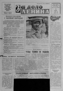 111Ш 1]|||1Ш 11111111Ш 1Ш 11! 11Ш 111Ш 11Ш 1Ш !111111111Ш 1111111Ш 1 «ЗА ДЕЛО Л Е Н И Н А » i i i i m i m i H i H i i l i i i i i i i i i i i i i l l l i l i N . 4 5 ( 5 1 7 3 ) . 4 1 4 апреля 1 9 8 1 года Решения X X V I съезда КПСС — в жизнь В пар ти йных о р г ан и з ац и я х широко об с у ж д а ю т с я з а д а ч и , выдвинутые XXVI съ е зд ом КПСС. Участники партийных со б раний высоко оценивают д о к л а д Генер ал ь но го с е к р е т а р я . Ц К нашей партии т о в а р и щ а Л . И. Б р еж н е в а . Они е д и но душно , ц еликом и полностью одобряют реш ения и м а тер и алы съ е з д а , принимают их к н е уклонном у р уководству и нспол нению. Н а д н я х т а к о е собрание состоялось в к о л х о з е «Восход». П р оходи ло оно в но вом Д о м е к у ль туры , сданном недавно в э к сп л у а т ац и ю в Витинской бригаде . С до к л ад ом выступил за м ести тель се крета ря п а р т о р г ан и з ац и и , п ред сед ате ль Чебаков ского се ль сов е та С. К. Волокитин. — Труж ени ки нашего к о л х о з а , — го ворит он, — с большой з аи н терес ованн о стью следили з а р а б о то й XXVI съ е зд а КПСС. Мы хорошо знаем , что вся д е я т е л ьность нашей партии н ап р а в л ен а на б ла г о н а р о д а . Д о к л а д ч и к подч еркнул, что вместе со всей партией коммунисты ко л х о з а горячо о д о бр яю т решения съ е зд а . Он остановил ся на основных п олож ен иях д о к л а д а Л . И. Б р е ж н е в а , особо выделил в О с новных н ап р а в л ен и я х р а зв и т и я СССР р а з д е л по сельскому х озяй ству . Ведь г л а в н а я цель соврем енной агр а р но й политики КПСС — поднять сельск ое х о з я й с т в о д о у р о в н я , позволяющего п олно стью обеспечить рас т ущ и е потребности населения в п р о д у к т а х питания.- Комм у н и сти чес кая п ар т и я , с т а в я столь отв етств енны е з а д а ч й , оп ира ется в первую очередь на ко л х о зы и совхозы. К ак о в экономический потенциал кол х о з а «Восход» — п о к а з а л и высту пления к ом м у ни стов. Он не рад у ет . Хотя в условиях столь быстрого роста м а тери альн ой осна щенности х о з я й с т в а во весь рост в стает з а д а ч а повышения его эффективности, улучш ения всех качественных п о к а з а т е лей. Это тр е б у е т п р еж д е всего усиления ответств енности к а д р о в , их инициативы, з а б о т ы о том, чтобы выделя емы е го су д а р с т в о м ср е дс тв а и м а тер и ал ьны е р е сурсы обеспечивали ма ксимальную о т д а чу, чтобы лучш е и сп ользов ать внутренние ре зе рвы. Н А Л О Г И Г О С У Д А Р С Т В У - ДОСРОЧНО З а к о н ч и л с я 1 к в а р т а л 1981 го д а . Активно приступили к сб ору с е л ь х о з н а л о г а Биазинскнй , Оста пинский, Чув аш и нс ки й , Верх- К р а сн о я р с ки й , Северный с е л ь ские Советы. Совсем не в ы п о л няют эту р а б о т у Ч е ба ков скнй , Ново -Т роицкий, Г р аж д ан ц е в с ки й , Б ер гу л ь ски й и П отю кзнов ский Советы, х о т я п р е д с е д а т е л ям ис п о лк ом ов хо р ош о известно, что от своеврем енного поступле н в я п л а т е ж е й в бю дж е т се л ьс к о го С о в е т а з а в и с и т р е г у л яр ное ф и нансир о в ани е , а зн ачит и н о р м а л ь н а я р а б о т а у чреж д г ний к у л ь т у ры , школ, больниц. Т а к ж е к а ж д ы й го д в бюджет се ль ск ого С о ве та планируе тся поступление ср е дс тв с а м о о б л а ж е ния. Этот небольшой нал о г с населения- имеет опред еленное н азначение : использу с т с ч на улучш ение бытовых условий сельских ж и тел ей , еж его д но н а п р а в л я е т с я на строитель ство новы х и рем онт имеющихся ко л о д ц е в . . С т р о и т е л ь с т в о к о л о д цев — д е л о тр у д о ем к о е и д о р о г о сто ящ ее . Ч т о бы своевременн