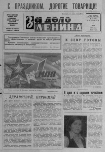 ■-W у ,- „ .у , ——----— - — - ■, _____ - - .......... .. :----- ______ _____________________ _— ------- l ОРГАН СЕВЕРНОГО РА Й К О М А КПСС И РАЙОННОГО СОВЕТА НАРОДНЫХ Д Е П У Т А Т О В НОВОСИБИРСКОЙ ОБЛАСТИ Выходит по вторникам, четвергам и субботам. Пролетарии всех стран, соединяйтесь! Газета основана 20 июля 1935 года № 53 (5181) П Я Т Н И Ц А 1 М А Я 1981 года Цена 2 коп. Т р у д я щ и е с я С ове тск о го Союза! Повышайте п р о и з в о д и т ел ь ность, эф ф е к т и в н о с ть и качество т р у д а на каждом р абочем месте! Крепите с о з н а т е л ь н у ю коммунистическую дисциплину, проявляйте т в о р ч е ск ую инициативу! (Из Призывов Ц К КПСС к 1 Мая 1981 года) zcaxcocaccccccc. П лакат художника В. Викторова. Издательство «Плакат», Фотохроника ТАСС ЗДРА ВС ТВУЙ , ПЕРВОМАЙ Вот и пришел Первомай — праздник Мира, Весны и Труда. Разливом алых стягов украсил он наши села и деревни, озарил улицы сиянием улыбок, светом радости и торж ества . Этот п р а зд ник полон бодрости, как и сама весна. Он как бы олицетворяет пробуждающуюся природу, когда в ней все удивительно молодо, стремится к росту и расцвету. Нынешний Первомай озарен идеями XXVI съезд а КПСС. Мы все еще находимся под неиз гладимым впечатлением высшего форума коммунистов. В Отчетном докладе Центрального Комитета, с которым выступил Генеральный секретарь ЦК КПСС товарищ Л . И. Брежнев, в других материалах съезда раскрыт богатый опыт -нашей партии, дан научный анализ ее утренней и внешней политики, намечены захва тывающие перспективы дальнейшего восхождения к вершинам коммунистического общества. В мудром руководстве ленинской партии — один из истоков нашей твердой уверенности в том, что задания одиннадцатой пятилетки при всей их грандиозности и сложности будут успеш но выполнены. Об этом свидетельствует и р а с тущая день ото дня трудовая активность .наших людей, это подтвердил и недавно прошедший коммунистический субботник. Новые успехи в борьбе за досрочное выполнение заданий первого года одиннадцатой пятилетки, з а высокую эффективность и качество работы на всех участках производства — вот весомые подарки, которые подготовили труженики сел и деревень к Первомаю. План первого к в ар т ала по объему и реализации промышленной продукции и выпуску большинства важнейших изделий выполнен. Панорама предмайского соревнования ознаменована и новыми трудовыми достижениями ко л хозников, стремящихся добрыми делами ответить на Призыв партии: Труженики сельского хозяйства! Увеличивайте производство и продажу государству мяса, молока, яиц, шерсти и другой продукции. Животноводство — ударный фронт! Например, в колхозе «Память Ленина'» за первый квартал получено от каждой ф у р а ж ной коровы по 594 килограмма молока, что на 67 килограммов больше уровня прошлого года. Животноводы колхоза «VII съезд Советов» выпол нили план продажи государству молока на 114,6 процента, мяса — на 132,9. Коллектив Веселов скон фермы колхоза «Путь к коммунизму» все молоко сдал государству первым сортом. Горячие, дни наступают у земледельцев — весен ние полевые работы. Каждый час, к аж д а я минута будут сейчас влиять на урожай. Земледельцы намерены провести сев в предельно сжатые сроки, с соблюдением всех агротехнических требований. Встречая праздник иод мирным небом, советские люди хорошо сознают, какой ценой завое вано это счастье и как много делает наша партия для того, чтобы сохранить и укреп