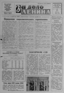 SSd ОРГАН С ЕВ ЕР НО ГО РАЙКОМА НПСС И РАЙОННОГО С О В Е Т А НАРОДНЫХ Д Е П У Т А Т О В НОВОСИБИРСКОЙ ОБЛАСТИ Выходит по вторнинам. четвергам и субботам. Г а з е т а о с но в а н а 2 0 июля 1 9 3 5 г о д а № 61 (5189] П Я Т Н И Ц А 22 МАЯ 1981 года Цена 2 коп. — ----------------------------------------— В р а й к о м е КПСС , р а й и с п о л к о м е и р а й к о м е проф сою за ________ : Передовики соц и ал и с ти ч ес ко го соревнования Б ю р о . Се в е рно г о ' райкома КП С С , райис полком и президиум ра йкома профсоюз а р а б о т ник ов с е ль с к о г о х о з я й с т в а , р а с с м о г рев итоги с оциалис тиче с ко г о с оре внов а ния к о л х о з о в , молочнот ов а рных ферм, доя ро к , с к от ников дойных г урт ов и т елятниц по пр о и з в о д с т в у и п р о д а ж е г о с у д а р с т в у про д у к т о в ж и в о т н о в о д с т в а з а 4 мес яца 1981 г о д а , признали победите лями: Ко л х о з « Пу т ь к коммуни з му » ( пре д с е д а т е л ь к о л х о з а Н, А, Ип а т ь е в , с е к ре т а рь партийной организации Н. Ф Остаиип, пр е д с е д а т е ль с е ль с к о г о С о в е т а А, А, Тре ион, п р е д с е д а т е ль профкома И. К. Трук шип, с е к р е т а р ь к омс о мо л ь с к о й орг аниз а цни Н. Се м е но в а , г ла вный з оот е х ник Л . Ф. С и д о р о в а ) , получивший на одну фур ажную ко ро в у по 7 6 5 кил о г р а ммо в мо л о к а , выполнивший планы: в о с про из в о д с т в а с т а д а крупного р о г а т о г о с к о т а на 121, 3 процента, продажи г о с у д а р с т в у мо лок а — на 5 5 , 4 процента, мя с а — на 9 8 , 4 процента. 9 2 , 8 процента молока еда по первым сортом. К о л х о з у “Пу т ь к коммуни з му » - вручено п е р е х о д я щ е е Кр а сное з н а мя р а йк ома пар Тл и , ра йис полкома и р а йк ома профс оюз а ра ботник ов с е ль с к о г о х о з я й с т в а . Второе ме с т о прис ужде но к о л х о з у « Па мя т ь Л е нин а » , получившему на одну фу р а жн ую к о р о в у по 831 к и л о г р а мму моло ка , выполнившему план п р о д а жи мя с а г о с у д а р с т в у на 9 2 , 5 процента , мо л о к а — на 55 процентов . 100 процентов мо ло к а с д а н о первым сорт ом. Тре тье мес то при с ужде но к о л х о з у « V I I с ъ е з д Сов е т ов » , получившему от фу ра жной коровы по 7 1 0 к и л о г р а ммо в мо л о к а , в ыполнившему планы: п р о д а жи мо лок а — на 5 8 , 6 процента, мя с а — на 109 процентов. 1-00 процентов молока с д а но г о с у д а р с т в у первым с орт ом. К о л х о з ы , з а н я в ши е к л а с с ные мес та , за несены на районную д о с к у По че т а . В честь к о л х о з а « Пу т ь к коммуни з му » поднят флаг Т р у д о в о й С л а в ы . В социалис тичес ком с оре внов ании среди молочнот ов арных ферм первое ме с т о при с у ж д е н о ко лл е к тив у Ударницкой фермы к о л х о з а им. X X I I с ъ е з д а К П С С , надоив т е м у по ,885 к и л о г р а ммо в молока на фу р а жную к оров у . Ферме о с т а в л е н переходя щий Красный в ымпе л ра йк о ма партии, райис полкома и ра йкома профс оюз а ра ботников с е л ь с к о г о х о з я й с т в а , врученный по ит ог ам р а б о ты з а первый квартал" 1981 года. В т о р о е мес то прис ужде но к о лл е к т ив у В е с е л о в с к о й фермы к о л х о з а « Пу т ь к ком мунизму » , г де надоено по 8 6 3 к ил о г р а мма молока на к о ро в у . Тре тье ме с т о з а в о е в а л к олле к тив Верх - Кр а сноярс кой фермы к о л х о з а « Па м я т ь Ленина» с р е з у л ь т а т ом 8 1 8 кил о г р а ммо в молока на к о ро в у . Пе рв е нс т в о в индивидуальном с о р е в п о в а ннн прис ужде но : Ще рб а к ов о й П. Л , — д о я р к е к о л х о з а « П а м я т ь Ле нина » , надоившей от к а ж д о й фуражной коровы по 1 0 6 6 Кило г раммов м о л о к а ; Усовой Е, Я . — д о я р к е к о л х о з а им