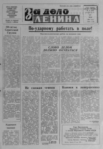 О Р Г А Н СЕВЕРНО ГО РАЙКОМА КПСС И РАЙОННОГО С О В Е ТА Н А Р О Д Н Ы Х Д Е П У Т А Т О В НОВОСИБИРСКОЙ О Б Л А С Т И Выхо дит по вторникам» четвергам и субботам. Пролетарии всех стран, соединяйтесь! I I i l l r / B V Газета основана 20 июля 1935 года № 63 (5191) С Р Е Д А 27 МАЯ 1981 года Цена 2 коп. ' 6 0-летие Советской Г рузии Ц е н т р а л ь н ы й К о м и т е т К о м м у н и с т и ч е с к о й партии С о в е т с к о г о С о ю з а , П р е з и д и у м В е р х о в н о г о С о в е т а С С С Р и С о в е т М и н и с т р о в С С С Р гор я- ч о и с е р д е ч н о п о з д р а в и л и р а б о ч и х , к о л х о з н и к о в , и н т е л л и г е н ц и ю , б о е в о й а в а н г а р д т р у д я щ и х с я Г р у з и и — к о м м у н и с т о в со з н а м е н а т е л ь н ы м со э ы т и е м — 60-л етием Г р у з и н с к о й С о в е т с к о й С о ц и а л и с т и ч е с к о й Р е с п у б л и к и и К о м м у н и с т и ч е с к о й п артии Г р у з и и . П о д и с п ы т а н н ы м р у к о в о д с т в о м К о м м у н и с т и ч е с к о й п а р тии С о в е т с к о г о С о ю з а , г о в о р и т с я в п р и в е т с т в и и , т р у д я щ и е с я Г р у з и н с к о й С С Р в б р а т с к о й д р у ж б е с в е л и к и м р у с с к и м н а р о д о м , с о в с е м и н а р о д а м и н а ш е й с т р а н ы за и с т е к ш и е ш е с т ь д е с я т л е т д о б и л и с ь з а м е ч а т е л ь н ы х р е з у л ь т а то в в х о з я й с т в е н н о м и к у л ь т у р н о м с т р о и т е л ь с т в е . В п р и в е т с т в и и в ы р а ж е н а т в е р д а я у в е р е н н о с т ь в т о м , ч то к о м м у н и с т ы , в с е т р у д я щ и е с я Г р у з и и , в е р н ы е с л а в н ы м р е в о л ю ц и о н н ы м , т р у д о в ы м и и н т е р н а ц и о н а л ь н ы м т р а д и ц и я м , п р е т в о р я я в ж и з н ь п о л о ж е н и я и з а д а ч и , и з л о ж е н н ы е в д о к л а д е т о в а р и щ а Л. И. Б р е ж н е в а на X X V I с ъ е з д е п ар ти и , р е ш е н и я х с ъ е з д а , д о б ь ю т с я н о в ы х в ы д а ю щ и х с я у с п е х о в в р а з в и т и и н а р о д н о г о х о з я й с т в а , к у л ь т у р ы и д а л ь н е й ш е м п о в ы ш е н и и б л а г о с о с т о я н и я т р у д я щ и х с я , б у д у т в с е м е р н о к р е п и т ь д р у ж б у и б р а т с т в о н а р о д о в н а ш е й с т р а н ы , е д и н с т в о и с п л о ч е н н о с т ь в о к р у г К о м м у н и с т и ч е с к о й п а р т и и С о в е т с к о г о С о ю за . * * * 22 м а я в Т б и л и с и с о с т о я л о с ь т о р ж е с т в е н н о е з а с е д а ние Ц К К о м п а р т и и Г р у з и и и В е р х о в н о г о С о в е т а Г р у з и н с к о й С С Р , п о с в я щ е н н о е 60 -л етию Г р у з и н с к о й С С Р и К о м м у н и с т и ч е с к о й п а р т и и Г р у з и и . З а с е д а н и е о т к р ы л к а н д и д а т в ч л е н ы П о л и т б ю р о Ц К К П С С , п е р в ы й с е к р е т а р ь Ц К К о м п а р т и и Г р у з и и Э . А . Ш е в а р д н а д з е . На т о р ж е с т в е н н о м з а с е д а нии в ы с т у п и л Г е н е р а л ь н ы й с е к р е т а р ь Ц К К П С С , П р е д с е д а т е л ь П р е з и д и у м а В е р х о в н о го С о в е т а С С С Р Л. И. Б р е ж не в , в с т р е ч е н н ы й д о л г о не с м о л к а ю щ е й о в а ц и е й . Р е ч ь т о в а р и щ а Л , И. Б р е ж н е в а б ы л а в ы с л у ш а н а с о г р о м н ы м в н и м а н и е м и н е о д н о к р а т н о п р е р ы в а л а с ь б у р н ы м и , п р о д о л ж и т е л ь н ы м и а п л о д и с м е н т а м и . ( Т А С С ) У д а р н ы м и темпами О Р Е Н Б У Р Г . Н а ч е т в е р т о м м и л л и о н е г е к т а р о в п р о д о л ж а ю т с е в я р о в ы х к у л ь т у р х л е б о р о б ы О р е н б у р ж ь я . П о 80— 90 г е к т а р о в в д е н ь з а с е в а ю т з е р н о в ы м и а г р е г а т ы В. М а р а е в а и И. Г а в р и л о в а из С в е т л и н с к о г о р а й о н а . В ю ж н о й з о н е о б л а с т и в е д е т с я с е в п о з д н и х к у л ь т у р — п р о са, п о д с о л н е ч н и к а , к у к у р у з ы . По-ударному работать в поле! Массово-политич