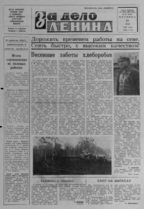 ОРГАН СЕВЕРНОГО РА Й КОМ А КПСС И РАЙОННОГО СОВЕТА НАРОДНЫХ Д ЕП У Т А ТО В НОВОСИБИРСКОЙ ОБЛАСТИ В ы х о д и т по в т о р н и к а м , ч етвергам и субботам. П роле тарии всех с тран , соединяйтесь! 1 1 мш-ш - у * 1 / А lJ Ш & Газета основана 20 ию ля 1935 го да № 64 (5192) П Я Т Н И Ц А 2 3 МАЯ 1981 года Цена 2 ко п . В райком е КПСС, р а й и сп олк ом е и райкоме пр оф с ою з а Итоги соревнования на полевых работах Д о р ож и т ь временем работы на севе. Сеять быстро, с высоким качеством! Весенние заботы хлеборобов П о м н е н и ю г л а в н о г о а г р о н о м а к о л х о з а « П а м я т ь Л е н и н а » В. М Ш р е й д е р а , с е в в х о з я й с т в е н ы н ч е н а ч а л и н е с к о л ь к о р а н ь ш е , ч е м п о д о ш л а д л я э т о го* з е м л я . Н о с д е л а н о э т о б ы - • л о с о з н а т е л ь н о , о б д у м а н н о . И в о в с е н е у г р о з а о т с т а з а н и я о т т е м п о в п о с е в н о й в р а й о н е б ы л а г л а в н о й т о м у п р и ч и н о й . Д е л о в о т в ч е м . С о д н о й с т о р о н ы , б о л е е п о з д н е е н а ч а л о р а б о т д а в а л о в о з м о ж н о с т ь п р а к т и ч е с к и п о л н о с т ь ю и з б а в и т ь с я о т с о р н я к о в , ч т о с а м о п о с е б е и м е е т о г р о м н о е з н а ч е н и е . (В х о з я й с т в е , к с т а т и , у ж е н а п р о т я ж е н и и р я д а л е т н е п о л ь з у ю т с я х и м и ч е с к и м и с р е д с т в а м и б о р ь б ы с с о р н я к а м и : п о л я б ы л и ч и с т ы м и и б е з т о г о ) . О д н а к о , т о о б с т о я т е л ь с т в о , ч т о в н ы н е ш н е м г о д у на т е р р и т о р и и х о з я й с т в а м н о г о в о д я н о й к р ы с ы , з а с т а в и л о п о с п е ш и т ь . Р а н ь ш е б у д е т з а к о н ч е н с е в , р а ш ь ш р „ Р о д в я т с я , в с х о д ы , и, е с т е с т в е н н о , р а н ь ш е н а б е р е т с и л у и в ы з р е е т к о л о с , м о ж н о б у д е т р а н ь ш е н а ч а т ь и х л е б о у б о р к у . О п ы т п р о ш л ы х л е т у б е ж д а е т , ч т о е с л и н е у б р а т ь в с е х л е б а к с е р е д и н е а в г у с т а — о с т а в ш и е с я б у д у т п о л н о с т ь ю у н и ч т о ж е н ы г р ы з у н а м и . Т а к и м о б р а з о м , 1 2— 13 м а я м е х а н и з а т о р ы к о л х о з а у ж е е д е л а л и п р о б н ы е в ы е з д ы , В к а ж д о й и з т р е х б р и г а д — З а б о е в с к о й , А л е к с е е в с к о й и В е р х - К р а с н о я р с к о й к с е в у п р и с т у п и л и м е х а н и з и р о в а н н ы е о т р я д ы , в о з г л а в и л и к о т о р ы е И. Е. З ы р я н о в , А . А Б е н н е р и Н. А . Л и т в я - к о в . В с е — к о м м у н и с т ы . С п е р в ы х д н е й д е л о п о ш л о р и т м и ч н о , б е з с п е ш к и и а в р а л о в . Д л я э т о г о б ы л и в с е у с л о в и я . П о ч в а п о д р а б о т а н а п р е к р а с н о , чт,э с п о с о б с т в у е т в ы с о к о п р о и з в о д и т е л ь н о й р а б о т е а г р е г а т о в , к а ч е с т в е н н о й з а д е л к е с е м я н . Т е х н и ч е с к о е о б с л у ж и в а н и е т а к ж е б ы л о п о с т а в л е н о на д о л ж н ы й у р о в е н ь . О т в е т с т в е н н о с т ь з а е г о к а ч е с т в о н е с л и М . А . Ш р е й д е р в В е р х - К р а с н о я р к е и И И. К о в я з и н в З а б о е в к е . П р и н е о б х о д и м о с т и к а г р е г а т а м на п о л е в л ю б о й м о м е н т в ы е з ж а л и с ш о ф е р о м С . Ш а т о х и н ы м м е х а н и к Г. И. К а й г о р о д о в и г а з о э л е к т р о с в а р щ и к В. П а х о м о в В п е р и о д с е в а д л я п о л е в о д о в б ы л о о р г а н и з о в а н о д в у х р а з о в о э г о р я ч е е п и т а н и е , к о т о р о е о б е с п е ч и в а л и д в а п о в а р а в А л е к с е е в к е и к о л л е к т и в с т о л о в о й ц е н т р а л ь н о й у с а д ь б ы . Н а в ы с о к о м , у р о в н е в е л а с ь п а р т и й н о - п о л и т и ч е с к а я и о р г а н и з а ц и о н н о - м а с с о в а я р а б о т а . П е р е д н а ч а л о м в е с е н н е - п о л е в о й к а м д д н и и ^