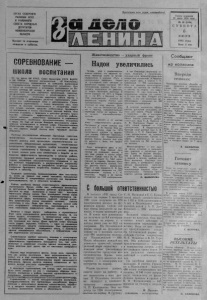 trrgr: ОРГАН С Е В Е Р Н О Г О РАЙКОМА КПСС И РАЙОННОГО С О В Е Т А Н АРОДНЫХ Д Е П У Т А Т О В НОВОСИБИРСКОЙ ОБЛАСТИ Вы ходи т по вторнинам. четвергам и субботам. Пролетарии всех стран , соеди няйтесь! А * 7 / 1 Газета основана 20 июля 1935 г ода N5 68 (5196) С У Б Б О Т А 6 и ю н я 1981 года Цена 2 коп. СОРЕВНОВАНИЕ — школа воспитания и ц к T B n i « r L HO ЦК К П С С ' СовеТ МинистР ° в С С С Р , ВЦСПС ЦК ьЛКСМ приняли постановление «О Всесоюзном социалистическом соревновании за ус пешное выполнение и перевыполнение задании одиннадцатой пятилетки». Оно otr.ouano на положениях и установках, вытекающих из Отч е т н о г о доклада ЦК съезду, и явится долгосрочной п ро г раммой действии для партийных организаций, советских профсоюзных, комсомольских и хозяйственных о р г а н е / / п о ави*епьст вя НИИ отчетливо выражена забота партии и прави ельства о дальнейшем развитии соревнования, повы- “ мобилизующей силы и действенности. Социа- / ' w с о Р евнС5вание — ж и в о й творчество масс, осно ‘ с а . высок° и сознательности и инициативы совет- могучое «Родство мобилизации трудящихся .р .в орение в жизнь намеченных партией планов Оно вод гГв Т Т ВСпТ ВаТЬ И ПриВОДИТЬ с действие резервы произ ’ ПОйышать эффективность и качество работы с л у ж и 1 методом вовлечения трудящихся в управление i(Pm v B v A HS° « ' воспитания коммунистическ ого отношения 'РУД/. о еще не всегда большие возможности сорево 1яз1\е л ь с т в Т п о Г ТеЯ “ П0ЛНСЙ м е р е - Социалистические 1 и м РОЮ кЗ ут не СНИзу' а «спускаются» свертельности УЩер6 Самому духу т РУДовой состязаПоэтому постановление обязывает партийные, советские, профсоюзные, комсомольские и хозяйственные органы поднять уровень всей организации социалистического с о ревнования. Общ ественные организации, хозяйственные руководители призваны уделять о соб о е внимание развер тыванию соревнования в бригадах, на участках, фермах, в цехах; усилить роль этих коллективов в б ор ьбе за повышение эффективности производс тва и качества работы, укрепление трудовой дисциплины, сокращение текучести кадров, воспитание коммунистического отношения к тру ду; всячески поддерживать и ра спространять инициативы рабочих и колхозников по ра зраб о тк е встречных планов внедрению бри гадного хозрасчета , лицевых счетов б ео еж ливости и качества. — к Трудовые коллективы, проанализировав свои возможное ти, взяли на первый год новой пятилетки повышенные обязательс тва. С инициативами выступили как передовики промышленности, так и с ельс ко го хозяйства. Сей час особенно велика ответс твенность организаторов соревнования. Важно, чтобы они, мобилизуй коллективы на достижение более высоких рубежей производс тва не упускали из виду воспитание в людях черт, присущих советскому образу жизни. При подведении итогов еорев ксаания наряду с показателями, характеризующими э ф фективность труда, выполнение заданий, следу ет учитывать нравственную линию поведения человека, мнение коллектива о нем. Лишь при таком подходе можно избе жать нездоро во го соперничества, порождающего кое у кого с тремление выдвинуться любыми способами. Почетно и гордо звучит: победитель в соревновании! Этой чести удостаиваются действительно лучшие, те , кто своим трудом , отношением к гражданскому долгу показывают пример остальным. Человеку дор о го общ ественное признание его заслуг. Д аж е простое слово благодар н