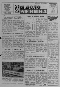 Пролетарий всех стран, соединяйтесь! Газета основана 20 июля 1935 года и ю н я 1981 года Цена 2 коп. ОР ГАН С Е В Е Р Н О Г О Р А Й К О М А КПСС И РАЙОННОГО СО В Е Т А Н А Р О Д Н Ы Х Д Е П У Т А Т О В Н ОВОСИБИРСКО Й ОБЛАСТИ Выходи т по вторникам, четвергам и субботам. Вести из к о л х о з а „Наша Р о д и н а “ ПОЛЕВЫЕ РАБОТЫ Н е б л а г о п р и я т н ы е п о г о д н ы е у с л о в и я , ч а с т ы е и о б и л ь н ы е д о ж д и во м н о г о м о с л о ж н и л и р а б о ты на п о л я х . В и д и м о , э т о я в и л о с ь о с н о в н о й п р и ч и н о й т о г о , ч т о к в с п а ш к е п а р о в в х о з я й с т в е п р и с т у п и л и т о л ь к о ч е т ы р е д н я н а з а д . З е м л и п о д п а р ы о т в е д е н ы в Н о в о - Н и к о л ь с к о й | б р и г а д е . З д е с ь н у ж н о п о д н я т ь 5 6 0 г е к т а р о в . Р а б о т у э т у на т р а к т о р а х Д Т - 7 5 в ы п о л н я ю т о п ы т н ы е м е х а н и з а т о р ы Р у с л а н А к и м о в и ч У ш а к о в и И в а н А к - с а н о в . В н а с т о я щ е е в р е м я в к о л х о з е з а к а н ч и в а е т с я п о с е в к у к у р у з ы . П о д э т у к у л ь т у р у п р е д п о л а г а л о с ь з а н я т ь 150 г е к т а р о в п а ш - Подготовка Д л я у с п е ш н о г о п р о в е д е н и я э т о й о т в е т с т в е н н о й с е л ь с к о х о з я й с т в е н н о й - к а м п а н и и п р а в л е н и е м к о л х о з а р а з р а б о т а н р а б о чий п л а н , в к л ю ч а ю щ и й в с е о с н о в н ы е м е р о п р и я т и я по п о д г о - ^ > в к е к с е н о к о с у : р е м о н т т е х н и к и , к у л ь т у р н о е и б ы т о в о е о б с л у ж и в а н и е л ю д е й , р а б о т а ю щ и х на л у г а х ; у с л о в и я с о ц и а л и с т и ч е с к о г о с о р е в н о в а н и я ; к о м п л е к т о в а н и е з в е н ь е в и т . д . На з а г о т о в к е с е н а б у д у т р а б о т а т ь д в а з в е н а по д е в я т ь ч е л о в е к . В п е р в о й ' б р и г а д е з в е н ь е в ы м у т в е р ж д е н ч л е н п о а в л е - н и я , к о м м у н и с т М и х а и л П а р а м о н о в и ч Б а й д а г у л о в . Э т о о ч е н ь о т в е т с т в е н н ы й и т р е б о в а т е л ь н ы й ч е л о в е к по о т н о ш е н и ю к р а б о - ни , но у ч и т ы в а я т о , ч т о о н а я в л я е т с я п и т а т е л ь н ы м к о р м о м д л я ж и в о т н ы х и на о т в е д е н н ы х у ч а с т к а х д а е т х о р о ш и й у р о ж а й , п л а н е е п о с е в а у в е л и ч и л и . На с е г о д н я ш н и й д е н ь с е м е н а к у к у р у з ы л е г л и на 190 г е к т а р а х . С о т в е т с т в е н н о с т ь ю к д е л у на э т о м у ч а с т к е о т н о с я т с я с т а р е й ш и е м е х а н и з а т о р ы Д . А . Л у - ш о в и Е . М . Д и л ь и з Б о л ь ш и х К у л и к о в , В. П у ч к о в — и з Н о в о - Н и к о л ь с к а . В б л и ж а й ш и е д н и н а м е ч а е т с я б о р о н о в а н и е п о с е вов с ц е л ь ю п р о р е ж и в а н и я , р ы х л е н и я п о ч в ы и о б р а б о т к и о т с о р н я к о в . М. ГО РЛОВ, а г р о н о м . к сенокосу т е . М о ж н о не с о м н е в а т ь с я , что в е г о з в е н е в с е г д а б у д у т с т р о ги й у ч е т и н а д л е ж а щ и й п о р я д о к . Н а с е г о д н я ш н и й д е н ь в к о л х о з е с о д е р ж и т с я 19 00 г о л о в к р у п н о р о г а т о г о с к о т а . З а д а ч а к а ж д о г о ж и т е л я с е л а — п о м о ч ь к о л х о з у о б е с п е ч и т ь ж и в о т н ы х к о р м а м и , г д е н а к а ж д у ю у с л о в н у ю г о л о в у п р е д п о л а г а е т с я з а г о т о в и т ь по 2 1 ,5 ц е н т н е р а к о р м о в ы х е д и н и ц . С е на по п л а н у н у ж н о з а г о т о в и т ь 10900 ц е н т н е р о в . П о д с п о р ь е м в в ы п о л н е н и и п л а н а п о с л у ж а т с е я н ы е м н о г о л е т н и е т р а в ы на п л о щ а д и 90 г е к т а р о в , г д е о ж и д а е т с я х о р о ш и й у р о ж а й . Г. ПЕТРОВА. Н О В О С Т Р О Й К И К о л х о з « Н а ш а Р о д и н а » — с а м о е м о л о д о е х о з я й с т в о в н а ш е м р а й о н е . П о э т о м у о д н а из о с н о в 