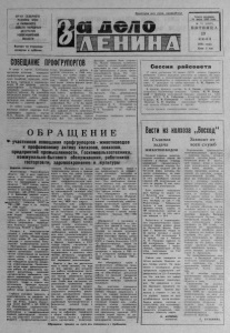 Пролетарии всех стран , соединяйтесь! Газе та о снована 20 июля 1935 г ода Ш 73 ( 5 1 0 2 ) П Я Т Н И Ц А 1981 г о д а Цена 2 коп ОР ГА Н С Е В Е Р Н О Г О Р А Й К О М А КПСС И РАЙОННОГО С О В Е Т А Н А Р О Д Н Ы Х Д Е П У Т А Т О В Н ОВОСИ БИ РСКО Й ОБЛАСТИ Выходи т по вторникам- четвергам и субботам. СОВЩЕАНЕИ ПРОФГРУПОРГОВ факторы д о лж ны быть у с т р а н е ны. Н у ж н о повысить количество и качество с ельскохозяйственной r „„„„„ „ „„„„„„ v • - „ продукции за счет интенснфнкаР Р Д Куйбышеве нутых тр удящимися района в цНИ п рои зводств а и роста пронзсостоялось кустовое совещ ание д е ся т ой пятилетке, в 1980 г о д у , подительности т р у д а . Это воз - профгрупоргов работников сель- Отметил, что сейчас перед ж н . м ожн о только б л а г о д а р я широского хозяйст ва культуоы с л у ж- в отнов одами района стоя т боль- кому ра з м а х у действенного со - 1 ' У ? . У шне за д а ч и . И в выполнении ц Иалистического соревнования бы быта торговли и з д р а в о о х р а - этих з а д а ч многое решают проф- Эт0 опять ж е поле деят ельности нения, в нем приняли участие союзные организации. профсою зо в представители К уйбыш евского ,_ На совещании выступил т а к ж е ‘ Северног о. Здви н ског о и Бара- Н. В. Л о б о в , секретарь о б л а е т - В прениях участвовали проф- бинского районов . На совещании кого совета п рофсою зов . Он групорги. Они о бм енивались о б с у ж д а л с я воп рос «Об усилении ск а за л , что в у с п е х а х , д о с ти г н у - 0nbjX0M ' делились у сп ехам и организаторской работы п р оф . тых рабочими и колхозниками ' К групоргов под девизом «Ж и вот , нашей области , большая засл уг а BCKP“ Ba™ недостатки. От имени н оводство - ударный фронт»! п рофсою зов Н о в то ж е время профгрупоргов нашего района От имени хозя ев н аряду с достиж ениями имеется с т у п и л и В. Е_ Капориков из От имени хозя ев совещания ^ У недостатков. в н е к о т о « олхгозат f ° Р ьба За “ Т " выступил первый секретарь К уй- рых районах области за т я г и в а е т -JJ. Г- . Тимофеев из «Заветов бышевсКого горкома партии ся откорм скота , высок п р оц ен т11льича>>' ■Н . К. Апарин, Он д о л о ж и л при- п а д е ж а ск ота , яловость, плохие Участники совещания приняли: сутствующим о б у с п е х а х , д о сти г -ко р м а . Вс е эти отрицательные обращение. О Б Р А Щ Е Н И Е ^ уча стни ков совещания профгрупоргов - ж ивотноводов к профсоюзному активу колхозов , совхозов, предприятий промышленности, Г о с к о м с е л ь х о з т е х н и к и , к о м м у н а л ь н о -б ы т о в о г о о бслуж ивани я , работников госторговли, Дорогие товарищи! Ж и во тн о во д ы Н о в о с и б и р с к о й , области, как и весь советский народ, с о гр ом ным в оодуш ев лением ведут со зидате льную ра боту по претворению в ж и з н ь решений . X X V I съезда партии, п ол ож ений и в ы во д о в , и з л о женных в докладе Г е н ер аль н о го секретаря Ц К К П С С товарища Л. И. Брежнева , решают задачи, поставленные в «Осн о вны х направле ниях экономического и со- д ^ и а л ь н о г о развития СССР на 1981— 1985 годы и на период до 1990 года». План пе рвого квартала 19811 года по продаже государству всех видов животноводческой пр одукц ии перевыпол нен . По итогам работы за этот период область награждена п ер ех о д ящим Красным знаменем Совета Министров Р С Ф С Р и В ЦС ПС . С е го дн я в жив отноводстве создано и работает 1674 профсоюзные группы , об ъ е д и н я ю щ и е в своих рядах 49 тыс. рабочих совхо зов и к о л х о з н и к о в . Б о л ь шинство п р оф гр у п ор гов вместе с брига 