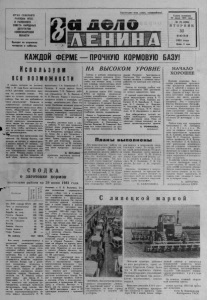 ОРГАН СЕВЕРНОГО Р А й Н О М А КПСС И РАЙОННОГО СОВЕТА НАРОДНЫХ ДЕПУТАТОВ НОВОСИБИРСКОЙ ОБЛАСТИ Выходит по вторникам, четвергам и субботам. Г а з е т а о с н о в а н а 20 и ю л я 1935 г о д а № 78 {5206) В Т О Р Н И К 30 и ю н я 1981 года Цена 2 коп. К А Ж Д О Й Ф Е РМ Е — ПРОЧНУЮ КОРМОВУЮ БАЗУ! Используем все воз можности В н а ш е м к о л х о з е на з и м о в к у 1980 — 81 г о д а б ы л о з а г о т о в л е н о по 1 6 ,2 ц е н т н е р а к о р м о в ы х е д и н и ц на у с л о в н у ю г о л о в у . Э то о д и н и з л у ч ш и х п о к а з а т е л е й п о р а й о н у . К а к ж е м ы д о б и в а е м с я т а к и х р е з у л ь т а т о в ? К о н е ч н о , в с о в р е м е н н ы х у с л о в и я х р а з в и т и я ж и в о т н о в о д с т в а н е м ы с л и м о о б е с п е ч и т ь о б щ е с т в е н н о е с т а д о ч и с л е н н о с т ь ю 3315 г о л о в к о р м а м и , к о т о р ы е з а г о т а в л и в а л и с ь б ы в р у ч н у ю . На л у г а п р и ш л а м е х а н и з а ц и я , ч т о в о г р о м н о й с т е п е н и п о з в о л я е т у в е л и ч и т ь п р о и з в о д и т е л ь н о с т ь т р у д а . Н о в с е - т а к и м ы и с п о л ь з у е м л ю б у ю в о з м о ж н о с т ь д л я т о г о , ч т о б ы з а г о т о в и т ь к о р м о в на у с л о в н у ю г о л о в у не м е н ь ше п р о ш л о г о д н е г о . '"■'с. к о л х о з е б ы л о р г а н и з о в а н вое к р е с н и к . На Ч и с т о е б о л о т о , г д е р а н ь ш е не к о с и л и , в п е р в ы й д е н ь с к о с а м и в ы ш л и 65 ч е л о в е к , во в т о р о й — 38. На п р и з ы в ж и в о т н о в о д о в п о м о ч ь в з а г о т о в к е к о р м о в о т к л и к н у л и с ь м н о г и е ж и т е ли се л а . Р а н н и м у т р о м к к о н т о р е к о л х о з а , г д е б ы л н а з н а ч е н о б щ и й с б о р , п р и ш л и п е н с и о н е р ы - ф р о н т о в и к и Т. А . Б о р о в с к и й П. Л. П о т а п о в . В ч и с л е п е р в ы х б ы л и п е н с и о н е р к а Т. В. П а д а л к о , р а б о ч и е с п е ц ш к о л ы М . А . В и ш н я к и Н. Я. Л е с н ы х . Р я д о м с о п ы т н ы м и к о с а р я м и в с тал и и м о л о д ы е , нап р и м е р , д е в я т и к л а с с н и к Л е н я О с т а н и н . Н а и б о л е е а к т и в н о е у ч а с т и е в в о с к р е с н и к е п р и н я л и т р у д я щ и е с я с п е ц ш к о л ы , т о р г о в о г о п р е д п р и я т и я , и н ж е н е р н о - т е х н и ч е с к а я с л у ж б а к о л х о з а . В м а с т е р с к о й о с т а л и с ь т о л ь к о с в а р щ и к и д е ж у р н ы й . А в т о б у с д о с т а в и л в с е х к м е с т у р а б о т ы . И в о т у ж е п о я в и л и с ь п е р в ы е р я д ы с к о ш е н н о й т р а в ы . Х в а т а л о д е л а С. Г. Б у з ю р г и н у и В. Н. К о н д а к о в у , к о т о р ы е о т б и в а л и к о с ы . Д а и все т р у д и л и с ь с б о л ь ш и м э н т у з и а з м о м , с ж е л а н и е м . Т р а вы з д е с ь н е п л о х и е , и за д в а д н я у ч а с т н и к и в о с к р е с н и к а с к о с и л и их на 30 г е к т а р а х . Ч е р е з н е с к о л ь к о д н е й в ы с у ш е н н о е с е н о п р е д с т о и т з а с к и р д о вать. Н. О СТАНИН , с е к р е т а р ь п а р т к о м а к о л х о з а « П у т ь к к о м м у н и з м у » . С В О Д К А о заготовке кормов к о л х о з а ми района на Колхозы С к о ш е н о т р а в ( г а ) S ? | 3 •2 о о х 0 3 О ) 00 <-> им. X X I I с ъ е з д а К П С С 284 4367 П у ть к к о м м у н и з м у 350 3940 им . К. М а р к с а 261 2996 Б о р ь б а за м и р 115 2000 П а м я т ь Л е н и н а 200 1700 V I I с ъ е з д С о в е т о в 136 1395 им . М , Г о р ь к о г о 60 990 В о с х о д 35 750 З а в е т ы И л ь и ч а 40 80 Н о ва я ж и з н ь 80 _ Н аш а Р о д и н а 80 — По р а й о н у 1641 18218 Все ш и р е р а з в о р а ч и в а е т с я а х о з я й с т в а х с е н о к о с н а я с т р а д а . Во в с е х к о л х о з а х п р о д у м а н а ч е т к а я о р г а н и з а ц и я т р у д а , с п л а н и р о в а н а р а б о т а з в е н ь е в , р у к о в о д я т к о т о р ы м и о п ы т н ы е м е х а н и з а т о р ы . К а к и в л ю б о й д р у г о й к а м п а н и и , на л у г а 