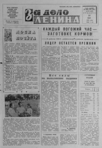 П р о л е т а р и и всех стран, с о е д и н я й т е с ь ! ОРГАН СЕВЕРНОГО РАЙКОМА КПСС И РАЙОННОГО СОВЕТА НАРОДНЫХ ДЕПУТАТОВ НОВОСИБИРСКОЙ ОБЛАСТИ Выходит по вторникам, четвергам и субботам. т а в л i l H / I V Га зета о с н о в а н а 20 и ю ля 1935 £ о д а _ № 89 (52171 С У Б Б О Т А 25 июля 1981 г о д а Цена 2 коп. Бюро Северного райкома партии, исполком районного Совета народных депутатов, президиум райкома профсоюза работников сельского хозяйства подвели итоги рабо- ■ты доярок, скотников дойных и откормочных гуртов и телятниц за шесть месяцев 1 98 1 года и признали победителями в социалистическом соревновании: Усову Е. Я. — доярку колхоза имени XXII съезда КПС , надоившую по 1 6 5 0 килограммов молока на фуражную корову; Ковган П. М. — доярку колхоза «Путь к коммунизму», надоившую по 1647 килограммов молока от коровы; Капорикову М. П. — доярку колхоза «VII съезд Советов», надоившую по 1 63 9 килограммов молока от коровы; Щербакову А. Р. — доярку колхоза «Память Ленина», надоившую от фуражной коровы по 1 6 1 3 килограммов молока; Асанову М, Ф. — доярку колхоза «Путь к коммунизму», надоившую по 1 57 6 килограммов молока от коровы; Ковган М. Е. — доярку колхоза «Путь к коммунизму::,, надоившую ■по 2 5 2 3 килограмма молока на первотелку; Иванову А. А. — доярку этого же колхоза, получившую по 2 4 9 6 килограммов молока на первотелку; Лаврову А. Е. — доярку этого же колхоза, надоившую на первотелку по 2 3 5 3 килограмма молока; Ложкина Е. В., Скасырского С. П. — скотников дойного гурта колхоза имени XXII съезда КПСС, обеспечивших надой молока по 1 4 6 4 килограмма от каждой закрепленной за ними коровы; Степанову Г. В. — телятницу колхоза «Путь к коммунизму», получившую среднесуточный привес молодняка с начала года по 9 5 0 граммов на голову; Нескорову А. Е. — телятницу колхоза «Память Ленина», получившую среднесуточный привес молодняка с начала года по 8 6 2 грамма на голову. ш ★ ★ ★ _______ и В и н н и ц к а я область . К а ж д ы й г е к т а р п а с т б и щ а в к о л х о з е и м е н и Ч а п а е в а В и н н и ц к о г о р а й о н а о б е с п е ч и т г о д о в о е п р о и з в о д с т в о 7 0 ц е н т н е р о в м о л о к а и 5 ц е н т н е р о в м я с а . К о л х о з я в л я е т с я о п о р н ы м х о з я й с т в о м У к р а и н с к о г о Н И И к о р м о в . З д е с ь с о з д а н о и н т е н с и в н о е к у л ь т у р н о е п а с т б и щ е , к о т о р о е с т а л о г л а в н о й к о р м о в о й б а з о й к р у п н е й ш е г о в о б л а с т и м о л о ч н о г о к о м п л е к с а . Н о в а я т е х н о л о г и я , р а з р а б о т а н н а я в Н И И , о б е с п е ч и в а е т п о л у ч е н и е п о ч т и с т а ц е н т н е р о в к о р м о в ы х е д и н и ц с к а ж д о г о г е к т а р а . В о с н о в е а г р о т е х н и к и , п о в ы ш а ю щ е й и н т е н с и в н о с т ь к у л ь т у р н о г о п а с т б и щ а , — с б а л а н с и р о в а н н ы й п о д б о р т р а в в з а в и с и м о с т и о т их п и т а т е л ь н ы х к а ч е с т в , д о з и р о в к а а з о т н ы х у д о б р е н и й , о п т и м а л ь н ы й р е ж и м о р о ш е н и я . З а п е р в ы й у к о с с к а ж д о г о и з 4 0 0 г е к т а р о в с н я т о п о 2 0 0 ц е н т н е р о в з е л е н о й м а с с ы , к о т о р а я п о ш л а н а п р и г о т о в л е н и е с е н а ж а , с и л о с а и в и т а м и н н о й м у к и . Д о к о н ц а с е з о н а б у д е т п р о в е д е н о е щ е т р и к о с о в и ц ы . У р о ж а й о б е с п е ч и т з а к л а д к у н а з и м у д л я к а ж д о й к о р о в ы ч е т ы р е х т о н н с о ч н ы х и т р е х ц е н т н е р о в с у х и х к о р м о в . Н а о с н о в е о п ы т а к о л х о з а и м е н и Ч а п а е в а и н т е н с и в н ы е п а с т б и щ а с о з д а ю т с я в о м н о г и 