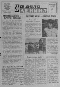 ОРГАН С Е В Е Р Н О ГО РАЙКОМА КПСС И РАЙОННОГО С О ВЕТА НАРОД НЫХ Д ЕП У ТА Т О В НОВОСИБИРСКОЙ ОБЛАСТИ Выходит по вторникам, четвергам и субботам. jsgsm Газета основана 20 июля 1935 года № 90 15218) С Р Е Д А 2 9 июля 1981 г о д а Цена 2 коп. ЖИВОТНОВОДСТВУ - СЫТНУЮ ЗИМОВКУ Колхоз имени Максима Горького вновь стал победителем в соревновании хозяйств на заготовке кормов. Этого он достиг благодаря четкой организации рабрт на всех участках сенозаготовок. Сейчас там запасено по три с половиной центнера кормовых единиц на условную голову. Соревнование возглавляет звено Николая Обухова, которое успешно справилось с планом, заскирдовав более шести тысяч центнеров сена. Механизаторы колхоза — передовики намерены в этом году обеспечить сытную зимовку общественного скота, добиться значительного увеличения продуктивности как дойного стада, так и молодняка, находящегося на откорме. Прошедшее недавно совещание руководителей колхозов, предприятий, организаций и учреждений районного центра, специалистов сельского хозяйства, партийных и советских работников показало, что соревнование на лугах приняло широкий размах, что каждое хозяйство намерено обеспечить качественными кормами и в достаточном количестве колхозное стадо. Правда, вторая декада июля была дождливой, а поэтому менее продуктивной. Если, например, за первую десятидневку район заскирдовал более 55 тысяч центнеров сена, перевыполнив задание по сенозаготовкам, то на этот раз план оказался не выполненным. По там, где была лучше организация труда, там и прибавка оказалась заметнее. Сейчас уже колхозы «Наша Родина», «Память Ленина» близки к завершению плана по заготовке сена. По сытную зимовку и повышение продуктивности стада можно обеспечить только тогда, когда'в рационе животных будут разнообразные и хорошего качества корма. По данным лабораторных анализов сено, убранное в июле, по качеству в большинстве своем второго и третьего класса, но много и неклассного. Это, прежде всего, ржаная зеленка. И двух колхозах — в «Памяти Ленина» и «Пути к ком мунизму» — работают агрегаты по приготовлению витаминной травяной муки. Но, к сожалению, производительность их пока невелика. Нигде не закладывается сенаж., а этому необходимо уделять больше .внимания. Р> каждом колхозе есть угодья сеяных трав, которые могут быть скошены на корм cicorv. К. тому же необходимо использовать возможность второго укоса. Это также послужит укреплению кормовой базы : колхозах района. Прошедшие дожди и теплая погода способствовали интенсивному росту силосных культур. Недалек день, когда на кукурузные и подсолнечные плантации выйдут агрегаты. Кормозаготовительная кампания вступит в новую фазу. К ней надо готовиться основательно, чтобы в разгар уборки не подвела техника, чтобы траншеи были вычищены, отремонтированы, чтобы места для буртовки силоса были определены заранее и тщательно подготовлены. Заготовка кормов — ■дело сезонное. Но оно требует к себе повседневного и всеобщего внимания, так как от нее зависят результаты всего года. ПЛАНЫ ВЫПОЛНЕНЫ Н е п л о х о з а к о н ч и л о с ь п е р в о е п о л у г о д и е д л я к о л л е к т и в а х л е б о к о м б и н а т а . З а п р о ш е д ш е е в р е м я р е а л и з а ц и я п р о д у к ц и и п р е д п р и я т и я с о с т а в и л а 429,2 т ы с я ч и р у б л е й , или 105,5 п р о ц е н т а к п л а н о в о м у з а д а н и ю . О д н и м и з в а ж н е