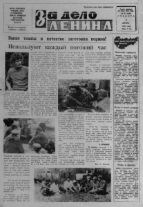 ОРГАН С Е В Е Р Н О Г О РАЙНОМА КПСС И РАЙОННОГО С О ВЕ ТА Н А Р О Д Н Ы Х Д ЕП У Т А Т О В НОВОСИБИРСКОЙ О Б Л А С Т И Выходит по вторникам, четвергам и субботам. П р о л е т а р и и В с е х с т р а н , с о е д и н я й т е с ь ! Газета основана 26 июля 4935 года М« 92 (52291 С У Б Б О Т А 1 А В Г У С Т А 1981 г о д а Цена 2 коя. Выше темпы и качество заготовки кормов! ' " --------- ------------------ т ---------------------------------I ------------------------------------ -------------------------------- . - . * ' • . [ Используют каждый погожий час Д ождь пошел в не за пно . Н е б о л ьш а я т у ч а заш л а над лугом, где-то г р о м ы х н у л гром, пр ед уп редил,ая механизаторов о том, что добрая погода к о н ч и л а с ь , и с неба п о т е к л а река . И н а ч е и не н а з о в е ш ь : белесая к о л ы ш у щ а я с я стена о б р у ш и л а с ь на в ы сохшие у ж е рядки. - Н у , вот и отр аб отали сь , с о к р у ш а л и с ь т р а к т о р и с т ы . А с о к р у ш а т ь с я было от че го . г,сетный, здесь опробованный и одобренный всем и . Е с л и , на п р и мер, в колхозе имени М. Г о р ь кого ко сарей вы д ели ли отдельным звеном, то здесь, в « В о с ходе» , они п р о с я т с я в звено , т а к к а к в едином к о л л е к т и в е и у них заработок в ы ш е будет, чем при « е д и н о л и ч н о й » работе. З в е н ь е в о й зн ак о м и т с к о л л е к тивом . В основном в нем молод еж ь . Сам зв ен ь е в о й работает на копнообразователе . Второй подобн ы й агрега т водит Але ксандр А ф ан а с ь е в . Сгребание сен а в е д ут Н и к о л а й Симаев и П а в е л Ан ти п ов . Сергей А ф а н а с ь е в с Е в г е н и е м Ш е р у к о в ы м т о л к а ю щими в о л о к у ш а м и п о д т я г и в аю т к о п н ы к м е с т у ски р до в ан и я . А Михаил К о т е л к и н и верш ил ь- ш и к и Владими р Ф у л а в к и н и Геннадий Т р и б ун а л о в з а к а н ч и в а ют в е с ь ц и к л с тогообразовапия . Поголовье кр упно го рогатого с к о т а в колхозе пост оян но рас тет , п о этом у и п л а н з а г о т о в к и кормов у в е л и ч и в а е т с я год от года. З в е н у В . И. П анов а , напри- мер, необходимо за г о т о в и т ь более д есяти т ы с я ч центнеров с е на. П о к а ж е по ст а вл ено в с к и р ды ч е т ы р е . В эти дни звено по ложен ие : м а л ы й тр авосто и , нев ы с о к и е сборы сена. Т а к что н у ж н о з а б о т и т ь с я и о с е н а ж е . Тем более, ч т о погода с т а л а н е у р а в н о в еш ен н о й , непостоянной. Дожди' все ч ащ е н а в е д ы в а ю т с я на ч е б а к о в с к и е угод ья , задерж и в а ю т з а г о т о в к у кормов. В колхозе посе яно н е с к о л ь к о сот -гектаров овса, к о т о ры й и везен обед, с е к р е т ар ь партбюро колхоза М. П. Т р и б ун а л о в провел кор о т к ую беседу, р а с с к а з а в о полож ении дел с заго товкой сена в х о з я й с т в е и районе. — Недавно у нас б ы ли фотографы, — напомнил тр а к т о р и с т а м парторг, — тепе рь пр и в е зли сни мки. Вот они. Б уд ем делать стенд. Н ы н е ш н и й тр а в ос то й на больш и н с т в е сенокосов о к а з а л с я н а много н и ж е прошлогоднего. Там, где тогда стояло сто цен тнеров, т еп е р ь — п я т ь д е с я т . Т р а в а ур о д ил ась редкой, н и з к о й . Сеноко с и л к и по с у т и дела « с ш и б а ю т в е р х у ш к и » , а при так о м ур о ж а е бо льшой вы р а б о т к и не д о бьеш ь ся. — Н у что эт о ? З а последнюю неделю т о л ь к о вос ем ь с от ц е н т н е ров п о с т а в и л и . По сотн е в день, — с обидой говори т з в е н ь е в о й В а л е р и й П ан о в . — Вед ь и з а р або тка нет . . . О за работке — это потому, что в колхозе « В о с х о д » п р и м е н я ю т о п л а т у труда по к о н е ч н о му р е з у л ь т а т у . Метод этот изф а к т и ч е с к и з а к а н ч и в а е т у б о р к у сена в Р а к и 