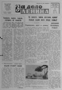 ОРГАН СЕВЕРНОГО РАЙКОМА КПСС И РАЙОННОГО СОВЕТА НАРОДНЫХ Д Е П У Т А Т О В НОВОСИБИРСКОЙ ОБЛАСТИ Выходит по вторника м, четвергам и субботам. Газета основана 20 июля 1935 года № 97 (522$) Г1 Я Т Н И Ц А 14 АВ ГУС ТА 1 0 8 1 г о д а Ц е н а 2 коп. Увеличить выпуск товаров, улучшить их качество Не снижать теинов заготовки кормов! Полным ходом вести уборку озимых! Центральный Ком итет КПСС и Совет Министров СССР приняли постановления «О мерах по увеличению прои з водства товаров первой необходимости в 1 9 8 1 — 1 9 8 5 годах и более полному удовлетворению спроса населения на эти товары» и «Об увеличении производства товаров массового спроса, повышении каче ства и ул у ч ш е н и и их ассортимента в 1 9 8 1 — 1 9 8 5 го д а х » . Р> целях обеспечения п р а к ти ч е с к о й реализации реш е н и й X X V I съезда К П СС о н е уклонном подъеме материального и к уль т у рн о г о уровня ж и з н и народа в пост ановлении «О мерах по увеличению производства товаров первой необходимости в 1 9 8 1 — 1 9 8 5 годах и более полному удовлетворению спроса населе- | 1ия на эти товары» предусмог * ен ком плекс мер по уско рению ра звития производства у к а занных товаров. Предусмот рено, в час тности , обеспечить строительство в городах и районных ц е н т р а х , имеющих свободные трудовые ресурсы, специализированных пред приятий малой мощности по в ы п у с к у ряда товаров. В пост ановлении «Об ув е личении производства товаров массового спроса, повышении каче ства и у л у ч ш е н и и их ассортимента в 1 9 8 1 — 1 9 8 5 годах» минист ерствам и ведомствам СССР и Советам Министров союзных республ и к установлены задания по п р о и з в о д с т в у ряда товаров культурно-бытового и х о зя й ственного назн ач е н ия . В по ст ановлении у каз аны дополнительные меры по повышению экономической з а интер есованности предприятий т я ж ел ой индустрии в м а к с и мальном использовании и м е ющихся производственных мощностей для дальнейшего увеличе ния выпус ка товаров культурно-бытового и х о зя й ственного н а з н а ч е н и я , у л у ч ш е н и я и х ассортимента и к а чес тва. Для осуществления н а м е ч енной программы по расш ир ению производства п р о мышленных товаров народного потребления предусмотрено значительное увеличе ние к а п и та л л ов л ож е н и й в 1 9 8 1 — 1 9 8 5 годах. Центральный Ком итет КПСС и Совет Министров СССР с ч и таю т, что расширение пр оизводства и ул у ч ш е н и е к а ч е с т ва товаров народного потребления приобретают в настоя щее время первостепенное з начени е в реализации р е ш е н и й X X V I съезда п а р т и и по подъему благосостояния советского народа и наиболее полному и всестороннему удовлетворению все возрас тающих запросов населения и требуе т от п а р т и йны х , сов ет ски х , хозяйственных и профсоюзных органов на всех уровнях п р и н я т и я ко н к р е т ны х мер для обеспечения выполнения заданий. ( Т А С С ) . Животноводство — ударный фронт НАДОИ СТАНУТ ВЫШЕ В колхозе «Восход» четыре дойных г у р т а . Есть здесь и специалисты хорошие, и коровы не самые х уд ш и е , а вот надои даже в ле т н и й п е риод дер жатс я на н изком уровне. Животноводы п олу чают ежедневно около 7 к и лограммов молока от ф у р а ж ной коровы: до сих пор с к а зываются последствия т р у д ной зим овки . К тому ж е на пастбища х не хватало воды, что, кон еч н о , в значительной ст епени влияет на п р о д у к тивность. * Чтобы исправить п оложение , с 1 0 а в гу с т а во всех дойны