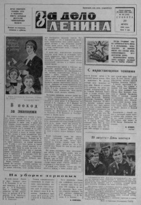 . -З 'глаУ /у ОРГАН СЕВЕРНОГО РАЙНОМА КПСС И РАЙОННОГО СОВЕТА НАРОДНЫХ ДЕПУТАТОВ НОВОСИБИРСКОЙ ОБЛАСТИ Выходит по вторникам, четвергам и субботам. П р о л е тар ии все х етран, с о е д ин я й тес ь ! Газета основана " 20 ию л я 1935 го д а N9 104 {3231 } С У Б Б О Т А 29 АВГУСТА 1981 г о д а Цена 2 коп. . Плакат художника В. Конюхова: Издатель- |во „Плакат 1'. Фотохро|Ги::а Г А С С В п о х о д за знаниями /О'нь первого сентяоря по отмечен в кален- даре красной кр а с ко й , тем не менее его хо чется п ис а т ь с за глав ной б уквы — к а к большой праздник . В самом деле, в какой день шце увидишь столько нар ядны х детей и взросл ы х , столько цветов, столько улы бок , столько торжественности , к а к 1 сентября! И не уд иви тельно: в этот день все ш к о л ь н и к и , ■все ету- донлы в ы с т у п а ю т в поход за новыми зн а н ия ми. Пять средних и девять во сьмилетних школ нашего района прим ут в этом учебном году почти две т ы с я ч и у ч а щ и х с я . В стр етим мы на ул и ц ах и маленького человека , первоклассни ка , важно шагающего на первый школьный урок. В р у к а х у него б укет цветов, за спиной — новенький ранец , полный к р а с и в ы х и за гадочных к н и г . Г л я д я на де тей, мы особо осознаем значение человеческих прав и г а р а н ти й , прочно у тв е р д и в ш и х с я в нашей д е й с тви те л ь ности и з а п и с а н н ы х в К о н с т и т у ц и и С С С Р . Переход ко всеобщему среднему образованию позволяет каждому свободно выбирать дорог у к желанной профессии. Первое сентября — подлинный праздник знаний. Е г о светлым волнениям поистине все возрас ты покорны. У порога ш колы встречаются разные поколения, остро ощущая неизбывную благодарность народному учителю . I I e p J вое сентября —- это и подчеркнутая деловит о с т ь . Торжественная часть дли тся коротко, а дальше в с т у п а е т в с и л у расписа ние з а н я т и й . Учебное время дорого: школа спеши т в ногу с нашим стремительным веком, с темпами повой п я т и л е т к и . В новом году педагогическим коллективам предстоит вести борьбу за реализацию требований , в ы д в и н у т ы х перед народным образова- ванием Х Х \ I съездом КП СС . Главное и з .н их — дальнейшее , совершенствование всей общеобразовательной си стемы , и в первую очередь средней школы . Комм унистиче ская п артия и Советское прави тельс тво проявляют огромную заботу о школе, которая развивается к а к общеобразовательн а я , тр удо вая , п о л и те хн и ч е с ка я . Отсюда и ее задачи — д ава ть учащим ся более глубокие зн а н и я , лучше в о с п и т ы в а т ь , прочнее прививать трудовые н а в ы к и . И здесь на первом месте стоит у ч и т е л ь . Он — цен тр альн ая фигура в школе, он формирует высокие нравственные к а ч е с тв а у ч а щего ся , прививает ему основы марксистско ленин ского мировоззрения, готови т к самостоятельной ж и з н и . И от того, насколько серьезно отнесе тся у ч и те л ь к своим обязанностям, часто зависи т дальнейшая судьба молодого человека. Постоянное повышение научного уровня преподавания, усовершенствование его .методики г лав н ая задача педагогов. Этим и руководс т в у ю т с я в своей работе Г . В . Мокроусова из Весе лой, У . П . Гридина и П. Т . И л ьи ны х из Северного, з асл уж ен ны е у ч и т е л я республики Е . П. П у т и н из Б и азы и А . П. Гламаздии из Остани нки , И. П. Миронов из Чебаков, И. Г. Слепцова из Ново-Троицка, Е . Д. Колмакова из Федоровки, Р . М. Ва си ль е в а из В е р х -К р а с ноярки и многие др у ги е . 1оворя об общенаро