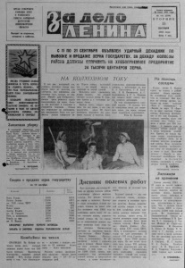 ОРГАН С Е В Е Р Н О Г О РАЙНОМА КПСС И РАЙОННОГО С О В Е Т А НАРОДНЫХ Д Е П У Т А Т О В НОВОСИБИРСКОЙ ОБЛАСТИ Выходит по вторникам, четвергам и субботам. Пролетарии всех стран, сое M W M ч » Газета основана 20 июля 1935 года № 111 (5239) В Т О P H и к 1 5 С Е Н Т Я Б Р Я 1981 года Ц е н а 2 коп. '/■к/ / к У / к / / к / / к У к / / к /Ук / /к /Ук З В Е З Д А ТРУДОВОЙ С Л А В Ы ^ЗАЖЖЕНА В Ч Е С Т Ь К 0 Л Х 0 - 2зА « П А М Я Т Ь Л Е Н И Н А » , В 2|тРИ Р А З А П Е Р Е В Ы П О Л Н И В Ш Е Г О ПЛАН СКИ РДО ВАНИ Я 2солмоы. I СОЗДАДИМ О Б Щ Е С Т В Е Н Н О М У Ж И ВО ТН О ВОД С ТВУ С Ы Т Н У Ю ЗИМОВ КУ , Н Е ОСТ А В И М В ПОЛЕ ни одноог ^ Ц Е Н Т Н Е Р А СОЛОМЫ, НЕ- & УЛОЖЕННОЙ В СКИРДЫ! ' + / У + / / + / / Ч / / Ч / / + У / + / / */ / З а к о н ч и л и у б о р к у В н ы н е ш н е й у б о р о ч н о й с т р а д е п р и н и м а е т у ч а с т и е С С П Т У - 2 1 . З д е с ь б ы л о з а с е я н о о в с о м и п ш е н и ц е й 238 г е к т а р о в . И в о т у р о ж а й с о б р а н . О к о л о 20 00 ц е н т н е р о в з е р н а п о л у ч и л и со с в о е г о у ч а с т к а к у р с а н т ы . П я т ь к о м б а й н о в в ы ш л и в п о л е : ч е т ы р е и з н и х в е л и о б м о л о т , о д и н у к л а д ы в а л х л е б в в а л к и . Н у ж но о т м е т и т ь , ч т о в т о р о к у р с н и к и , а и м е н н о - он и у ч а с т в о в а л и в ж а т в е , д о к а з а л и , ч т о и з н и х п о л у ч а т с я х о р о ш и е м е х а н и з а т о р ы . О с о б е н н о о т л и ч и л и с ь В. К а р по в , П . К л е щ е н к о , Ю . К у л и н и ч , Е . В о р о б ь е в , О . К р у г л и к о в и В и ш н я к о в . В. ЛЕТЕЦКИЙ, п р е п о д а в а т е л ь С С П Т У . С 11 ПО 21 СЕНТЯБРЯ ОБЪЯВЛЕН УДАРНЫЙ Д ЕКАДНИК ПО ВЫВОЗКЕ И П Р О Д АЖ Е ЗЕРНА ГО С УД А РС ТВ У . ЗА Д Е К А Д У КОЛХОЗЫ Р А Й О Н А Д О Л Ж Н Ы О Т П Р А В И Т Ь НА Х Л Е Б О П Р И Е М Н О Е П Р Е Д П Р И Я Т И Е 24 ТЫСЯЧИ Ц ЕН ТН ЕРО В З Е Р Н А . Н А К О Л Х О З Н О М В э т и дни колхозный т о к , с у ш и д к а , зерновые склады приобрели такое же значение для хлебороба, к а к пшеничное или ячменное поле, которое он убирает «Нивой» или «С иби р яком » : именно здесь решается судьба намолоченного им зерна. Отсюда оно п о с ту п а е т в кладовые и ст а но ви т ся семенами. Отсюда его отправляю т на хлебоприемное предприятие. Здесь ему х р а н и т ь с я долгую сибирскую з и м у . Короче говоря, колхо зный ток — это второй эшелон в сражении за новый урожай . П о л ьз уясь этим сравнением, можно с к а з а т ь , что «второй эшел он» колхо за имени М. Горького крепок и в состоянии вы и гр а т ь би тв у . Прежде вс его, следует отмет и т ь , что все зерно, а его уже намолочено около 2 0 т ы с я ч центнеров, н аходи тся под к р ы шами складов и навесов. Здесь Т О К У установлены зерноочистительные машины , а работающие на н и х В . А. К р ес тьяно ва , Г . Н. Б у г а ева, Е . Я . Никифорова, А . С . Ко лпащикова и Р . А . Уш ако ва (н а снимке ) ведут очисту зерна, по гр у зк у автомашин. На то к у поддерживается хороший порядок. В с к л а д а х ч е т ко определены места для семенного зерна, для зерна, которое будет вы д ав а т ься колхозникам . Фото Б . Королева. На помощь соседям Колхоз имени К . Маркса одним из первы х в районе закончил уборку зерновы х. Но комбайнеры этого х о з я й с тва не о тд ы х аю т . Они пришли на помощь др у ги м , работают на н о л я х колхозов « П у т ь к комм унизму» и «Борьба за мир» . В « Б о р ь бу за мир» вы е х ал и Спири доновы, Александр Артамоно- вич и его сын Владими р . С седьмого сентября вед ут они косо вицу овса. Сейчас у л о жено в в а л ки у ж е 2 5 6 г е к таров. С раннего у т р а до позднего 'вечера де ржат они в р у к а х ш т у р в а л ы комбайнов , Причем, не только в ы сокие темпы ха р 