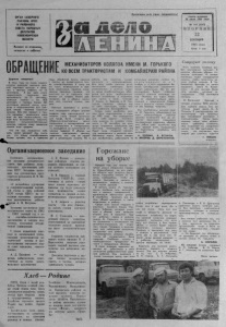 ОРГАН С Е В Е Р Н О Г О РАЙМОМА КПСС И РАЙОННОГО С О В Е Т А НАРОДНЫХ Д Е П У Т А Т О В НОВОСИБИРСКОЙ ОБЛАСТИ Вы х о ди т по вторникам, четвергам и субботам. Газета основана 20 июля 1935 г ода № 114 (5242) В Т О Р Н И К 22 С Е Н Т Я Б Р Я 1981 г о д а Ц е н а 2 к оп . ПБРАШПШГ М Е Х А Н И З А Т О Р О В к о л х о з а и м е н и М. ГО Р Ь КО ГО УОГМЩШ IIL КО В С Е М Т Р А К Т О Р И С Т А М И КО М БА Й Н Е РАМ РАЙОНА Д о р о г и е т о в а р и щ и ! В э т о м г о д у на п о л я х н а ш е г о к о л х о з а в ы р а щ е н х о р о ш и й у р о ж а й з е р н о в ы х к у л ь т у р : в с р е д н е м с г е к т а р а с о б р а л и по 16 ц е н т н е р о в . А в о т о в е с с о р т а « н а р ы м с к и й » , н а п р и м е р , д а л у р о ж а й н о с т ь по 21 ц е н т н е р у , п ш е н и ц а « с к а л а » — по 18 ,8 ц е н т н е р а с г е к т а р а . Б о л е е 260 ц е н т н е р о в з е л е н о й м а с с ы к у к у р у з ы и п о д с о л н е ч н и к а д а л к а ж д ы й г е к т а р п о с е в о в с и л о с н ы х к у л ь т у р , В с е э т о г о в о р и т о т о м , ч т о р е з е р в ы к о л х о з н о г о п о л я е щ е Не в с е и с п о л ь з о в а н ы , ч т о е щ е е с т ь в о з м о ж н о с т ь п о в ы с и т ь у р о ж а й с е л ь с к о х о з я й с т в е н н ы х к у л ь т у р , с д е л а т ь н а ш у с е в е р н у ю з е м л ю е щ е щ е д р е е . Ч т о ж е н а м п о з в о л и л о с о б р а т ь т а к о й у р о ж а й ? М ы с ч и т а е м , ч т о э т о м у с п о с о б с т в о в а л а б о л е е л у ч ш а я , ч е м в п р е ж н и е г о д ы , о б р а б о т к а п о ч в ы , н а ч и н а я с п а х о т ы д о в ы р а в н и в а н и я п о ч вы ш л е й ф - б о р о н о й . К т о м у ж е м ы с а м и , и м е ю щ и м и с я в к о л х о з е а г р е г а т а м и , п р о в е л и х и м и ч е с к у ю п р о п о л к у п о с е в о в , что о ч и с т и л о их о т с о р н я к о в , п о з в о л и л о им с о з р е т ь б о л е е р а в н о м е р н о . Д а и у б о р к а з е р н о в ы х ш л а н а м н о г о л у ч ш е , с к о р е е . В а ж н ы м ф а к т о р о м в у с п е ш н о м п р о в е д е н и и у б о р к и у р о ж а я п е р в о г о г о д а о д и н н а д ц а т о й п я т и л е т к и с т а л а ч е т к а я о р г а н и з а ц и я т р у д а . Б ы л о с о з д а н о д в а у б о р о ч н о - т р а н с п о р т н ы х з в е н а , п р о д у м а н ы и о с у щ е с т в л е н ы м е р ы м о р а л ь н о г о и м а т е р и а л ь н о г о п о о щ р е н и я з а в ы п о л н е н и е с е з о н н ы х з а д а н и й . К у б о р к е м ы х о р о ш о п о д г о т о в и л и т е х н и к у , н а д е я л и с ь , ч т о о н а н е п о д в е д е т в р е ш а ю щ у ю м и н у т у . Но в р а б о т е , к а к и з в е с т н о , м о ж е т с л у ч и т ь с я и н е п р е д в и д е н н о е , Д л я т о г о , ч т о б ы п р о с т о и и з - з а т е х н и ч е с к и х н е п о л а д о к б ы л и м и н и м а л ь н ы е , в к о л х о з е с о з д а ли з в е н о т е х о б с л у ж и в а н и я , о б е с п е ч и в е г о в с е м н е о б х о д и м ы м . ' Р е м о н т к о м б а й н о в , в о с н о в н о м , ш е л п р я м о в п о л е . С л е с а р и Н. У ш к о в , А . Я к о в л е в и В. Г р и г о р ь е в с т а р а л и с ь с д е л а т ь в с е о т с е б я з а в и с я щ е е , ч т о б ы т е х н и к а р а б о т а л а б е с п е р е б о й н о . Т е п е р ь н а ш и к о м б а й н ы д о л ж н ы б ы т ь п о д г о т о в л е н ы к с т р а д е 1982 г о д а . М ы о п р е д е л и л и д л я с е б я з а д а ч у : п о с т а в и т ь с в о и м а ш и н ы н а л и н е й к у г о т о в н о с т и к 29 с е н т я б р я , к о д н ю , к о г д а о т к р о е т с я с о в е щ а н и е р а б о т н и к о в п о л е в о д с т в а . Но э т о б у д е т л и ш ь п я т ь д е с я т п р о ц е н т о в и м е ю щ е г о с я в к о л х о з е к о м б а й н о в о г о п а р к а . Н а ш и т о в а р и щ и , к о м б а й н е р ы , р а б о т а в ш и е на о с т а л ь н ы х м а ш и н а х , г о т о в ы о т - р е м о н т и р о в а т ь их к 7 н о я б р я — к 64 -й - г о д о в щ и н е В е л и к о й О к т я б р ь с к о й с о ц и а л и с т и ч е с к о й 