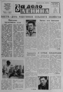 ОРГАН С Е В Е Р Н О Г О РАЙНОМА КПСС Ff РАЙОННОГО С О В Е Т А Н АРОДНЫХ Д Е П У Т А Т О В НОВОСИБИРСКОЙ ОБЛАСТИ В ы х о д и т по вторникам, четвергам и субботам. Пролетарии всех стран, соединяйтесь! i l C / I V Га зета основана 20 июля 1935 года № 122 ($250) С У Б Б О Т А 10 О К Т Я Б Р Я 1981 года Цена 2 коп. З А В Т Р А - Д Е Н Ь Р А Б О Т Н И К О В С Е Л Ь С К О Г О Х О З Я Й С Т В А Праздник тр уж ен и к о в села В осеннюю ок тябрьскую пору, когда завершаются основные сельско хозяйствен ные работы, страна ч е с тв у е т многомиллионную армию т р у ж е ников полей и ферм. В н ы нешнем году свой профессиональный праздник к о л хо зн и ки и работники совхозов вс тречают в обстановке в ы сокого политического и т р у дового подъема, вызванного историческими решениями X X V I съезда К П С С . Земле- дельбы и животноводы в день по-деловому оценивают итоги своего тр уда , анализируют д о с ти гн у ты е рез у л ь т а т ы , вскрываю т имеющиеся резервы, определяют новые рубежи. В р е з у л ь т а те последовательного претворения в жизнь современной аграрной политики п ар ти и , берущей начало с мартовского ( 1 9 6 5 г . ) Плену ма ЦК К П С С , удрепляется м а териально -техническая база сельского х о з я й с тв а , ко торая приобретает все более инд у стри альны й облик. Главными магистральными путями разви тия отрасли я в ляю тся специализация и концентрация на базе межхо зяй- * ? Ь е н н о й кооперации, ускор ение интенсификации и повышение эффективности производства- Особое внимание обращается на ул учшение и спользования земель, машин, удобрений, кормов, у с т р а н е ние потерь продукции. О с у щ е с тв л я е т с я комплек сн ая программа р азви тия сельского хо з я й с тв а Нечерноземной зоны Р С Ф С Р . Партия проводит большую работу по созданию экономич е ски х и социальны х у с л о ви й , способствующих у с п е ш ному развитию агропромышпен ного комплекса. Важным ш а гом по дальнейшему у л у ч ш е нию экономического м е хан изма в отрасли я в л я е т с я п о с та новление ЦК КПСС и Совета Министров СССР (ноябрь 1 9 8 0 г . ) «Об улучшении п л а нирования и экономического ст имулирования производства и заготовок с е л ь с к о х о з я й с т вен ны х продуктов»- Высо кой организованностью, ударной работой на всех у ч а с т к а х производства отвечают т р уж ен и ки села на з а боту партии и пр а в и т е л ь с т ва. С каждым днем шири тся социалистическое соревнование за наивысшую продуктив ность полей и ферм, за у с пешное выполнение планов и обязательств первого года п я т и л е т к и , повышение эф ф е ктивности и кач ества работы. В совхозе «Ч к а л о в с к и й » вблизи Свердловска го то ви т с я к п у с к у первая очередь животно-водческого комплекса. Рядом построены крупные башни для хранения сенажа и завод по переработке пи щ е в ы х отходов, который смож е т приго товля ть из них брикетированные и г р а н у л и рованные корма. Э ти корма б у д у т п о с т у п а т ь в совхоз « Ч к а л о в с к и й » и в другие х о з я й с т в а Свердловской обл а с т и . На сн им ке : прораб Л- И. Б у г у с ь , бригадир А . Я . Колетов и маши ни ст компрессора И. М. Ба кл ан о в на сооружении животноводческого компл е к с а . Фото А- Грахова Алек сандр Николаевич Сав- чиц — председатель передового в районе колхоза имени М. Горь кого. Хозяйство успешно сп равилось по многим показателям сельскохозяйственного производс т в а , признано победителем в социалистическом соревновании на за готовке кормов и уборк