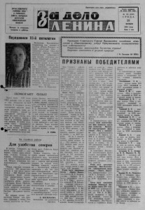ОРГАН СЕВЕРНОГО Р А Й КО М А КПСС И РАЙОННОГО СОВЕТА НАРОДНЫХ Д ЕП УТ А Т О В НОВОСИБИРСКОЙ ОБЛАСТИ Выходит по вторнинам, четвергам и субботам. П р о л е т а р и и в с е х c t p a n , с о е д и н я й т е с ь ! I B17/ I V ^ ■ Г Ш Г а з е т а о с н о в а н а 20 и ю л я 1 9 3 5 г о д а № 1 29 ( 5 2 5 7 ) С Р Е Д А 2 8 О К ТЯБ Р Я 1 9 8 1 г о д а Ц е н а 2 коп. Передовики X l -й пятилетки Валентина Кузьминична Старникова (на снимке) в к олхо зе «Наша Р о д и н а » че ловек известный. Она — передовая доярка Ново-Нн Кольской фермы, своими многолетним, д о б р о с о в е с т ным трудом снискала у в а ж ение товарищей по работе, руководителей хозяйства. Сейчас надои в ее группе, в которой тридцать коров, невелики, на уровне ср е дн ек о л х о зн о го п оказате ля. Д е л о в том, что половина животных в зап у ск е , но у ж е в ноябре п р е дп о л а га ется их растел. Валентина Кузьминична у вер ена , что своп с о ци а л и стические об я за т ел ь с т ва вы полнит с честью. Фото Б. Королева. П О М О Г А Е Т О П Ы Т Колхоз имени X X I I съезда li’ IK ( выполнил план не продаж е мяса государству на 8 5 , 9 процента. В оставшиеся месяцы животноводам предстоит на п ря жен н о потрудиться , чтобы достойно завершить первый год одиннадцатой пя ти лет ки - На ферме^ нет та кого у ч а с т к а , кот орый бы не являлся важным в борьбе за увеличение производства говядины. И прежде всего, основа у сп е ха закладывается там, где содержится молодняк до ^ше сти месяцев. В Г р а ж д а н - бригаде хозяйства на - ' • а д ответственном у ч а с т к е опре делены опытные, много лот выра щивакнцие телят , животноводы- В период перевода скота на стой • ловое содержание в г р у п п а х А. В. У с т ь я н ч и к , Л- К . Бараденковой, Н. I . Магерамовой содержится по 5 0 маленьких питомцев- Н а г р у з к а немалая, но телятницы со всей добросовестностью относятся к порученном у делу, поэтому привесы остаются стабильными: около 6 0 0 граммов в с у т к и прибавляет в весе к а ж дое животно е. Телята получают по два килограмма сена, один ки лограмм фуража и четыре — силоса. 0- УХОВА . На ст ройках района Для у д о б с т в а северян В центре Северного выросло новое зд а н и е — универмаг. Сейчас зд е с ь з а к о н чена отделка потолка чеканкой, покрашены стены, пол покрыт мраморной крош кой. Начата установка т е х нологического о б о р у д о в а ния. Общая торговая площадь состав л я ет 650 квадратных метров, в том числе выставочная — 530. Первый э т а ж универмага б у д е т полностью п редоставлен м ужчи нам. З д е с ь м ожно б у д е т приобрести обувь, о д е ж д у , галан терею , белье . 'Причем, у д о б н а я раскладка по р а з мерам позволит продавцам - консультантам и кассирам быстрее об сл уж и т ь посети теля. На втором э т а ж е р а з местятся товары д л я ж е н щин, сувениры и ткани. Уни вермаг рассчитан на 18 р а бочих мест. Ра б о т а т ь б у д у т д в е бригады . Н у ж н о отметить, что в новом зд а ни и значительно облегчится труд продавцов Удобные подсобные помещ е ния с лифтом для подъема товаров на второй э т а ж , бытовые комнаты, о т д е л ь но — б ухгалтери я , кабинет ди р ек тора — все это с о з д а с т благоприятную о б с т а новку для повышения производительности труда. Д л я покупателей ус т а но в лены просторные примерочные кабины. Универмаг б у д е т сдан в эк сп л у а т а ц ию в д е к а б р е . В старом зд а ни и , после соответствующ его ремонта и п ер ео б о р у д о в а н и я , откроется м агазин «Детский мир». 3 . В А С И Л Ь Е В А , начальник по розничной т
