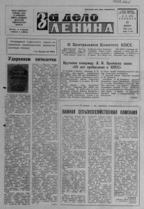 ОРГАН СЕВЕРНОГО РАЙКОМА НПСС И РАЙОННОГО СОВЕТА НАРОДНЫХ Д Е П УТ А ТО В НОВОСИБИРСКОЙ ОБЛАСТИ Выходит по вторнинам, четвергам и субботам. Пролетарии всех стран, соединяйтесь! 21 « 7/ 1V т а Газета основана 20 июля 1935 года Ns> 131 (5259) С У Б Б О Т А 31 О К Т Я Б Р Я 1981 года Цена 2 коп. Т Р У Д Я Щ И Е С Я С О В Е Т С КО ГО СОЮЗА ! 0 3 - 1 Н А М Е Н У Е М О Д И Н Н А Д Ц А Т У Ю П Я Т И Л Е Т К У | | У Д А Р Н Ы М Т Р У Д О М ! I ( Из Призывов Ц К КП С С ) (: zzzxzzzzzxzx^ ^ У д а р н и к а м п я т и л е т к и П о с т а н о в л е н и е м Ц К К П С С , С о в е т а М и н и с т р о в С С С Р , В Ц С П С и Ц К В Л К С М « О В с е с о ю з н о м с о ц и а л и с т и ч е с к о м с о р е в н о в а н и и г а у с п е ш н о е в ы п о л н е н и е и п е р е в ы п о л н е н и е з а д а н и й о д и н н а д ц а т о й п я т и л е т к и » д л я н а г р а ж - д е н и я р а б о ч и х , к о л х о з н и к о в , и н ж е н е р н о - т е х н и ч е с к и х р а б о т н и к о в , с п е ц и а л и с т о в и с л у ж а щ и х у ч р е ж д е н е д и н ы й о б щ е с о ю з н ы й з н а к « У д а р н и к о д и н н а д ц а т о й п я т и л е т к и » . 25 с е н т я б р я П р е з и д и у м В Ц С П С и Г о с у д а р с т в е н н ы й к о м и т е т п о ТРУДУ и с о ц и а л ь н ы м в о п р о с а м у т в е р д и л и п о л о ж е н и е о з н а к е . Е д и н ы м о б щ е с о ю з н ы м з н а к о м « У д а р н и к о д и н н а д ц а т о й п я т и - 1^ т к и » н а г р а ж д а ю т с я р а б о ч и е , ^ ^ л х о з н и к и , и н ж е н е р н о - т е х н и ч е с к и е р а б о т н и к и , с п е ц и а л и с т ы и с л у ж а щ и е п р о м ы ш л е н н ы х , п р о и з в о д с т в е н н ы х , н а у ч н о - п р о и з в о д с т в е н н ы х , м е ж х о з я й с т в е н н ы х , а г р о п р о м ы ш л е н н ы х и д р у г и х о б ъ е д и н е н и й , и х п р о и з в о д с т в е н н ы х е д и н и ц , п р е д п р и я т и й , с т р о е к , к о л х о з о в , с о в х о з о в , н а у ч н о - и с с л е д о в а т е л ь с к и х , п р о е к т н ы х , к о н с т р у к т о р с к и х и д р у г и х о р г а н и з а ц и й и у ч р е ж д е н и й , в ы с ш и х у ч е б н ы х з а в е д е н и й з а д о с т и ж е н и е в ы с о к и х п о к а з а т е л е й в п о в ы ш е н и е э ф ф е к т и в н о с т и и к а ч е с т в а р а б о т ы , д о с р о ч н о е в ы п о л н е н и е з а д а н и й и с о ц и а л и с т и ч е с к и х о б я з а т е л ь с т в . З а к о н о м н а г р а ж д а ю т с я : р а б о т н и к и п р е д п р и я т и й и о р г а н и з а ц и й с о ю з н о г о п о д ч и н е н и я — с о в м е с т н ы м р е ш е н и е м м и н и с т е р с т в а , в е д о м с т в а С С С Р и Ц К п р о ф с о ю з а и л и п о и х п о р у ч е н и ю — р е ш е н и е м г л а в н о г о у п р а в л е н и я с о ю з н о г о п о д ч и н е н и я ( т е р р и т о р и а л ь н о р а с п о л о ж е н н о г о в р е с п у б л и к а х и о б л а с т я х ) и с о о т в е т с т в у ю щ е г о р е с п у б л и к а н с к о г о , к р а е в о г о , о б л а с т н о г о с о в е та п р о ф с о ю з о в ; р а б о т н и к и п р е д п р и я т и й и о р г а н и з а ц и й с о ю з н о р е с п у б л и к а н с к о г о и р е с п у б л и к а н с к о г о п о д ч и н е н и я — с о в м е с т н ы м р е ш е н и е м м и н и с т е р с т в а , в е д о м с т в а с о ю з н о й р е с п у б л и к и и р е с п у б л и к а н с к о г о к о м и т е т а п р о ф с о ю з а и л и с о в е т а п р о ф с о ю з о в (в Р С Ф С Р — с о в м е с т н ы м р е ш е н и е м м и н и с т е р с т в а , в е д о м с т в а Р С Ф С Р и Ц К п р о ф с о ю з а ) . К о л х о з н и к и , р а б о т н и к и с о в х о з о в , д р у г и х п р е д п р и я т и й и о р г а н и з а ц и й с и с т е м ы М и н и с т е р с т в а с е л ь с к о г о х о з я й с т в а С С С Р н а г р а ж д а ю т с я з н а к о м с о в м е с т н ы м р е ш е н и е м у п р а в л е н и я ( п р о и з в о д с т в е н н о г о у п р а в л е н и я ) с е л ь с к о г о х о з я й с т в а о б л ( к р а й ) и с п о л к о м а и о б л а с т н о г о ( к р а е в о г о ) к о м и т е т а п р о ф с о 