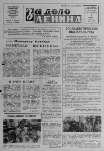ОРГАН СЕВЕРНОГО РАЙНОМА КПСС И РАЙОННОГО СОВЕТА НАРОДНЫХ ДЕПУТАТОВ НОВОСИБИРСКОЙ ОБЛАСТИ В ы х о д и т по вторникам, четвергам и субботам. Пролетарии всех стран, соединяйтесь!. Ш ) т т ^ i i v / i v Газета основана 20 июля 193$ года № 132 |5260] В Т О Р Н И К 3 НОЯБРЯ 1981 года Цена 2 коп. Т р у д я щ и е с я Советского Союза! Настойчиво боритесь з а \ I Дальнейший п о д ъ ем сель ск о го х о зяй с тв а ! Повышайте темпы \ \ его м е хан и зац и и и х им и з аци и , мелиорации земель! П р е о б р а з о в а н и е Н е ч е р н о з е м ь я—вс е н а р о дн о е дело! 1 ( Из Призывов ЦК КПСС ) ' л лл. ? ~ Н а в с т р е ч у О к т я б р ю НАМЕТИЛИ - В я н в а р е т е к у щ е г о го д а р а б о т н и к и С е в е р н о г о р а й о н н о г о у з л а с в я з и п р и н я л и с о ц и а л и с т и ч е с к и е о б я з а т е л ь с т в а , в к о т о р ы х , в ч а с т н о с ти , г о в о р и т с я : « З а с ч е т у л у ч ш е н и я к у л ь т у р ы о б с л у ж и в а н и я т р у д я щ и х с я п о ч т о в о й и э л е к т р и ч е с к о й с в я з ь ю в ы п о л н и т ь план т а р и ф ных д о х о д о в к 28 д е к а б р я » . Н о у ж е с е г о д н я к о л л е к т и в л^ ожет р а п о р т о в а т ь о д о с р о ч н о м п е р е в ы п о л н е н и и в з я т ы х о б я з а т е л ь с т в . Д о с т о й н у ю л е п т у в о б щ е е д е л о в н е с л и в с е о т д е л е н и я с в я з и , но л и д и р у е т в т р у д о в о м с о п е р н и ч е с т в е В е р х - К р а с н о я р с к о е , где на- * ч а л ь н и к М . Д . Л е о н о в а . В 1980 г о д у е г о ра- в ^ и т н и к а м б ы л о п р и с в о е н о п о ч е т н о е з в а н и е ^ И К : л е к т и в а к о м м у н и с т и ч е с к о г о т р у д а . Н е п л о х о р а б о т а ю т с п е ц и а л и с т ы с м е ж д у г о р о д н о й т е л е ф о н н о й с т а н ц и и ( б р и г а д и р Н. Т и х о н о в а ) , т е л е г р а ф а ( б р и г а д и р 3. К о п л я - р о в а ) и о п е р а ц и о н н о й к а с с ы п о ч т о в о г о о т д е ла ( с т а р ш и й о п е р а т о р 3. К а р п и с о н о в а ) . З н а ч и т е л ь н о п е р е в ы п о л н е н о з а д а н и е по р е м о н т у л и н и й р а д и о ф и к а ц и и и у с т а н о в к е р а д и о - т о ч е к . В м е с т о 50 р а д и о ф и ц и р о в а н о 70 к ва р - • тир. О с о б е н н о з а м е т н а э т а р а б о т а в Ч у в а ш а х , i где т р у д я т с я э л е к т р о м е х а н и к о м А . И. ПанВЫПОЛНИЛИ ф и л о в , а м о н т е р о м Н. Н. Р у д ы х . В О с т а н и н к е д о б р о с о в е с т н о с п р а в л я е т с я с о с в о и м и о б я з а н н о с т я м и И. М . Г о н ч а р о в . В с р о к и с х о р о ш и м к а ч е с т в о м о т р е м о н т и р о в а л и л и н и ю Биа- з а — В е с е л а я П. Г. С т р е л ь ц о в , Н. В. Р у д е н к о , Ф . И. С т е п и н . Б о л ь ш о е в н и м а н и е на п р е д п р и я т и и у д е л я е т с я у л у ч ш е н и ю о р г а н и з а ц и и т р у д а , п о в ы ш е н и ю к а ч е с т в а о п е р а ц и й , в н е д р е н и ю р а ц и о н а л и з а т о р с к и х п р е д л о ж е н и й . И к а к р е з у л ь т а т т а к о г о в н и м а н и я — в т е ч е н и е го д а в н е д р е н о ч е т ы р е п р е д л о ж е н и я . А в т о р их — и н ж е н е р л и н е й н о - а п п а р а т н о г о з а л а А , Ф . М и х а л е в , он к о в с е м п р о и з в о д с т в е н н ы м п р о ц е с с а м п о д х о дит т в о р ч е с к и , и з ы с к и в а я в о з м о ж н о с т и д л я п р и м е н е н и я н а и б о л е е п р о г р е с с и в н ы х м е т о д о в . О с н о в а у с п е х а к о л л е к т и в а л е ж и т в н е у с т а н н ой т е х н и ч е с к о й , э к о н о м и ч е с к о й у ч е б е в с е х с п е ц и а л и с т о в . З а н я т и я п р о в о д я т з а в е д у ю щ и е о т д е л а м и п р е д п р и я т и я . Э т а у ч е б а о к а з ы в а е т о п р е д е л е н н о е в л и я н и е и на у к р е п л е н и е д и с ц и п л и н ы , и м е е т в о с п и т а т е л ь н о е з н а ч е н и е . З н а ч и т , в о з р а с т а е т и т р у д о в а я а к т и в н о с т ь . О. С А М У Ш