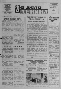 ОРГАН С Е В Е Р Н О Г О РАЙКОМА КПСС И РАЙОННОГО С О В Е Т А Н АРОДНЫХ Д Е П У Т А Т О В НОВОСИБИРСКОЙ ОБЛАСТИ Вы х о ди т по вторникам, четвергам и субботам. Пролетарии всех стран, соединяйтесь! Газета основана 20 июля 1935 года № 137 (5265) В Т О Р н и к 17 Н О Я Б Р Я 1081 года Цена 2 кон. — Жив о т но во д с т во — у д а рный фронт БЕРЕЖНО РАСХОДУЯ КОРМА Прошедшие де сят ь месяцев текущего года показ али , что животноводы колхоза « V I I съезд Советов» потрудились хорошо. Илаи по продаже мяса . г о с у дар ству выполнен на 1 0 1 , 7 процента, молока — на 1 0 2 , 3 процента. От ста коров уже получено 77 т е л я т . В колхозе неплохо , налажена племенная работа. У нас введено и с к у с с т в е н - ’ ное осеменение коров. Такой подход к де лу позволяет полу-, чать здоровый крепкий молодн я к , а впоследствии и высокопродуктивное дойное стадо. Любое доброе дело з а ви си т в первую очередь от людей, зан я т ы х на производстве. Поэтому iвысокие надои — это, прежде вс его, р е з у л ь т а т упорного труда доярок, ск отников . Крепк а я ди сциплина на рабочих м е стах , выполнение распорядка дня, рациональное исполь зов а ние имеющихся кормов с л у ж а т основным фактором в увеличеУ С П Е Х - Завершая первый год одиннадцатой п я т и л е т к и , животноводы колхо за « П у т ь к коммунизму» с удовлетворением отмечают, что добились определенных усп ехов . План по продаже молока го с у д а р с тв у выполнен на 9 5 , 8 процента. До его завершения осталось сдать 8 0 0 Ц е н т н е р о в . Мяса продали г о с у д а р с т в у 1 0 1 , 1 процента к заданию. Большое значение прид ается к а ч е с т в у продукции. Поэтому молоко от нашего х о з я й с тва п о с ту п а е т на маслозавод первым сортом и жирностью 3 , 6 3 процента . Для у л у ч ш ен и я и оздоровления маточного поголовья в колхозе организован контрольно- | |1ш производства молока. Нынешнее лето не баловало полеводов. Средняя урожайность ржи в хозяйстве составила всего л иш ь три центнера с г е к т а ра, пшеницы — семь, овса 7 , 2 центнера. З а с у х а ск а за л ас ь и на за готовке кормов для общественного животноводства. Вместо плановых 9 6 0 0 мы сметали 8 1 2 1 центнера сена. Правда, заскирдовали всю солому. И теперь кормообеспеченипеть на знмнеетойловый период сост а в л я е т I I центнеров кормовых единиц на условную голову . Ото немного. Однако по-хозяйски , расчетливо р асходуя корма, бережно исполь зуя каж д ы й ки л о грамм силоса и сена, мы сможем вполне благополучно завершить предстоящую зимовку и спр ав и т ь ся с со циалистическими обязательствами, п р и н я ты ми на э то т период. Ф. Д Р Е Б Е Н Ц О В , председатель ко лхо за . О Б ЩИ Й селекционный двор, на котором уже раздоено 1 1 4 первотелок. Все они с хорошей п род укти в ностью переданы для пополнения основного дойного стада. Работают с группами первотелок четыре доярки и два с к о тн и к а . Показате ли надоев неп лохие . Мы получили за де сять месяцев от 3 0 0 0 до 3 2 8 6 к и лограммов . молока от каждой первотелки. Добиться этого рез у л ь т а т а смогли благодаря В . Трофимову и А . К о в г а н у . Они добросовестно выполняли обязанности скотников , помогая нам во всем. Значи т , у с п е х — общий. А . ИВАНО ВА , доярка. Состоялось совещание 1 2 ноября состоялось совещание животноводов райена. На нем прису тс тв ов ал и руководители колхозов, бригадиры, зоотех ники , заведующие фермами, передовые доярки, с к о т н и к и . С докладом «И то ги работы живо тноводов района за де сят ь