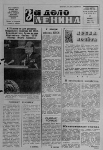 № 1 5 0 151 ( 5 2 7 8 5 2 7 9 ) + дсиабря 1 9 8 1 года m i i i i i i i i i u i i i i i i n i i i i i i i i i i i i i i i M i i « ЗА ДЕЛО Л Е Н И Н А » i i n i i i i i i i i i i i i i i i i i i i t i H i i i i i i i t i i i i i i i i i i i i i i i i i i i i i i i K i i i i i i i i i i i n i i i i i i i i i i В е р н о с т ь п а р т и и делом д о к а ж е м С О В Е Т С К И Е Д Е В У Ш К И И ЮНОШИ У В Л Е Ч Е Н Н О Б Е Р У Т С Я ЗА С А М Ы Е Р А З Н О О Б Р А З Н Ы Е Д Е Л А , Н У Ж Н Ы Е Н А Ш Е М У О Б Щ Е С Т В У . МНОГИЕ ИЗ НИХ У М ЕЮ Т В И Д Е Т Ь , КА ЗАЛО СЬ Б Ы , В МАЛОМ Д Е Л Е — Б О Л ЬШ О Е , КА ЗАЛО СЬ Б Ы , В ЛИЧНОМ — Ч А С ТИ Ц У О БЩ Е ГО , В С ЕН А РО Д НОГО. ЭТО ПОТОМУ, ЧТО НАШ А МОЛОДАЯ СМЕНА Р А С Т Е Т ВЫСОКОИДЕЙНОЙ , К У Л Ь Т У Р НОЙ, С ХОРОШИМ Ч УВС ТВОМ НОВОГО. Л . И. Б Р Е Ж Н Е В . Э с т а ф е т а поколений М. М. СМЫК, комсомолец тридцатых годов О ч е м ч а щ е в с е г о м е н я с п р а ш и в а ю т ? П р о с я т р а с с к а з а т ь о ж и з н и и р а б о т е к о м с о м о л а в 3 0— 4 0 - е г о д ы . В 1935 г о д у я в с т у п и л в к о м с о м о л . Т о г д а я б ы л у ч и т е л е м . В т о в р е м я на с е л е б ы л о о ч е н ь м а л о л ю д е й , и м е ю щ и х х о т ь к а к о е - н и б у д ь о б р а з о в а н и е . П о э т о м у на у ч и т е л я в о з - л . - а л а с ь б о л ь ш а я з а д а ч а п р о с в е щ е н и я не т о л ь к о м о л о д ы х , но и с т а р и к о в . Э т о б ы л о в р е м я л и к б е з а . В т е д а л е к и е м н о г о т р у д н ы е г о д ы с т а н о в л е н и я с о ц и а л и з м а т р у д в ж и в о т н о в о д с т в е и по ле в о д с т в е б ы л п о ч т и не м е х а н и з и р о в а н . В с е д е л а л о с ь в р у н , н / ю . В с е д е р ж а л о с ь на м о л о д о м з а д о р е , э н т у з и а з м е . Б е т э т о г о н е м ы с л и м о б ы л о в ы п о л н е н и е н е л е г к о й з а д а ч и о б е с - ч е н и я с т р а н ы п р о д у к ц и е й л ь с к о г о х о з я й с т в а . Н а р я д у с - э т и м м ы , к о м с о м о л ь ц ы , з а н и м а л и с ь и у с т р о й с т в о м к у л ь т у р н о й ж и з н и с е л а — с т а в и л и с п е к т а к л и на з л о б о д н е в н ы е т е м ы . П р и ч е м , в х у д о ж е с т в е н н о й с а м о д е я т е л ь н о с т и п р и н и м а л и у ч а с т и е не т о л ь к о к о м с о м о л ь ц ы , но и н е с о ю з н а я м о л о д е ж ь . А п о т о м д л я в с е х н а с н а с т у п и л о с т р а ш н о е в р е м я в е л и к и х и с п ы т а н и й — В е л и к а я О т е ч е с т в е н н а я в о й н а . В м е с т е с к о м м у н и с т а м и и б е с п а р т и й н ы м и к о м с о м о л ь ц ы с о р у ж и е м в р у к а х з а щ и щ а л и Р о д и н у на ф р о н т а х , в п а р т и з а н с к и х о т р я д а х , в п о д п о л ь н о й р а б о т е на о к к у п и р о в а н н о й з е м л е , к о в а л и п о б е д у в т ы л у . П о с л е в о й н ы я б ы л н а з н а ч е н у ч и т е л е м в Г р а ж д а н ц е в - с к у ю ш к о л у . Ч то м н е б о л ь ш е в с е г о з а п о м н и л о с ь ? Р а д и о и э л е к т р и ф и к а ц и я р а й о н а . П о ч т и к а ж д ы й с т о л б в Г р а ж - д а н ц е в о б ы л в к о п а н б е з в о з м е з д н о , по д о б р о м у по ч и н у к о м с о м о л ь ц е в . Ы ы о ч е н ь р а д о в а л и с ь п е р в о й в с п ы х н у в ш е й л а м п о ч к е . В д о к л а д е п е р в о г о с е к р е т а о я Не перестаём н а д е я ть ся С . К О Н Д Р А Ш К И Н , ч л е н б ю р о р а й к о м а к о м с о м о л а , начальник ПМК-64 Н е д а в н о п р о ш е д ш и й I X П л е н у м Ц К В Л К С М о б р а т и л б о л ь ш о е в н и м а н и е на р а з в и т и е ф и з к у л ь т у р н о г о д в и ж е н и я в с т р а н е . О н , в ч а с т н о с т и , п о д ч е р к н у л , ч т о н е о б х о д и м о д о б и в а т ь с я , ч т о б ы ф и з к у л ь т у р а и с п о р т с т а л и ж и з н е н ной п о т р е б н о с т ь ю в с е х ю н о ш е й и д е в у ш е к . Ч т о б ы к а ж д ы й м о л о д о й ч е л о в е к м о р а л ь н о и ф и з и ч е с к и б ы л г о - £ о в к т р у д у и з а щ и т е Р о д и - , с т а л з н а ч к и с т о м Г Т О . ' о м с о м о л ь с к и е р а б о