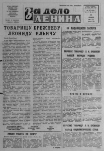 ОРГАН СЕВЕРНОГО РАЙКОМА КПСС И РАЙОННОГО СОВЕТА НАРОДНЫХ Д Е П У Т А Т О В НОВОСИБИРСКОЙ ОБЛАСТИ Выходит по вторника м, четвергам и субботам. Пролетарии всех стран, соединяйтесь! Газета основана 20 июля 1935 года № 154 (5282) Ч Е Т В Е Р Г 2 4 ’ Д Е К А Б Р Я 1 9 8 1 года Це на 2 коп. ТОВАРИЩУ БРЕЖНЕВУ ЛЕОНИДУ ИЛЬИЧУ Дорогой Леонид Ильич! В день Вашего семидесятипятилетия мы обращаемся к Вам, наш ем у т о ва рищ у и другу , с самыми сердечными приветствиями и го ря чо поздравляем с высокой наградой Родины. В а ж н е й ш и е вехи в советской истории нашей страны — это и вехи В ашей биографии. К о л л е к т и в и з а ц и я , и ндуст ри али з ац ия , создание основ социализма — во всех э тих в ел и к и х , н е слыханных по новизне делах есть доля труда к оммунист а ленинской школы Леонида Ильича Б р еж н е в а . Ещ е тогда проявилось Ваше дарование выдающегося политич еского руководителя. Сполна Вы познали и ратный труд. С первого тр а ги ч е с к о го дня войны до славного Д ня Победы Вы находились в рядах действующей армии, ге рои чески сражались с ги тлеров ским и з а х в а т ч и к а м и . Славными этапам и Вашего ж и з н е н н о го п у т и ст али уча стие в возрождении народного хозяйства , лег ендарная ц елинная эпопея , ор ган и з а ц и я первых в мире к о см и ч е с ки х исследов аний , другие большие св ершения. Шестьдесят лет назад началась Ваша трудовая деятельность. Вот у ж е пя тьдеся т лет Вы состоите в рядах Ко м м у н и с т и ч е с к о й п ар т и и . И поистине справедливы Ваши слова: « . . . к а ж дый день моей ж и з н и неотделим от тех дел, которыми ж и л и и ж и в у т н а ш а К о м м у н и с т и ч е с к а я п а р т и я , н аш а Советская с т р а н а » . Вас, славного сына советского народа, всегда отличала забота о его благе. За каждым вопросом Вы видите интересы людей и у чи т е -этому д р у ги х . Вы, Леонид Иль и ч , обладаете искусством объединять людей, н а с т р а и в а ть их на д р у ж ную к олл екти в н ую работу. Вам при сущ редкий т а л а н т замечать способности к а ж дого това рища , находить им лучшее применение. Занимаясь теми или иными проблемами, Вы избегаете н е н у ж н о й с п е ш к и , стремитесь добираться до самой сути дела. Глубокую идейность, верность ма р кси стс ко - лен и н ским идеалам Вы соединяете с непримиримостью ко всякой к осно сти , к застою. Это дает постоянные творческие импульсы работе Ц е нтр аль ного Ком и тет а К П С С , деятельности всей нашей партии. Вот у ж е семнадцать лет Вы вносите определяющий вклад в п о л и т и к у К П С С и Советского государства. Вам, Леонид Ильич , п р и н а д л е ж и т историческа я за сл у г а в преодолении субъективизма и волюнтаризма, в создании здоровой морально- политич еской атмосферы в п а р т и и и в стране. Бережное отношение к людям, нет ерпимость к любым несправедливостям, доверие и требовательность, деловитость и смелые п о и с ки — вот стиль, ко торый го сподствует в нашем обществе. Этот стиль к ом м ун и сты с полным основанием связывают с В ашей деятельностью, Леонид Ильич. По Вашей и н и ци ат и ве осуществлены ш ирокие меры, направленные на дальнейшее развитие советской государственной системы, у г л у б ление социалистической демократии. Все это нашло о т р аж ен и е в К о н с т и т у ц и и СССР 1 9 7 7 года, которую с полным основанием можно назвать выдающимся дем ократическим д о к у ментом современности. Выдвинутые Вами у с т а н о в к и на и н т е н с и фикацию промышленнос ти 