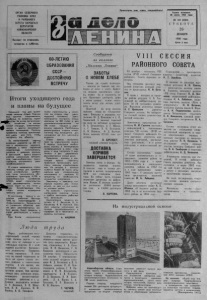 N° 1 5 5 ( 5 2 8 3 ) + 2 6 декабря 1 9 8 1 года i i i i i i i i i i i n i i i m i m i m n i i i m m i . «ЗА Д Е Л О ЛЕ НИНА » 1 Н Ш 1 Ш Ш Ш Н Ш 1 Ш П Ш М 1 1 Ш Ш М Ш Ш 1 1 1 1 1 Ш 1 Ш 1 1 1 Ш Ш 1 1 1 1 Ш 1 1 Ш И 3 Л ю б о в ь П е т р о в н а Х а л ю к о в а п р и ш л а р а б о т а т ь в ж и в о т н о в о д с т во м н о г о л е т н а з а д . Т о г д а о н а со с в о е й м н о г о ч и с л е н н о й с е м ь е й ж и л а в К о б а т о в о , н е б о л ь ш о й д е р е в н е , г д е р а с п о л а г а л а с ь о д н а и з м о л о ч н о т о в а р н ы х ф е р м к о л х о з а и м е н и X X I I с ъ е з д а К П С С . У с л о в и я р а б о т ы б ы л и т я ж е л ы е : п о м е щ е н и я с т а р ы е , м е х а н и з а ц и я — Готовимся к строительному сезону В предстоящем году в нашей бригаде план и р уется з а вершить строительство коровника на комплек се , склада для хранения минеральных удобрений, построить кры тую с т о я н к у для с е л ь с ко х о з я й с т венных машин, п у с т и т ь в эк сп лу а т а ц ию два д в у х к в а р т и р н ы х ж и л ы х дома, произвести т е к у щ и й ремонт ж и лого фонда, некоторые ж и вотноводческие и другие производственные помещения. Для выполнения такого объема строи тельны х работ потребуется большое количество материалов. Поэтому ко л л е к ти в бригады стремится за зимнее время заготовить и завезти деловую древесин у , кирпич , щебнь, песок, решить вопрос со столярными изделиями дл я будущи х объек тов. Перед нами поставлена з а дача — заготовит!, одну т ы сячу кубометров леса на территории колхоза и . п о л т о ры ты с яч и кубометров в районе реки Перши по договорным обязательствам с Северным леспромхозом. На сегодня заготовлено и вывезено более (!( )( ) кубометров строительного леса из района Окунегща. Го то в я т н вывозя т лес механизаторы коммунисты И. А. См ы к , А. Н. Сметанин, В . 1!. П е т у х о в , комсомольцы В . I I . Смык, В . К . Сандзюк. Первенство на этой работе удерживает звено И. А . Смык а . Он со своим напарником А. А . Малевым на тракторе К - 7 0 0 сменное задание в ы полняют н а 1 4 0 — 1 5 0 процентов. Второе место по количеств у заготовки и вывозк и леса занимают тр ак тор ис ты К - 7 0 0 А. Ц. Сметанин и В . В . Пет у х о в . Сейчас их т я г а ч сто и т на ремонте. Э т у работу завершили бы они еще неделю тому назад, но нет рамы, а старая пришла в негодность. Неплохо работали В . I I . Смык и Ф. В . Пещерскпй. В район реки Перши это более ста километров от нижнего ск лада Северного леспромхоза — направили бригаду лесозаготовителей из восьми человек под руководством М. П . Ж ур а вл е в а . В и х распоряжении мехлопата, на которой т р у д и т с я молодой, но знающий свое дело, дисциплинированный механизатор В , И. Смык. Завозим и другие строительные материалы, я имею в виду, кирпичь, щебень и песок. Думаю, к новому строительному сезону подготовимся заблаговременно. н. Литвинов, заведующий Верх - К р а с ноярским производственным участком колхоза «П ам я т ь Л ен и н а» . Алинимальная, Алногое д е л а л о с в р у ч н у ю . С е й ч а с Л . П. Х а л ю к о в а ж и в е в С е в е р н о м , к у д а п е р е в е л и ф е р м у , г д е к о л х о з п о с т р о и л н е м а л ! б о л ь ш и х , у ю т н ы х к в а р т и р . С т а р ш и е е е д е т и в с т а л и н а но ! и , о б р е л и с в о ю с у д ь б у . М л а д ш и е — ш к о л ь н и к и . З а б о т а о вое п и т а н и и их , п о с т о я н н а я р а б о т е т р е б у ю щ а я н е м е н ь ш и х х л о п о т , — и в е з д е о н а , м а т ь и т р у ж е н и ц г о б я з а н а у с п е т ь . С е в е р н а я м о л о ч н о т о в а р н а ф е р м а — в ч и с л е п е р е д о в ы х hi ► о л ь к о по к о л х о з у , о н а з а н и м а л , п е р в 