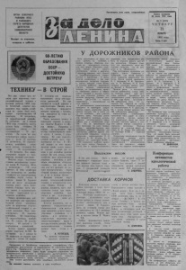 ОРГАН СЕВЕРНОГО РАЙКОМА КПСС И РАЙОННОГО CGPETA НАРОДНЫХ ДЕПУТАТОВ НОВОСИБИРСКОЙ ОБЛАСТИ В ы х о д и т по в т о рн и к ам , четве рга м и субботам. Пролетарии всех стран, соединяйтесь! \ Газета основана 20 июля 1935 года № 9 [5 2 9 3] Ч Е Т В Е Р Г 21 ЯН ВАР Я 1982 г о д а Цена 2 коп. 6 0 - Л Е Т И Ю ОБРАЗОВАНИЯ СССР — ДОСТОЙНУЮ ВСТРЕЧУ Т Е Х Н И К У - В СТРОИ Вот у ж е свыше - т р е х месяцев идет п о д го то в ка сельс к о х о з я й с т в е н н о й т е х н и к и к полевым работам 1 9 8 2 года. За ч е т в е р т ы й к в а р та л п р е ды дущ е го года наш им х о з я й ствам по п л а н у было необходимо о тр ем онтирова ть 4 9 т р а к т о р о в , 31 автомобиль , 2 1 з е р н оу б ор оч ны й к о м б а й н . По с о с то я н ию на 1 я н в а р я 1 9 8 2 года го то в н о с ть п л у г о в д о лж н а была составить 7 0 п р оцентов , с е я л о к — 5 4 , к у л ь т и в а т о р о в — 7 0 п р о цен тов . На самом ж е деле м е х ан и за то ры района по д го то в и л и к весне 5 2 т р а к т о р а , 2 3 автомобиля , 5 0 зерноубор о ч н ы х к о м б а й н о в ; г о т о в ность п л у г о в составила 8 4 , с е я л о к — 7 9 , к у л ь т и в а т о р о в 6 4 пр оц ен та . К а к видно, доведенное задание по больш и н с т в у п о з и ц и й вы п о л н ен о . Неплохо в е д у т п о д г о т о в к у т е х н и к и м е хан и за то ры к о л х о зов имени М. Г о рь к о го , « П у т ь к к о м м у н и з м у » , « V I I съезд Советов». В э т и х х о з я й с т в а х у ж е по с т а в л е н ы на л и н е й к у г о то в н о с ти все зерноуборочные к о м б а й н ы , п л у г и , с е я л к и . В колхозе и м е н и М. Го рь к о го сразу же после зав ерш е ни я п олевы х работ была п о д го товлена большая час ть п л у го в, с е я л о к н к у л ь т и в а т о р о в . С осени п о д готовил и т у т и зерновые к о м б а й н ы . Однако м еханизаторам р а й она предс тоит еще в ы п о л н и т ь большой объем р е м о н т н ы х работ по п о д го т о в к е с е л ь с к о х о з я й с т в е н н о й т е х н и к и к п о левой к а м п а н и и . Надо отрем о н ти р ов а ть 3 5 зр р н о в ы х ко м байнов , 6 6 с е н о к о с и л о к , 2 5 с и л о соуб ор оч ны х к о м б а й нов , 31 с е я л к у , 3 6 к у л ь т и ваторов , 4 0 граблей и 1 5 п о д бо рщ и к ов - к о п н и т е л е й . Особую т р е в о г у в ы з ы в а е т ремонт т р а к т о р о в . К - 7 0 0 . По со с то я н ию на 1 я н в а р я из 3 8 т р а к т о р о в по разным п р и чинам не го тово 13 м а ш и н . В основном э т и т р а к т о р ы п р о с т а и в а ю т и з - з а н е и с п р а в н о с т и дв и га тел е й . Все еще ощ ущ а е тс я о с т р ы й дефицит в а к к у м у л я т о р а х . Именно и з - з а и х о т с у т с т в и я п р и х о д и т с я зав од и ть т р а к т о р ы с б у к с и р а , чем в ы в о д я т с я из строя к о р о б к и передач. Т а к ж е в ы з ы в а е т т р е в о г у и п о д го т о в к а т е х н и к и в к о л х о зах « Заве ты И л ь и ч а » и « Н о вая ж и з н ь » . Н апример, в первом за прошедшие тр и месяца о тремонтировано л и ш ь 4 п л у г а , 3 с е я л к и , I к у л ь т и в а т о р . Н и один зер ноуб о р о ч н ы й ко м б а й н здесь о тре мо нти р ов ан не был. В « Н о в ой ж и з н и » за этот период времени т а к ж е п о ч т и н и ч е г о не сделано: т о л ь к о две се я л к и и два ко мбайна п р ош л и ремонт. На мой вз гляд , э том у х о з я й с т в у надо ремонтировать зерновые к о м б а й н ы в р а й онном объединении «Сельхозт е х н и к а » , т а к к а к оно вот у ж е ряд лет проводит и х ре монт непо средственно перед у б о р к о й у р о ж а я , н е к а ч е с т в е н но и не в п олном объеме. Н и з к и м и темпами веду т ремонт с е л ь с к о х о з я й с т в е н н о й т е х н и к и и механ и за то ры к о л х о за « П а м я ть Л е н и н а » . В декабре, нап р им е р , здесь п о д го товлено т о л ь к о т