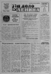 ОРГАН С Е В Е Р Н О ГО РАЙНОМА КПСС И РАЙОННОГО С О В Е Т А НАРОДНЫХ Д Е П У Т А Т О В НОВОСИБИРСКОЙ ОБЛАСТИ Вы х о ди т по вторникам, четвергам и субботам. Га з е та основана 2D июля 1935 года № 20 (5304) В Т О Р Н И К 16 Ф Е В Р А Л Я 1 9 8 2 г о д а Цена 2 коп. Слет правофланговых Состоялс я районный слет передовиков местной промышлен ности, сельского хозяйств а , с т р о и тель ств а , связи , т р ан сп о р та , с л у ж б ы быта- и коммунального х о зяй с т в а . С д о к л ад ом «Об ито г а х ра боты предприятий и к о л х озов з а 1981 и з а д а ч и на 1982 год» выступил председате ль и с полкома Северного рай онного С овета н ародных д еп у т а т о в Г, И. Ивашкевич. В обсуждении д о к л а д а прин яли уч астие д о я р к а колхоза «П у ть к коммунизму» А. А. И в а н о в а , бригадир Ударницкой бригады ко л х о з а имени XXII с ъ е з д а КП СС И. И. З а к а м с к и й , лесничий Артымского лесничества Северного лесхоза В. Л. •Осейчук, главный агроном к о л х о з а « П а м я т ь Лен и на » В. М. Шрейдер, главный ветврач к о л х о з а «Путь к коммунизму» М. П. Трофимов, главный зоотехник к о л х о з а «VII с ъ е з д Советов» Н. И. Криков, главный и н ж е нер «Трансс ельхозтехники» В. II. Ж о р о в , главный ветврач к о лхо з а имени XXII с ъ е з д а КПСС М. А. Ивашкевич, з а в е д у ю щ а я Пчкалннской фермы кол х о з а имени К. М а р к с а 3 . И. Б а л к и н а , мастер по ремонту дви г ате лей Т. Ф. Аперьянон, председате ль к о л х о з а «Борьба з а мир» В. К. Салмин, инженер по технике б е з опасности ПМК трес та «Мелно- подстрой» Л. Н. Григорьева. Н а совещании были приняты социалистические о б я з а т е л ь с т в а тр уж е н и к о в района на 1982 год. Б о л ь ш а я группа передовиков производств а была н а г р аж д е н а Почетными грам от ам и райкома партии, райисполкома и р а й к о ма профсоюза работник ов сельского х о зяй с т в а п ценными п о да р к а м и . З А К А Ч Т В О ОБСЛУЖИВАНИЯ ПО К УПА ТЕЛЕЙ СО Ц И А ЛИ СТИ Ч ЕС КИ Е О Б Я З А Т Е Л Ь С Т В А РАБОТНИКОВ ФЕДОРОВСКОГО ТОРГОВОГО П Р Е Д П Р И Я Т И Я НА 1 9 8 2 ГОД Вступая во второй год одиннадцатой пятилетки, год ВО-летпя образования ССОР, работники Федоровского торгового предприятия сделают все необходимое дли досрочного выполнения плановых заданий и берут на себя следующие социалистические обязательства. Перевыполнить план товарооборота по предприятию на Г>00 рублей, 9 5 процентов плана выручить за счет работы магазинов. Повысить продажу книг и получить сверх плана 10 0 рублей. Систематически обслуживать тружеников полей и ферм Не менее пяти раз организовать выезд автомагазина на. полевые станы. Дважды в сезон проводить выставки-продажи промышленных товаров, за счет чего получить 3 , 5 тысячи рублей. Перевыполнить план сбора паевых и кооперирования населения. Снизить издержки расходов в торговле и расходы по таре на 0 , 0 2 процента за счет более рационального ее использования. Вызываем на социалистическое соревнование Ново-Троицкое торговое предприятие. Социалистическ ие обязательства обсуждены и приняты на общем собрании ко л л е кти в а . Н А Д О И В О З Р А С Т А Ю Т С полным н ап р яж ени ем сил т р у д я т с я жи вотноводы колхоза имени К. Айаркса. С н а ч а л а года суточные надои в этом хозяйств е — самы е высокие. П оэ тому и выполнение к в а р т а л ь н о г о плана п родажи мо л о к а г о с у д а р с т в у идет успешно. Н а приемный пункт о тп р а в л ен о 658 центнеров про дукции, что с о с т а в л я е т 81,2 процента. Это — лучший п о к а з а т е л ь в р