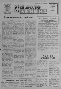 О Р Г А Н С Е В Е Р Н О Г О Р А Й К О М А Н П С С И Р А Й О Н Н О Г О С О В Е Т А Н А Р О Д Н Ы Х Д Е П У Т А Т О В Н О В О С И Б И Р С К О Й О Б Л А С Т И Выходит по вторникам, четвергам и субботам. Газета основана 20 и юля 1935 года № 2 4 15308| Ч Е Т В Е Р Г 25 Ф Е В Р А Л Я 1982 г о д а Ц е н а 1 ко п. Знаменательное событие Центральный комитет КПСС принял постановление «О 60-й годовщине образования Союза Советских Социалистических Республик». В постановлении подчеркивается, что 60-летие СССР — знаменательное событие в жизни советского народа, свидетельство торжества ленинской национальной политики КПСС, исторических достижений социализма. В эту славную годовщину Советский Союз предс т а е т перед всем миром как дружная семья равноправных республик, совместно строящих коммунизм. Монолитно социально-политическое и идейное единство нашего общества. Нерушима сплоченность советского народа вокруг родной Коммунистической партии, ее Центрального Комитета во главе с верным продолжателем великого ленинского дела товарищем Л. И. Брежневым. История не знает государства, отмечается далее в постановлении, которое в кратчайшие сроки сделало бы так много для всестороннего развития наций и народностей, как СССР — социалистическое Отечество всех наших народов. На собственном опыте народы Страны Советов убедились: сплочение в едином союзе умножает их силы, ускоряет социально - экономическое р а з витие. Мы вправе гордиться тем, что в общем строю с трудящимися всех наций страны народы бывших национальных окраин, обреченные прежде на вековую отсталость, уверенно шагнули в социалистическое будущее, минуя капитализм, и достигли высот социального прогресса. В совместной борьбе за новый, справедливый мир возникли великое братство людей труда, чувство семьи единой, сложилась нерушимая ле нинская дружба народов — неисчерпаемые источники созидательного творчества масс. Встречая 60-летие образования СССР, советский народ по праву гордится своими достижениями, той революционной исторической миссией, которую с честью выполняет наша Родина, идущая в первых рядах борцов за мир, независимость, свободу и счастье народов. Р е шения XXVI съезда КПСС вдохновляют трудящихся всех наций и народностей Советского Союза на новые трудовые свершения во имя торжества коммунизма. Задачи, выдвинутые партией на одиннадцатую пятилетку и* на весь период 8 0 -х годов, говорится далее в постановлении ЦК КПСС, отвечают жизненным интересам советского народа. И он настойчиво борется за их решение. В развернувшемся социалистическом соревновании, посвященном 60-летию СССР, труженики всех республик, краев и областей показывают з а мечательные примеры ударной работы, делают все для успешного выполнения плана 1982. года. Постановлением Центрального Комитета КПСС всем партийным организациям поручено широко развернуть организаторскую и идейно - воспитательную работу по подготовке к 6,0-летию образования Союза Советских Социалистических Республик. Одобрена инициатива передовых коллективов Москвы, Ленинграда, всех союзных республик, развернувших социалистическое соревнование за достойную встречу 60-й годовщины СССР, успешное выполнение и перевыполнение плана экономического и социального развития на 1 9 8 2 год, заданий одиннадцатой пятилетки. Приумножать славные традиции соревнования, создавать в каждом трудо