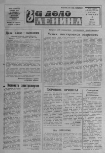 ОРГАН СЕВЕРНОГО РАЙКОМА НПСС И РАЙОННОГО СОВЕТА НАРОДНЫХ Д Е П УТ А Т О В НОВОСИБИРСКОЙ ОБЛАСТИ Выходит по вторникам, четвергам и субботам. Пролетарии всех стран, сомицяЙтас»1 i i v y i u Газета основана 20 мюля 1935 года № 26 ( 5310) В Т О Р Н И К 2 МАРТА 1982 года Цена 2 коп. г л убок о с о з н а в а я в аж н о с т ь з а д а ч , се ль ск ого х о зяй ств а Д а л и слово — выполним С О Ц И А Л И С Т И Ч Е С К И Е ОБ Я З АТ Е ЛЬ СТ ВА КОЛХОЗ А « ПАМЯТЬ Л Е Н И Н А » НА 1982 ГОД Тпуженики к о л х о з а «П а м я т ь Ленина» успешно выполнили Рплан и социалистически е о б я з а т е л ь с т в а прошлого года по производству продук тов з ем ле де л и я и животноводств а . Все члены ко лхоза , Х °хТ1В“ о м - К П С С Ди н о яб р ь с ки vT ( 1 9 8 1 г . ) Пленумом П К партии решили уси лить д виж ени е з а успешное выполнение п лан о в ’ второго года пятилетки . Д о б и в а я с ь дальнейшего повышения ку льту ры з ем ле де лия , улучшения исп ользования земли и удобрений, о б я зу ем с я в 1982 году получить по 16 центнеров зерна с к а ж д о г о г е к т а р а и п рода ть ^государству 17 ты сяч центнеров этого п родук та . У рож ай силосных получить по 180 центнеров с г ек тар а . Сена заготови ть 16500 центнеров. К 25 апреля з ав ерш ить ремонт тр ак то р о в и п о чв о о б р а б а тывающей техники. Ж ивотноводы к олхоза , в н е д р я я прогрессивную технологию со д е рж ан ия и кормления животных, о б я зую т с я надоить от к а ж д о й коровы по 24 центнера молока. П р о д а т ь го с у д а р с т ву 11640 центнеров молока, 1450 цен тнеров мя са . П л ан п родажи животноводческой продукции выполнить к 20 д ека бря . Д л я строительства з а го т о в и т ь 2500 ку б ом е тр о в д р е в е сины. Построить мост через р ек у Т а р т а с , шесть д в у х к в а р тирных домов, крытый ток, силосную траишею . Ос воить на строи тельство куль турно - быто вых и произв одственных объек тов 860 тысяч рублей. Труженики нашего колхоза п р и л о ж а т все усилия к т ому , чтобы успешно выполнить в з я ты е о б я з а т е л ь с т в а . Обязательства обсуждены и приняты на бригадных собраниях. Экономьте электроэнергию Это обращение мы е ж е д н е в но слышим по радио, т е л е ви зору, читаем в г а з е т а х , с л у шаем р а з ъ я сн ен и я энерго- предприятпй. И не выполнг- ем э то актуальн ейше е т р е б о вание. А вопрос стоит очень серьезно. К ак п оказа ли проверки, у нас в р айцентре ни одна о р г ан и з ац ия , не г о воря у ж е о личных х о з я й с т вах , этим не з анимается . В н а ч а л е нынешнего года со всеми р уководите лями вел а с ь р а з ъ я сн и т е л ь н а я р а б о т а но соблюдению реж им ов ч ведению реж им ных карт. Все, к а ж е т с я , было ясно. А потом руководители з абыли о своих о б я з ан н о с т я х и контроле н ачалась неразбериха. Снова во зникла необходимость п разъ ясн ен и ях . К ажды й день по ради о передают режимы, по ко торым должны р а б о т а т ь п р е д п р и я тия. Чт о получится, если не соблю дать эти режимы? В клю ченная мощность потребителей о к а ж е т с я выше предусмотренной, что приведет к рез к ому снижению н а п р я ж е ния, и, значит, к некачествен ной р аб о те э л е к т р о о б о р у д о в а ния и выхода его из строя. Поэтому к соблюдению р е ж и мов нужно относиться очень строго. В связи со сложившейся обстановкой, Северный энергоучасток Куйбышевского энер- гопредприятия ставит перет Руководите лями предприятий сл ед ующие требования. К а ж д о е предприятие д о л ж н о иметь лимиты рас хода э л е к троэнергии на год, с последующим распредел