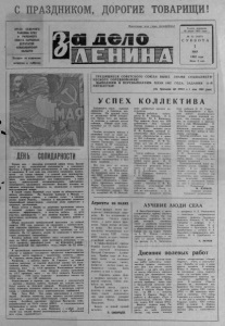 С ПРАЗДНИКОМ, ДОРОГИЕ ТОВАРИЩИ! ОРГАН СЕВЕРНОГО РАЙКОМ А КПСС И РАЙОННОГО СОВЕТА НАРОДНЫХ Д ЕП У Т А ТО В НОВОСИБИРСКОЙ ОБЛАСТИ В ы х о д и т по в т о р н и к а м , четвергам и субботам. Г а з е т а о сн о в ан а 20 июля 1935 года № 53 (5 3 3 7 ) С У Б Б О Т А 1 МАЯ 1982 года Ц е н а 2 коп. .ДЕНЬ СОЛДИАНРОТСИ Первое м а я — п р а зд н и к всемирной армии т р у д а , боевой смотр ее сил, политической сплоченности и классового б р а т с т в а в борьбе против им п ер и ал изм а , з а мир, демок ратию и со циализм. В э то т день н ад людскими ко лоннами , выш ед шими на улицы городов и селений всех континентов, р а з в е в а ю т с я красные стя ги п р о ле т а р с к о го единения. Сплочение всех революционных си л соврем енности в наше время , проле тарс кий и н т е р на ци о н ал и зм , дей ств ен на я с о л и да р н о сть т р у д ящ и х с я о к а з ы в а ю т большое влияние на мировые социальны е процессы, на с о д е р ж а н и е и р азви тие м е ж д у на р о дн о й жизни. В нашей стране Первомай с т а л одним из о бщ е г о с у д а р с т венных п р азд ни к о в . Н а Красной п лощ ад и в Москве — главной п лощ ад и страны , в г о р о д а х , се ла х , в к а ж д о м уголке нашей Родины, проходя в праздничных колоннах первомайской демонстрации , советские люди рап о р тую т о т р у д о вы х д о стиж ен и ях . Новые успехи в борьбе з а досроч ное выполнение планов и з а д ан и й в торого г о д а од и н н а д ц а т о й пятилетки , з а высокую эфф екти вн ость и к а че ство работы на всех уч а с т к а х п р о и зв о д с т в а — вот весомые по да р ки , которые подготовили труженики сел и дер ев ен ь нашего района к Первомаю. Объем р еа лизации промышленной продукции з а первый к в а р т а л 1982 года увеличен по сравнению с со о тв етс твую щим периодом п рошлого г о д а на 6,9 процента . , Валовое п роизводство промышленной продукции увеличено на 15,2 процента . На 3,4 процента возрос по ср авнению с прошлым годом розничный то в а р о о б о р о т . Колхозы р ай о н а план п р о д а ж и м я с а го су д а р с т ву выполнили на 106,8 процента , план выходного поголовья — на 103,9 процента , ув еличился удой на ф у р аж н у ю корову, среднес дато чный вес с д а в а е м о г о ск о та возрос на 22 ки л о грамма. В п редмайском социалистическом соревновании по производству и п р о д а ж е го су д а р с т ву п р о ду к то в ж и в о т н о в о д с т в а t клас сные места з а в о е в а л и ко ллек тивы хозяйств имени М. Горького, имени 1Сарла М а р к с а и «VII с ъ е з д Советов». Например , в колхозе имени М. Горького з а первый к в а р т а л получено от к а ж д о й ф у р аж н о й коровы 525 ки л о грамм ов м олока , план его п р о д а ж и выполнен на 108,4 процента , м я са — на 115,6 процента . Ж и вотноводы кол х о з а имени К а р л а М а р к с а план п р о д а ж и молока выполнили на 115,7 процента , м я с а — на 123,8 процента . Коллектив х о з я й с т в а «VII с ъ е з д Советов» р е а л и з о в а л молока на 102,9, м я с а — на 138 процентов. Ответственные и горячие дни насту пили v з ем ледельцев — весенне - полевые р аб о ты . К аж д ы й час, к а ж д а я м инута бу ду т влия ть на будущий у р о ж а й . Механизаторы , полеводы, агрономы намерены провести сев в пред ел ьно с ж а т ы е сроки, с соблюдением всех агротехнических тр еб ований. Мир. Труд . Май. Эти с л о в а н еразделимы в созн ании людей. Великая лен и нс кая идея ми рного сос ущес твов ания г о с у д а р с т в с различным общественным стр о ем о в л а д е в а е т миром. Всеобщее признание п олучи ла П р о гр ам м а мира, р а з р а б о т а н н а я на 