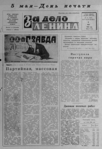 п е ч а т ж 5 я г а я — Д е 1 ОРГАН СЕВЕРНОГО РАЙНОМА КПСС И РАЙОННОГО СОВЕТА НАРОДНЫХ ДЕ П УТА ТО В НОВОСИБИРСКОЙ ОБЛАСТИ В ы х о д и т по в т о р н и к а м , ч етвергам и субботам. Пролетарии всех с т р а н , соединяйтесь! Л 0 Л О Г аз е та основ ана 20 июля 1935 года № 54 (5 3 3 8 ) В Т О Р Н И К 4 МАЯ 1 9 8 2 года Ц е н а 2 коп. П а р т и й н а я , м а с с о в а я 5 м а я — Д ен ь печати. Этот традиционный п о азд ни к о т м е чают миллионы сов етски х л ю дей, которы е в и д я т в печати своего верного п ом ощ н и к а , В ерн ая ленинским з а в е т а м ! наша пресса тесно с в я з а н а е! жизнью, я в л я е т с я испытанным- идейным ор ужием партии. С о ветский чел овек н аходит в печати широкую п анораму жизн и страны и з а р у б е ж н ы х событий, ощ у щ а е т горячий пульс наших свершений. Страницы печати стали з е р калом политики партии. ее сози д ател ьных дел. Сейчас широкое зву чани е в прессе приобрели проблемы интенсивного роста общес твенного п роизводств а, повышения э ф фективности и к ачества р а б о ты, всей хозяйственной д е я тельности. И это я в л я е т с я о т раж ен ием тех з а д а ч , которы е поставил XXVI съ е з д п а р тии. Видит свое наз начение по претворению в ж и зн ь решений съ е зд а и наша рай о н на я г а зе та . «Р ай о н к а » — с а м а я до с т у п на я га з е та . З д е с ь о т к р о венно говоритс я о наших р а д о с т я х и огорчениях, успехах и н ед остатк ах , обо всем, чем мы живем , о чем мечтаем, над чем работаем . Мы п р и з ваны помог ать п а р т и й н ы м ' о р г анизациям с о з д а в а т ь в к а ж дом ко ллективе так ой о б щ е с т венно - политический климат, который р о ж д а л бы с т р е м л е ние р аб о т а т ь лучше, п р о и зв о дите льн ее , с о з д а в а л бы о б с т а новку высокой о р г а н и з о в а н ности и ответственности. Велика роль газеты в р а з витии социалистического с о р евнования , ко торое я в л я е т с я огромной д виж ущ ей силой и в экономике, и в воспитании людей. Г аз е та п о д д е р ж и в а е т патриотические инициативы, поднимает гласность с о р е в н о вания , р а с с к а зы в а е т о п е р е д о ви к а х и н о в а то р ах , р а с п р о с т р а н я е т их опыт. В эти дни на п олях р а й о на р а з го р а ю т с я весенние п о левы е раб оты . Это й в аж н о й ка мпании г а з е т а у д е л я е т пристальное внимание, о к а з ы в а я тем самым влияни е на успешное з ав ерш ен ие полевых р а б о т в к а ж д о м колхозе. Наши газе ты и ж у р н а лы дел аю т с я не только д л я т р у д ящ и х ся , но и с помощью самих тр у д ящ и х ся . Ж изнь n o - у к а з ы в а е т , что се годня нет к а к о г о массового периодичес- ^ кого и здания — от многоти- - р а ж к п до цен тральной газе- i ты, — ко торое могло бы обой- \ т и с ь без повседневного учас- \тия в нем ав то р ск о го ак тива, рабочих и сельских к о р р е с пондентов. Именно прочная с в я з ь с массами, опора на большую армию ак тивистов прессы, с о с т а в л я е т важнейшую х а р а к т е р н у ю черту советской печати. З а р о ж д е н и е и бурный рост д виж ени я активистов прессы из широких т р у д я щ и х ся масс связаны с именем Владимира Ильича Ленина . Он был вдохновите лем , идейным руководителем и о р г а низа тором этого движ ени я с первых шагов нашей партии, с первых номеров наших г а зет. Сегодня пис ать в г азе ту с т а л о духовной потребностью многих людей. Ныне в р яд а х народных корресп онден тов нашей районной газеты н а с читывается почти сто п ередо вых рабочих; колхозн иков, п р едставителей интеллиген ции. Р аб сел ь к о р о в ск о е движ ени